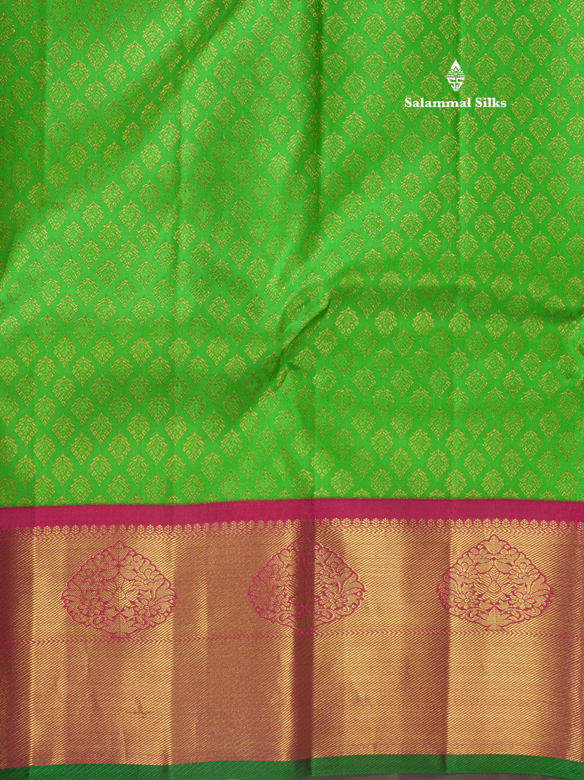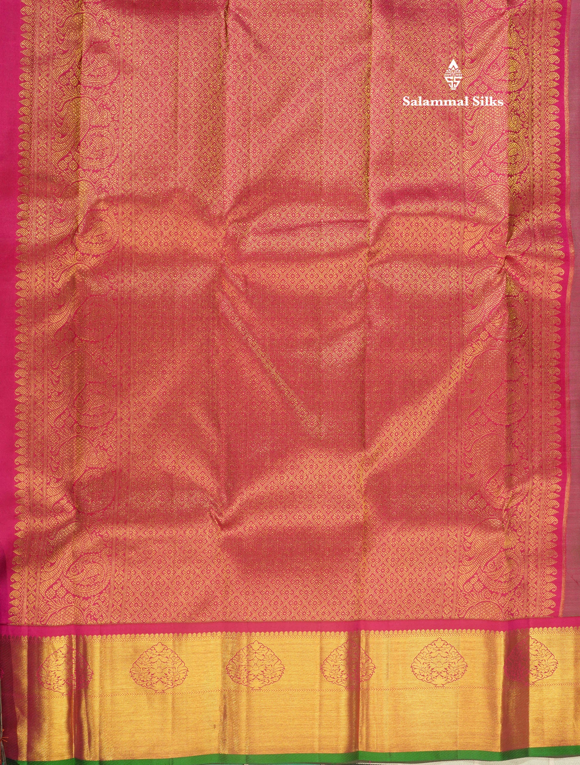Salammal is known for its handloom sarees. In some sarees, there is cross-weaving between the body and the pallu, which is a sign of pure handloom sarees. This can be seen in Kanchipuram embossed sarees.