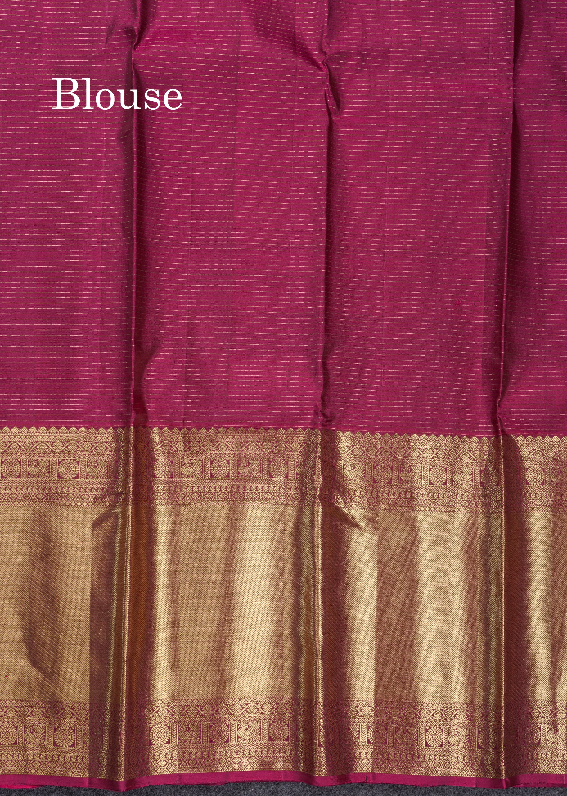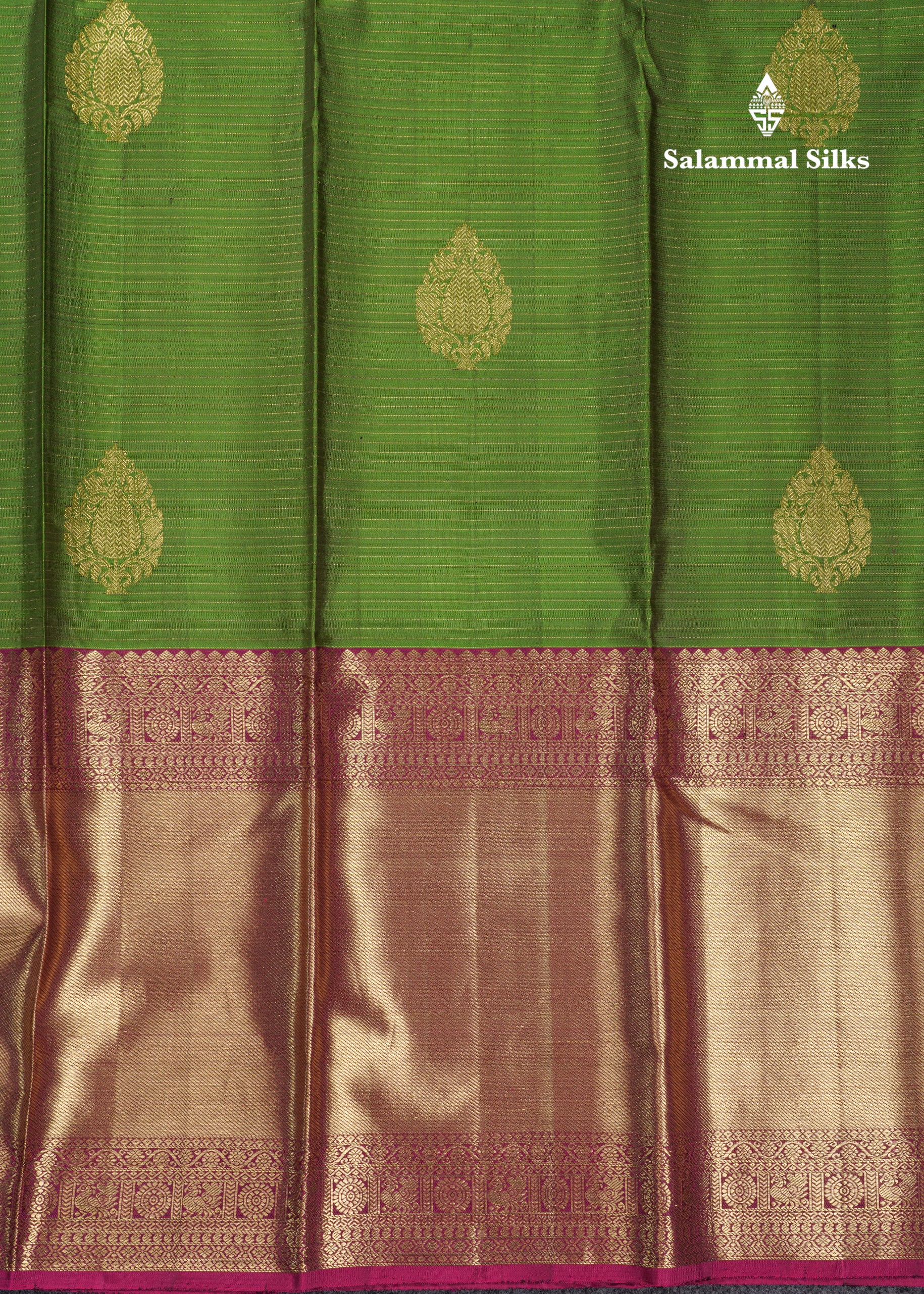 Green Pure Kanjivaram Silk Saree With Contrast Magenta Evening Morning Traditional Border