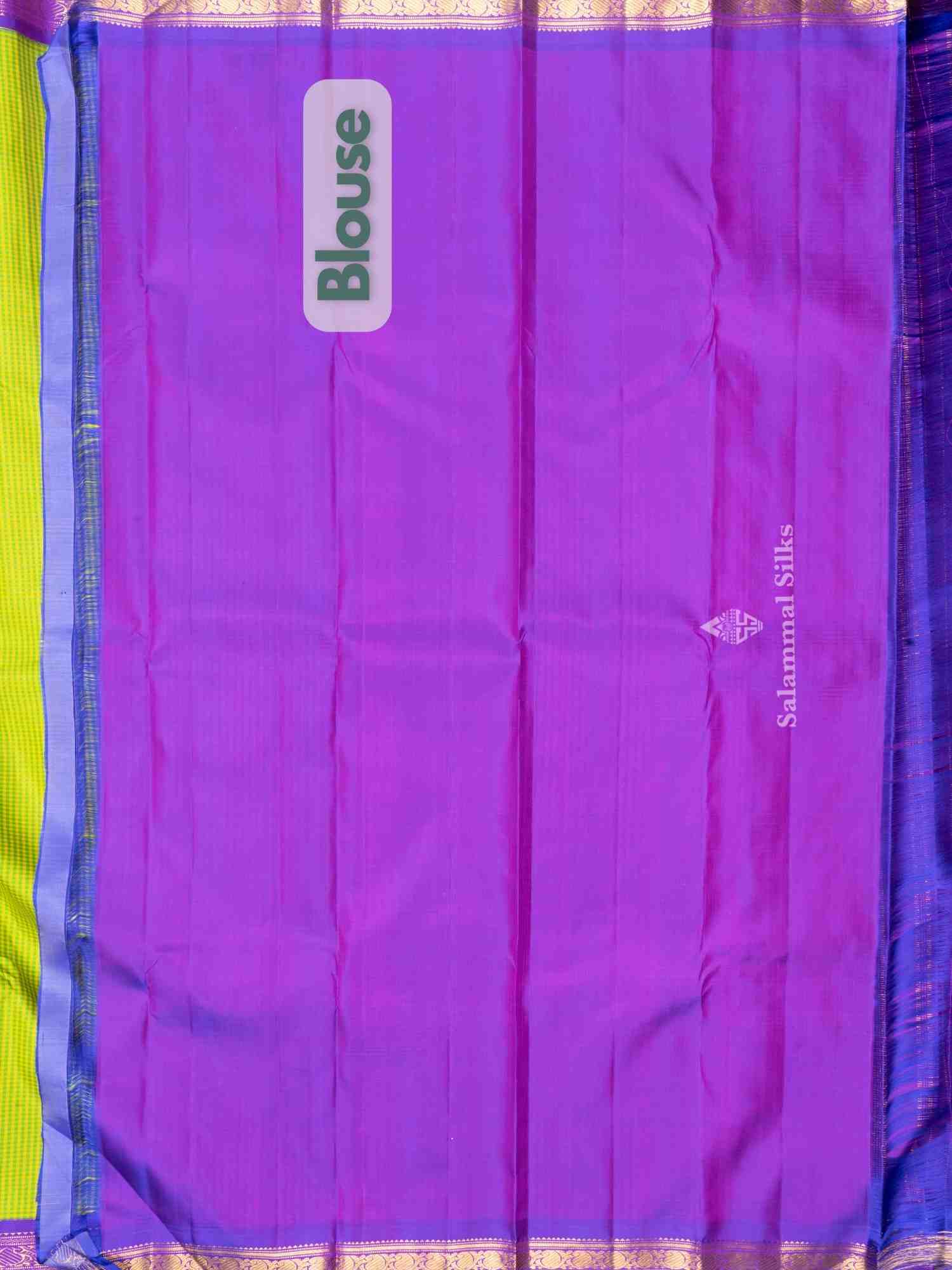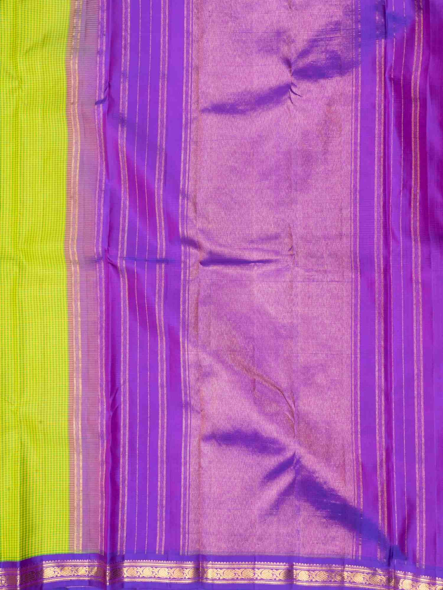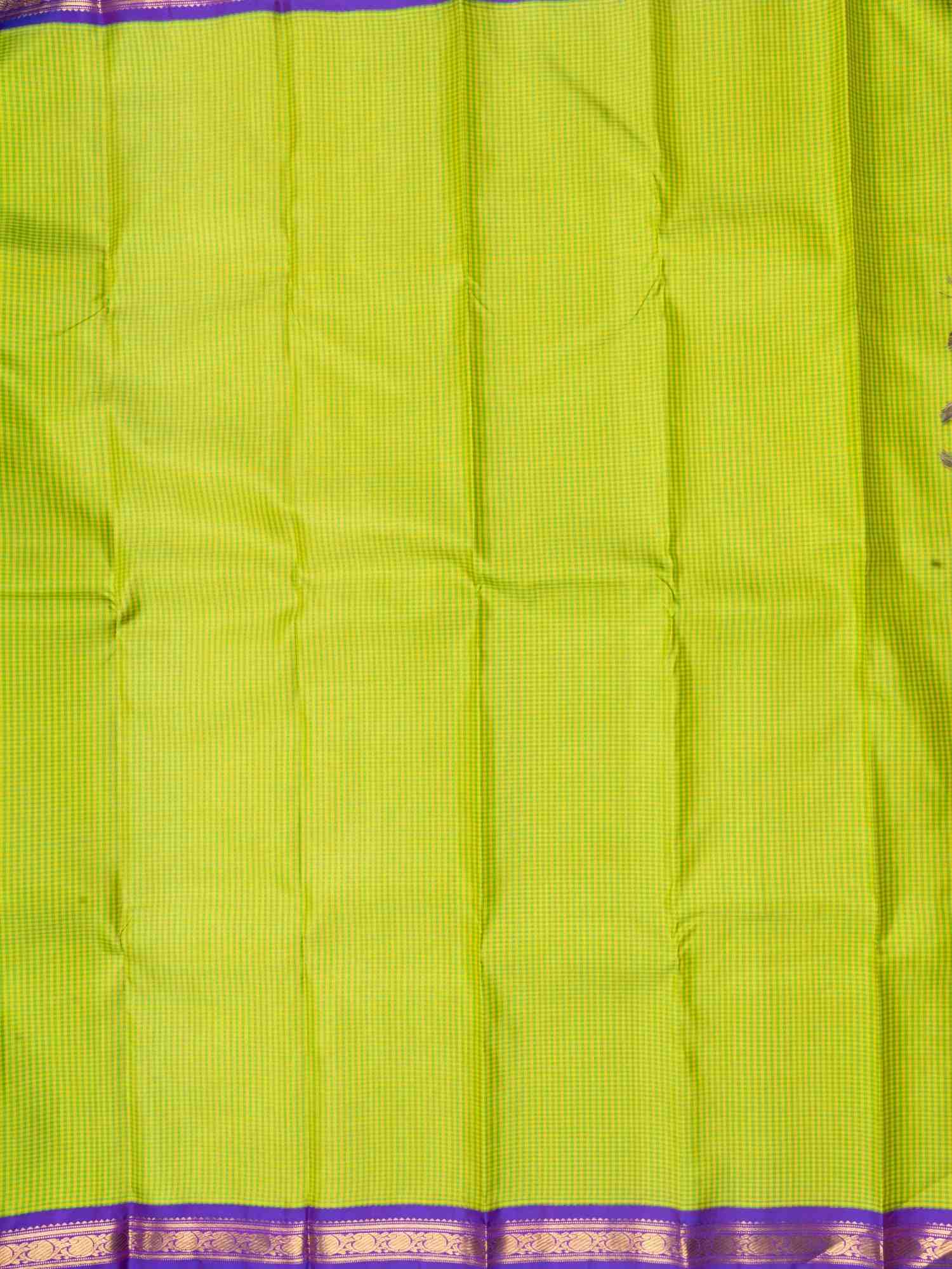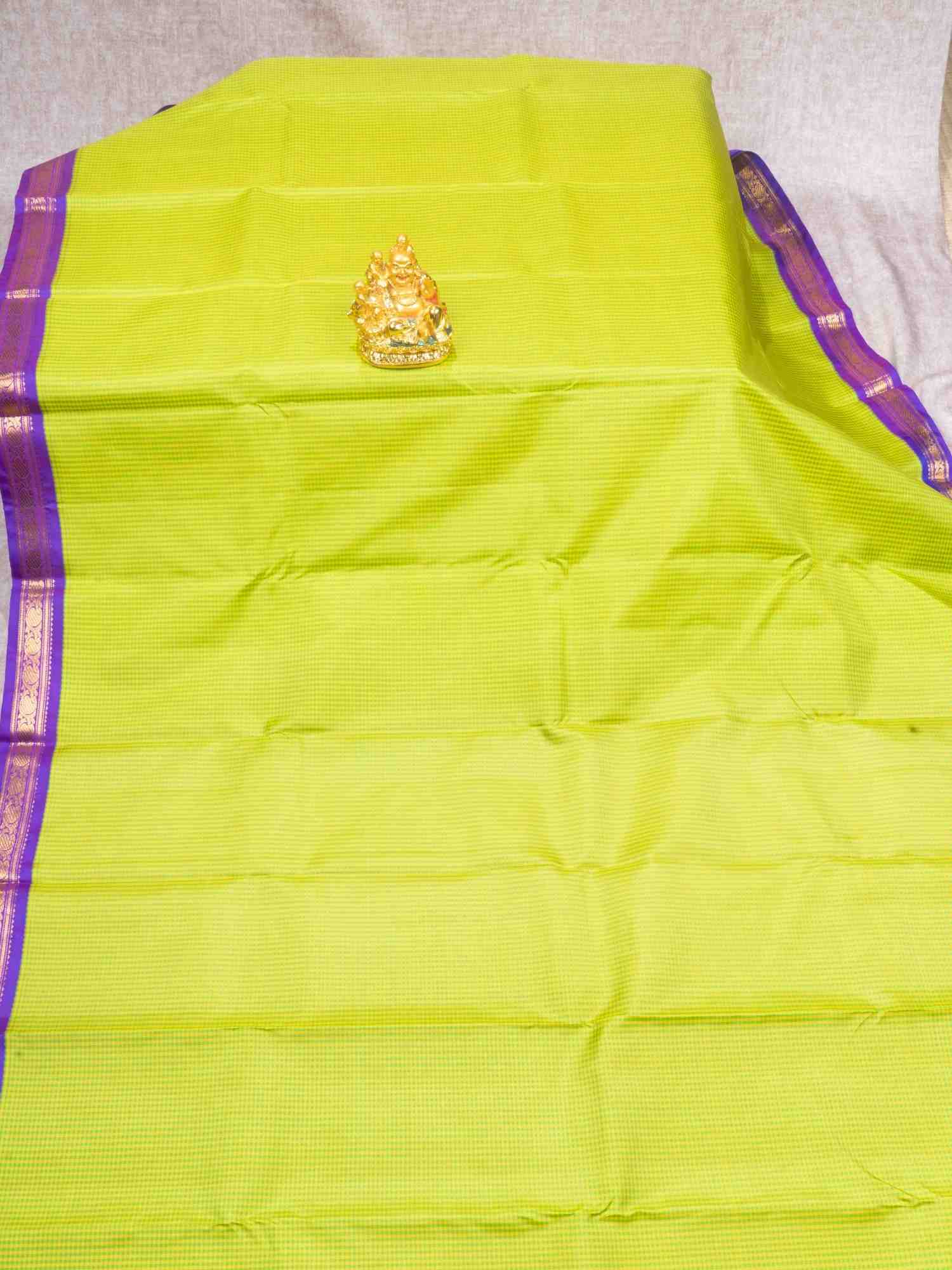 Green & Yellow Petty Checks Kanjivaram Pure silk Saree with Vadamalli Blouse