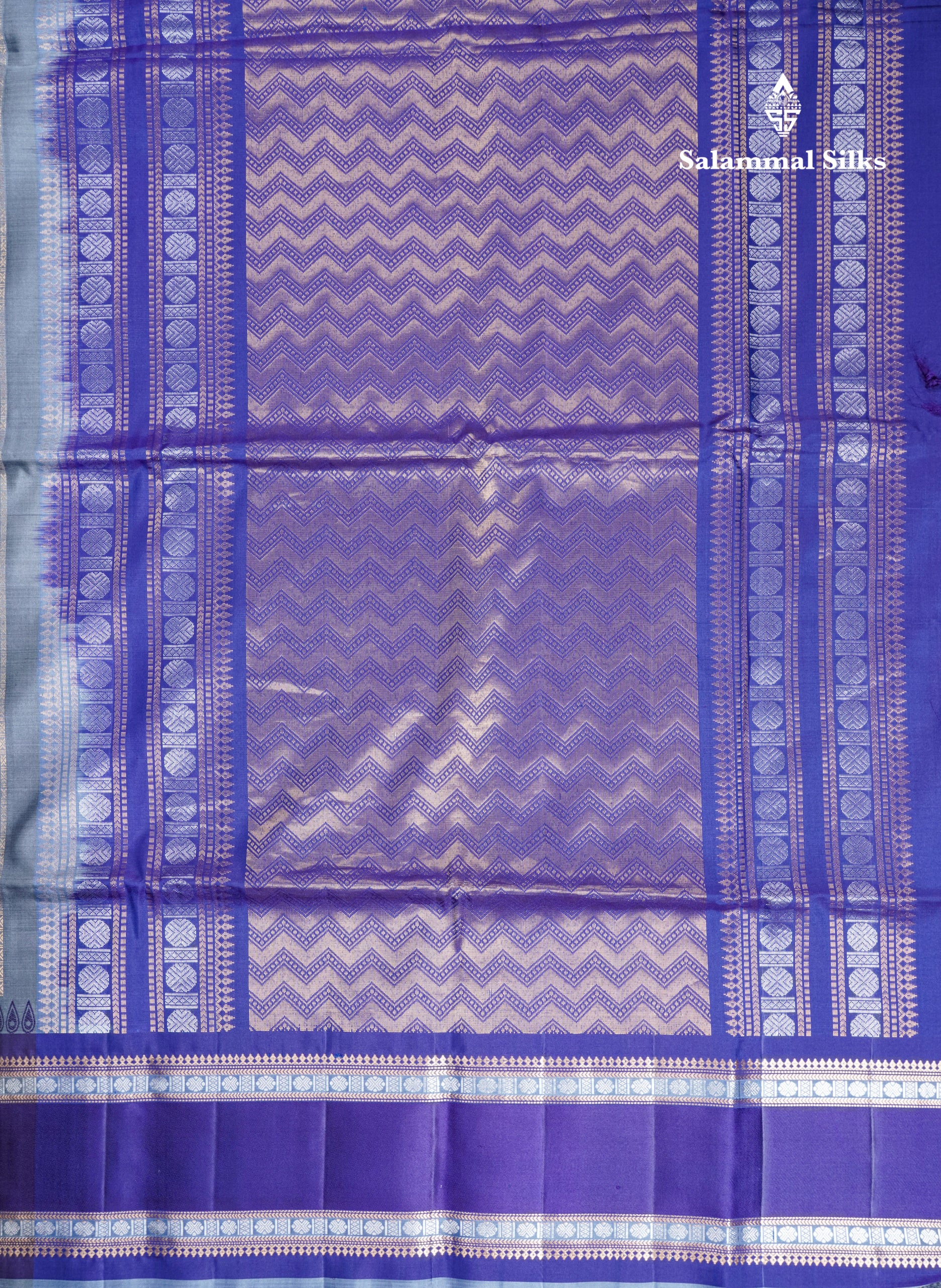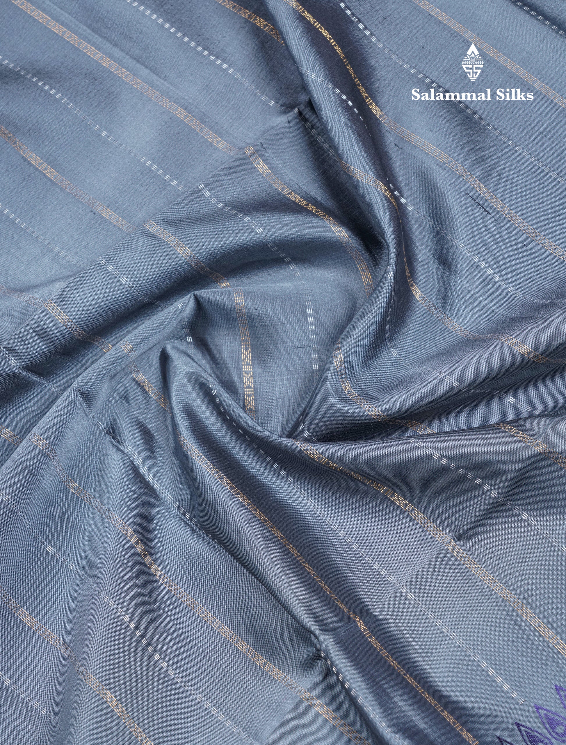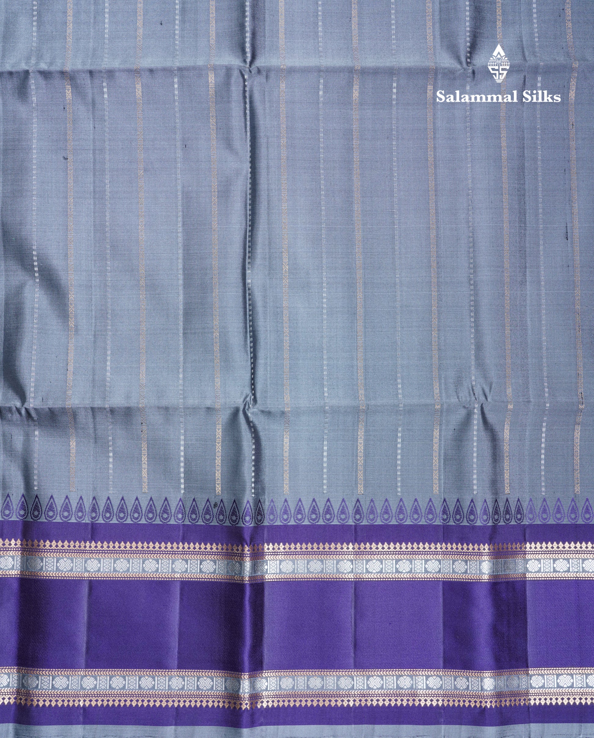 Grey Pure Kanjivaram Soft Silk Saree With Beautiful Violet Traditional Double Border