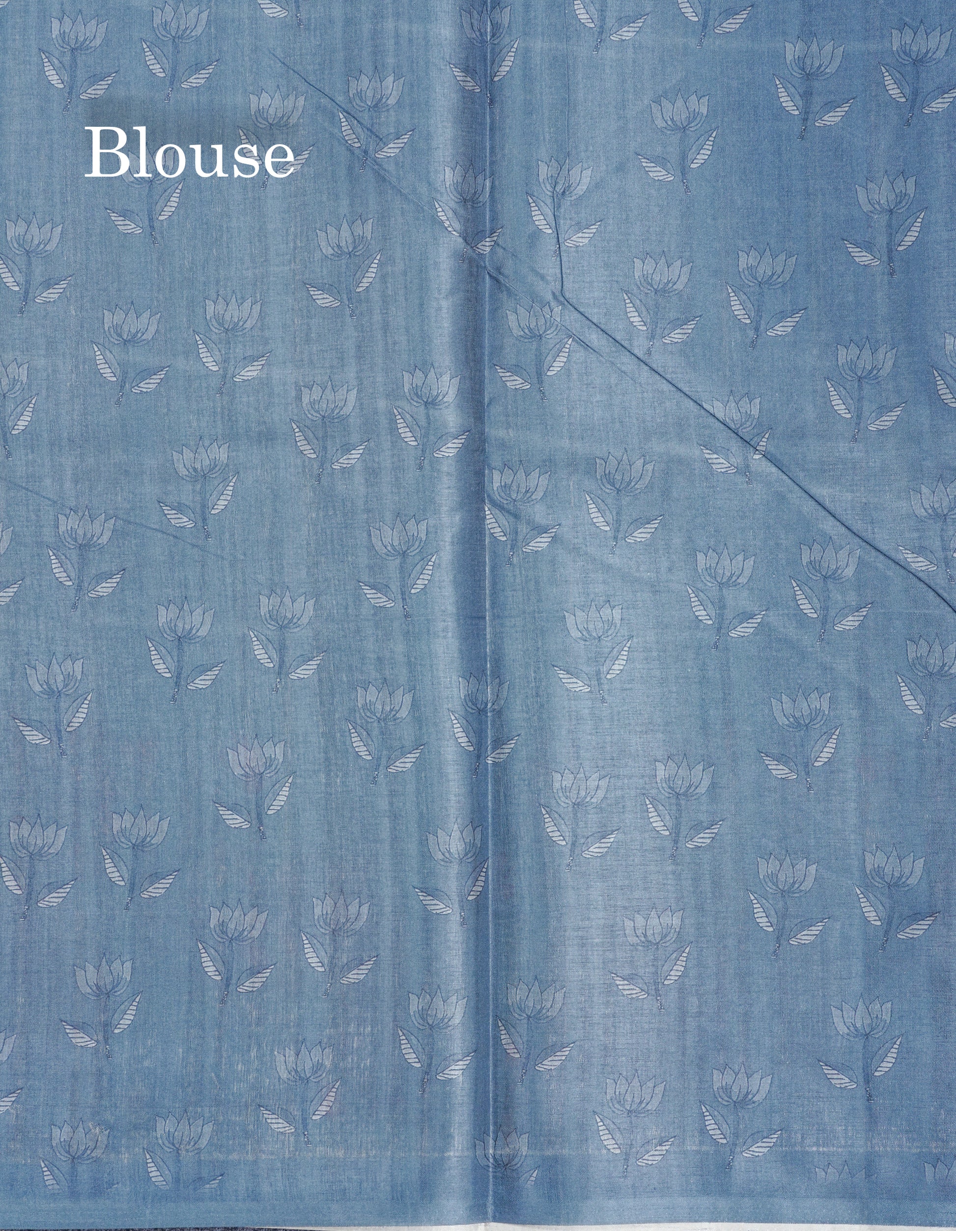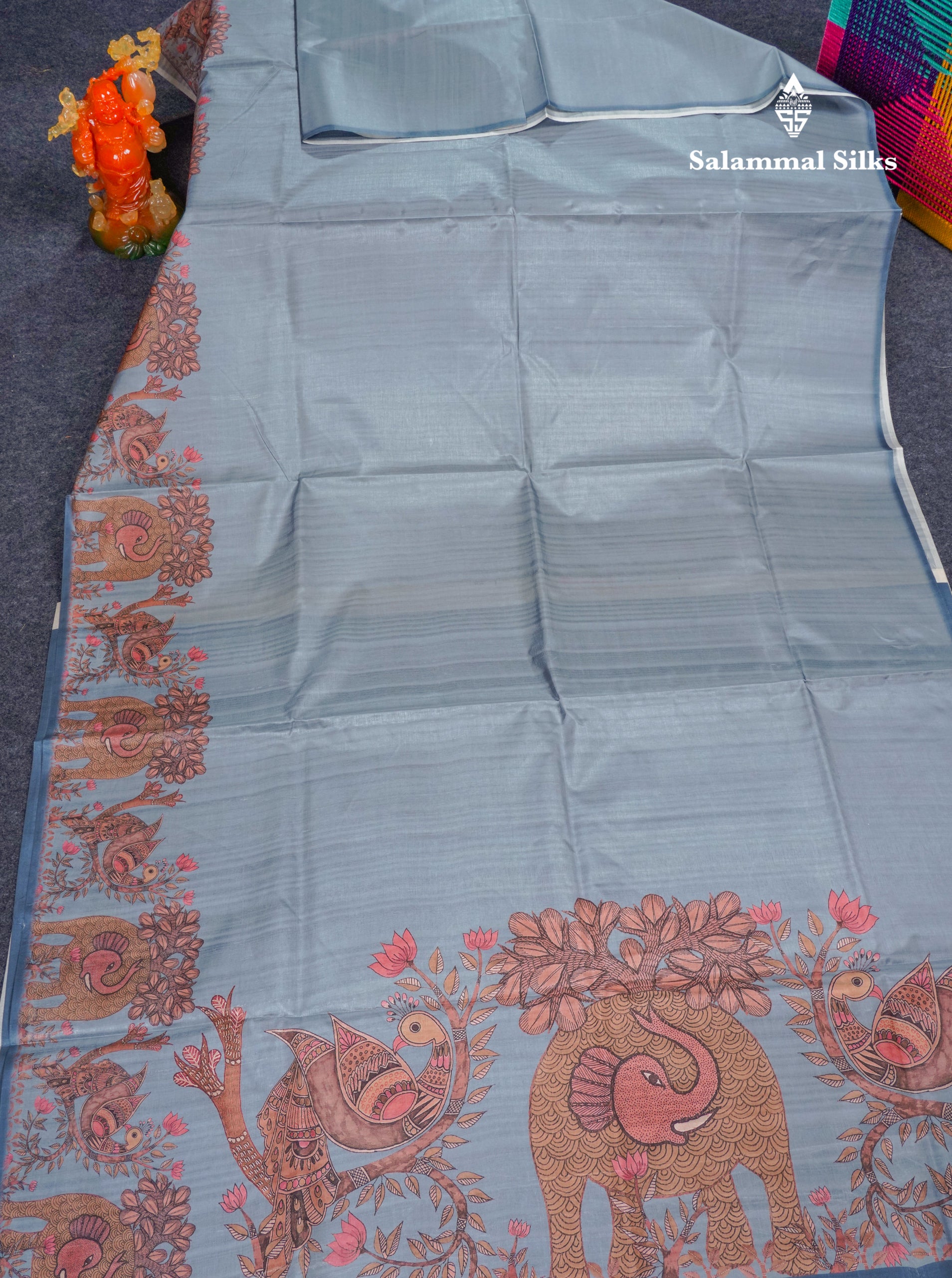 Grey Semi Tussar Fancy Saree With Floral Print Blouse