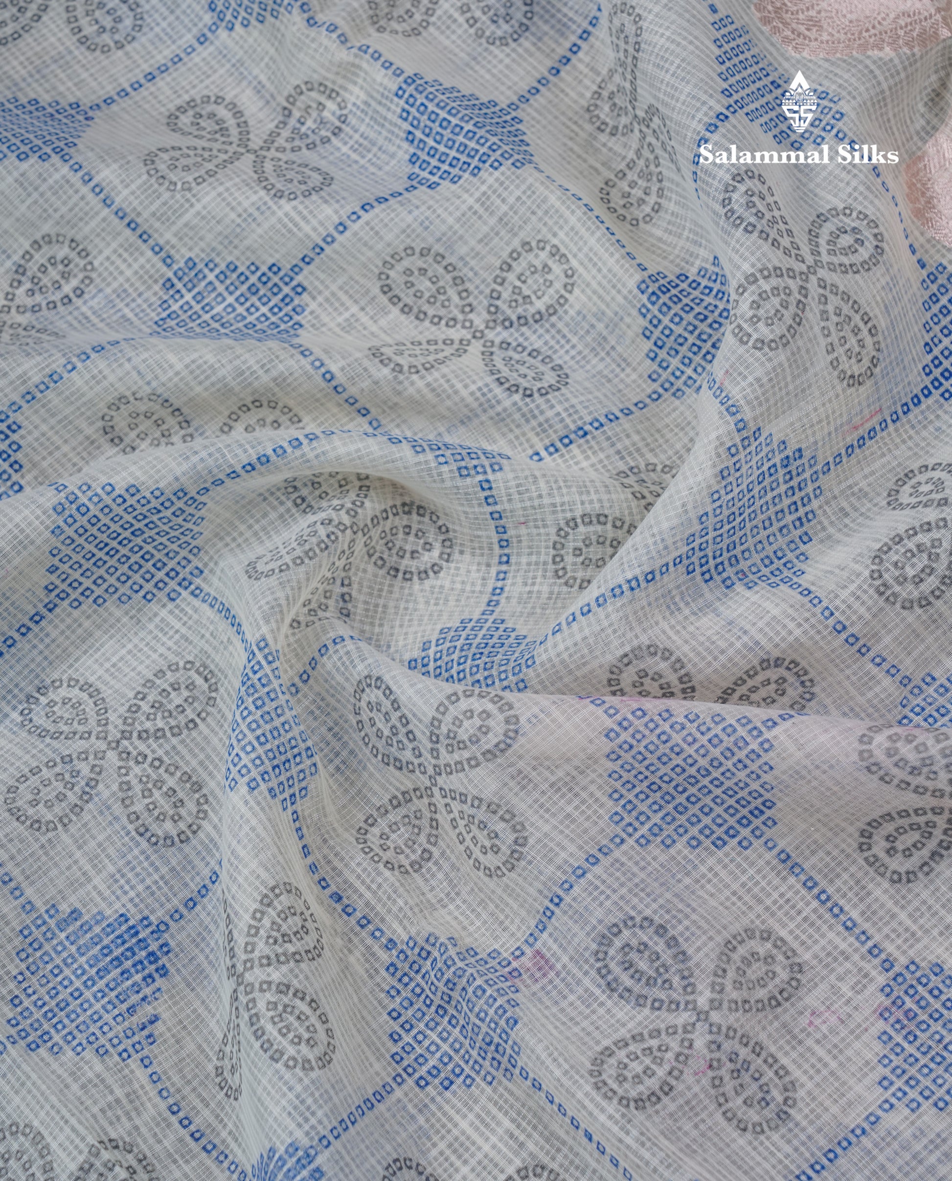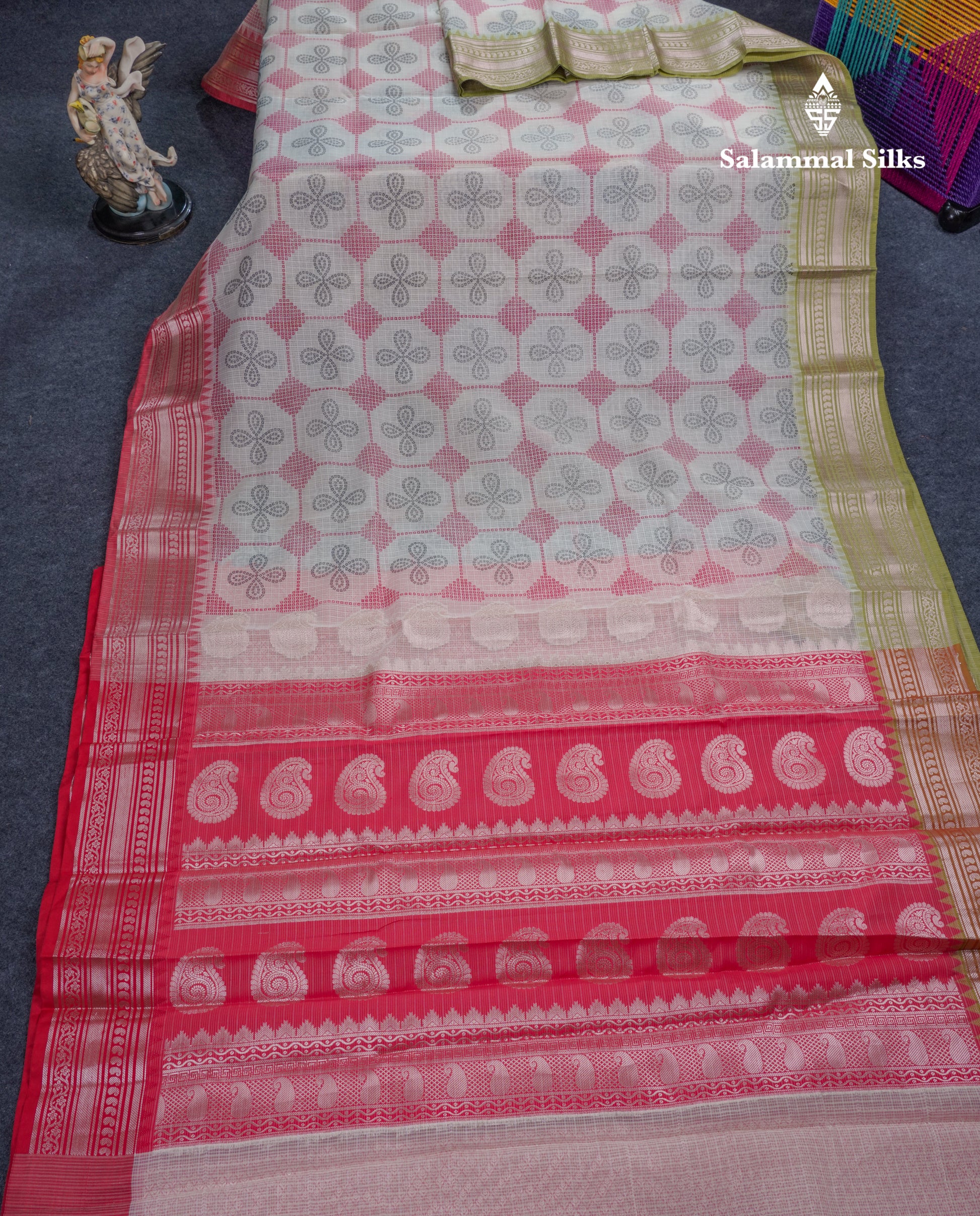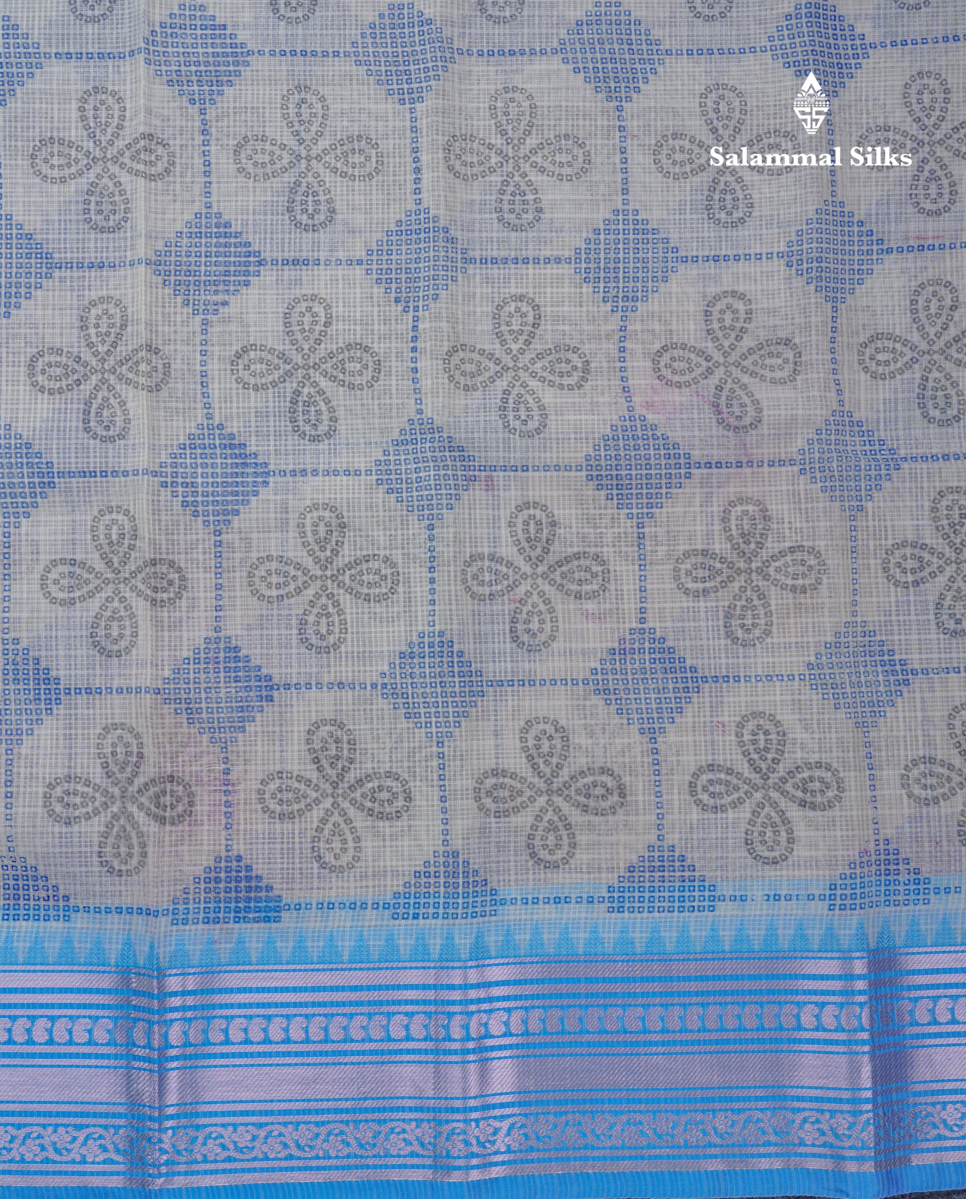 Half White Printed Cotton Mix Saree With Contrast Ganga Jamuna Traditional Border