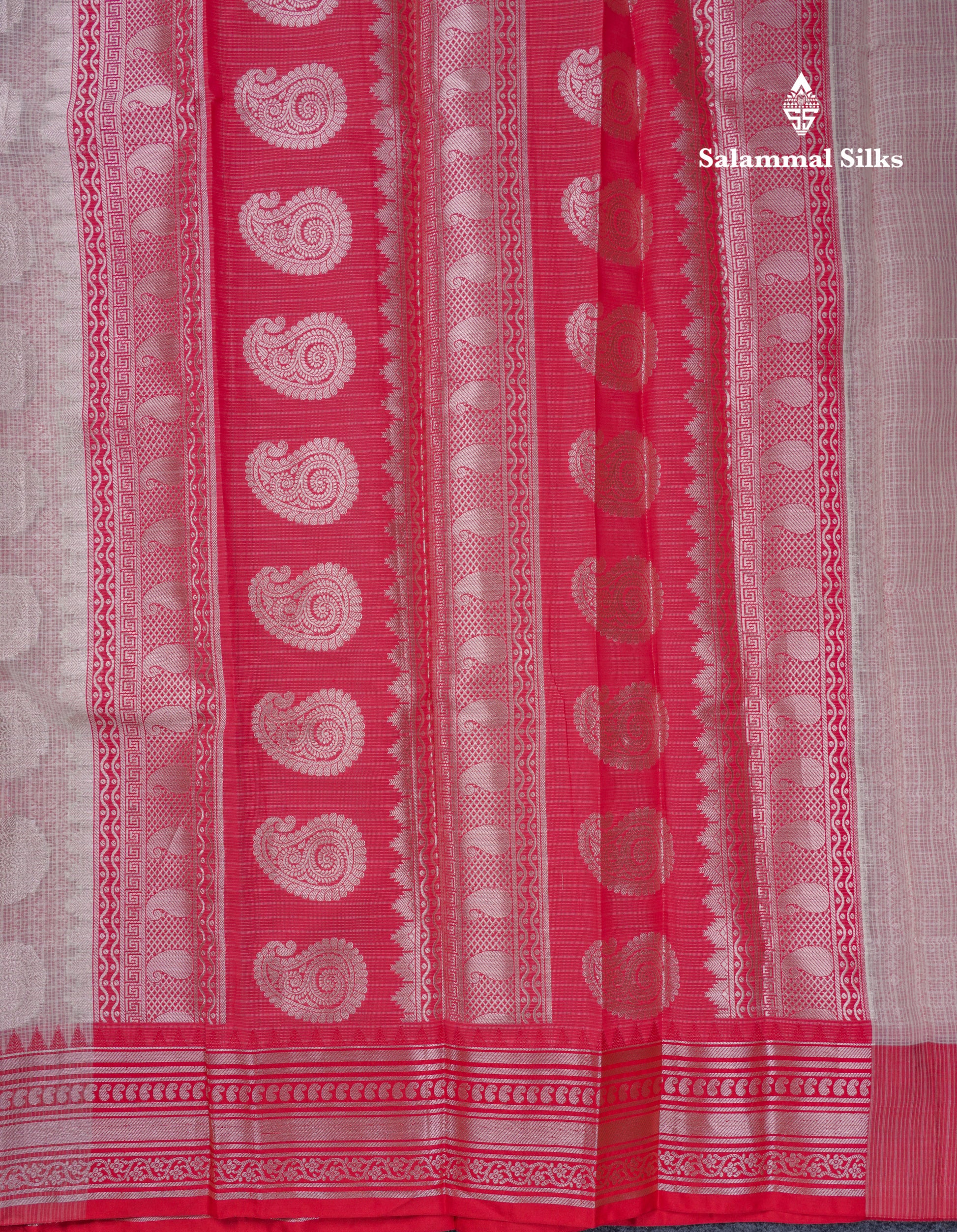 Salammal is known for its handloom sarees. In some sarees, there is cross-weaving between the body and the pallu, which is a sign of pure handloom sarees. This can be seen in Kanchipuram embossed sarees.