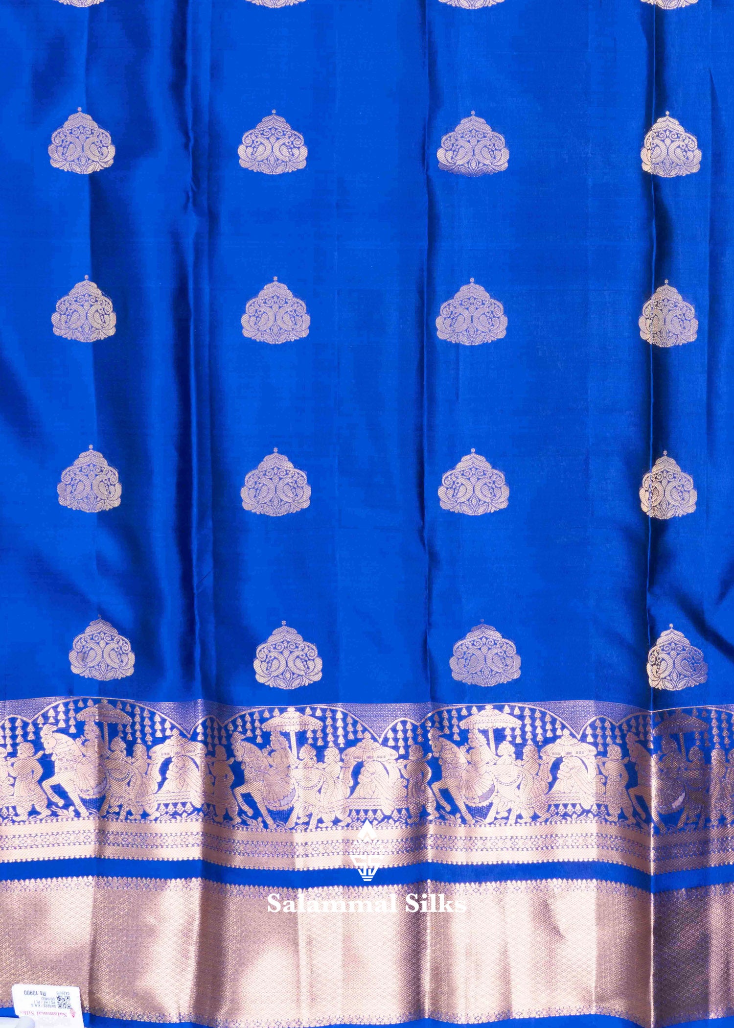 Salammal is known for its handloom sarees. In some sarees, there is cross-weaving between the body and the pallu, which is a sign of pure handloom sarees. This can be seen in Kanchipuram embossed sarees.