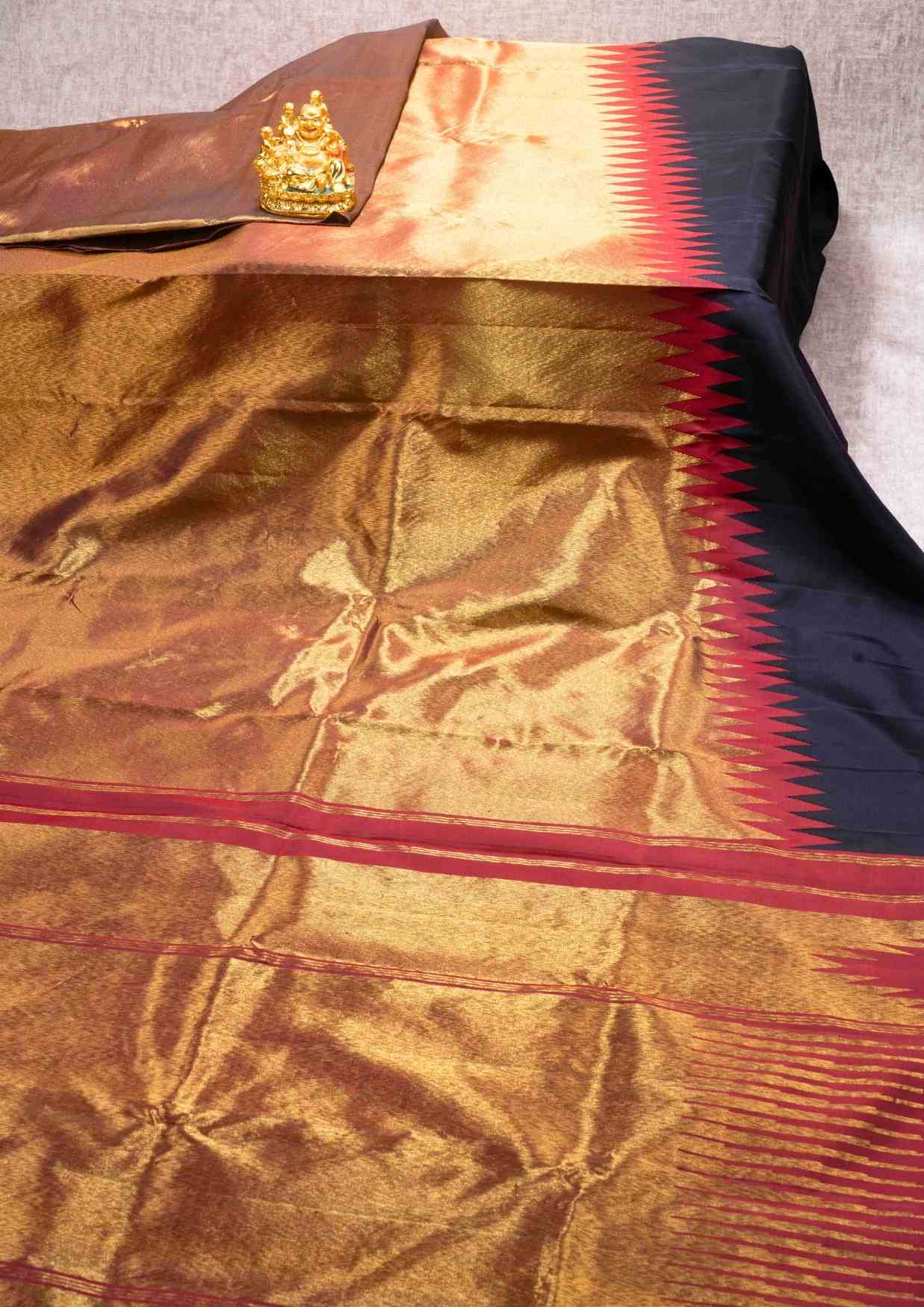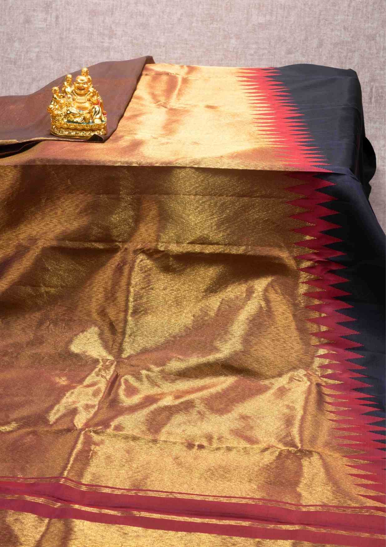 Kanjivaram 8kol Pure Silk Saree Rising Border Black & Gold With Maroon Blouse
