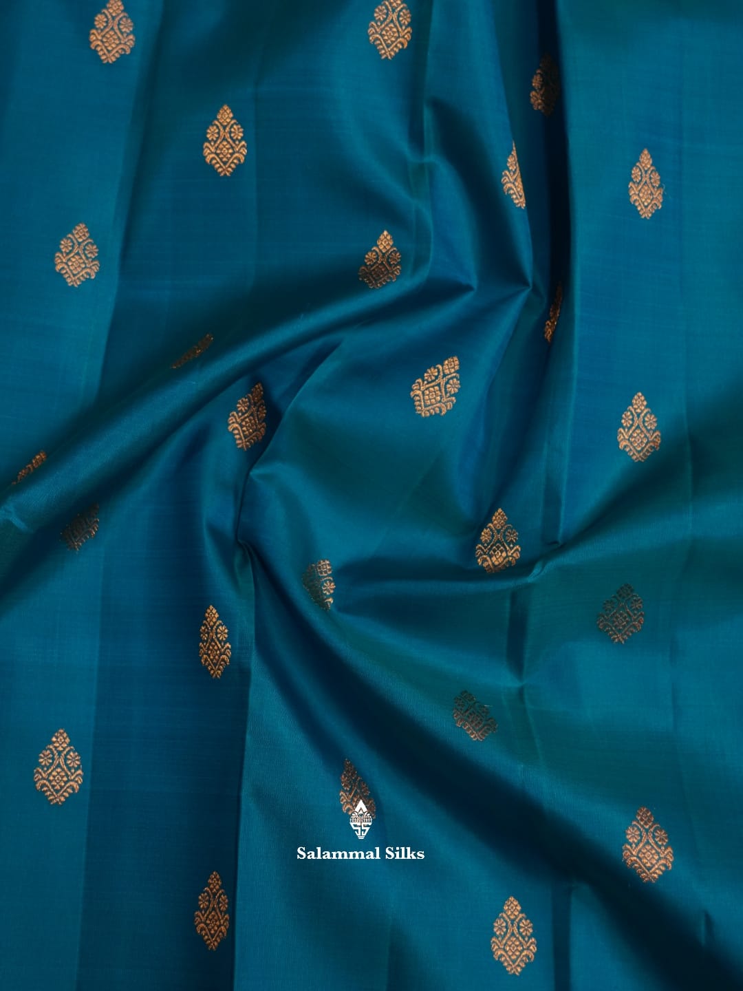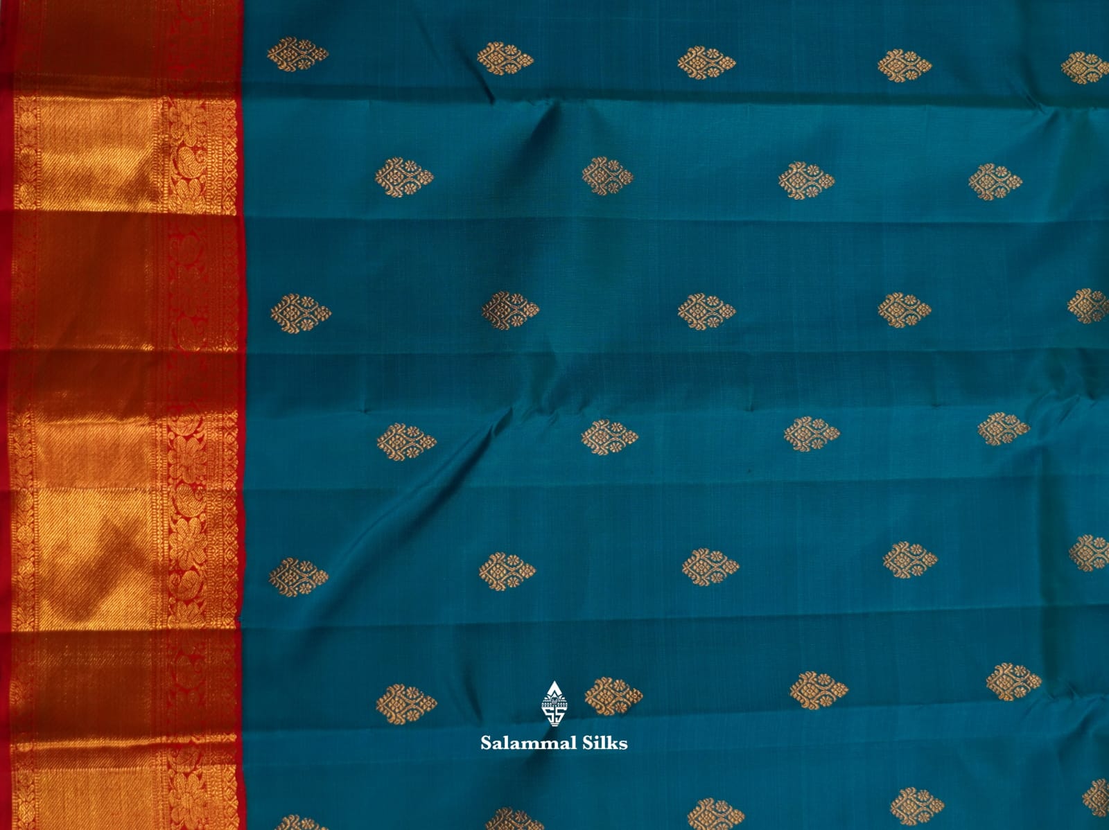 Kanjivaram Anandha Blue Pure Silk Saree With Red Blouse