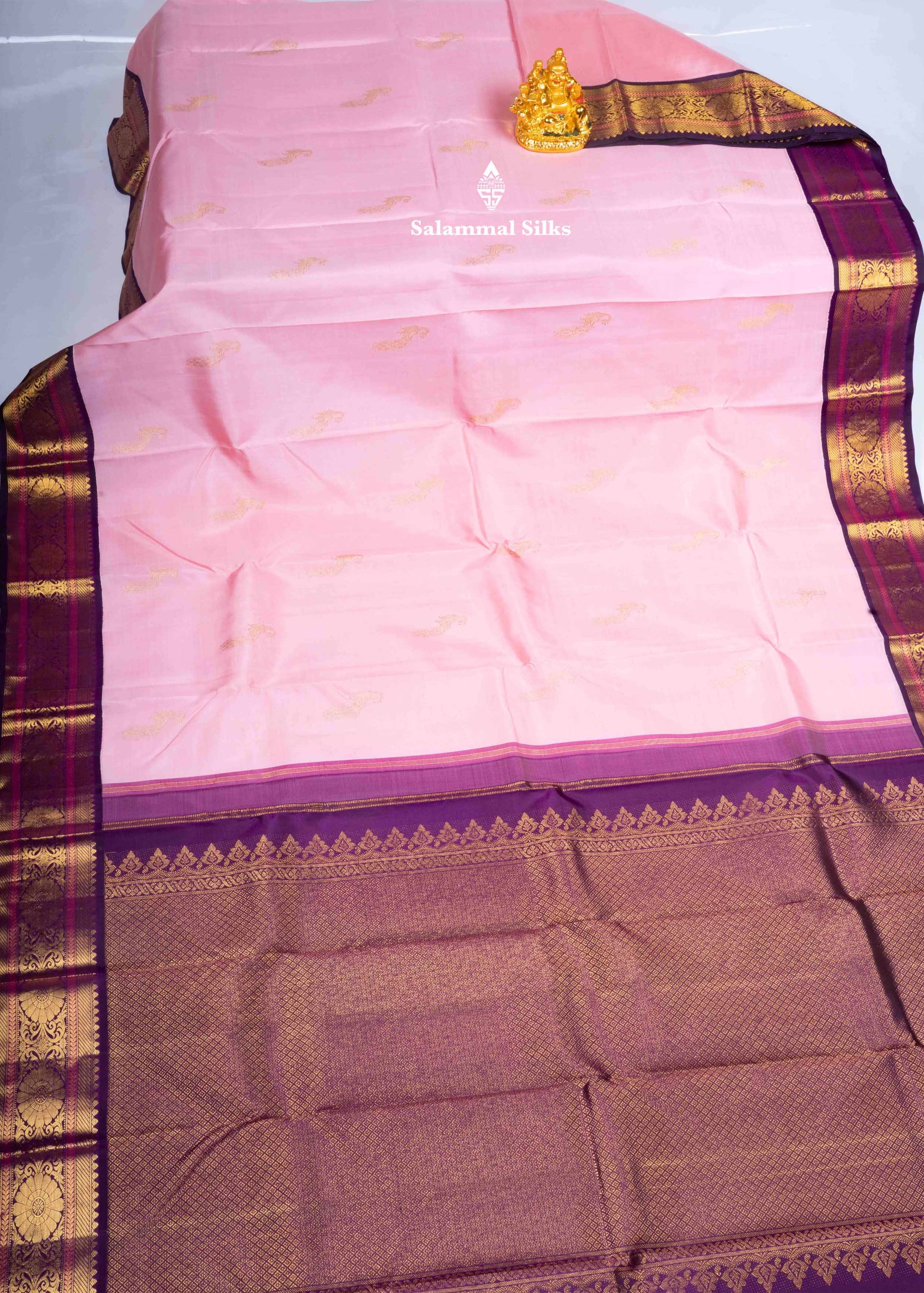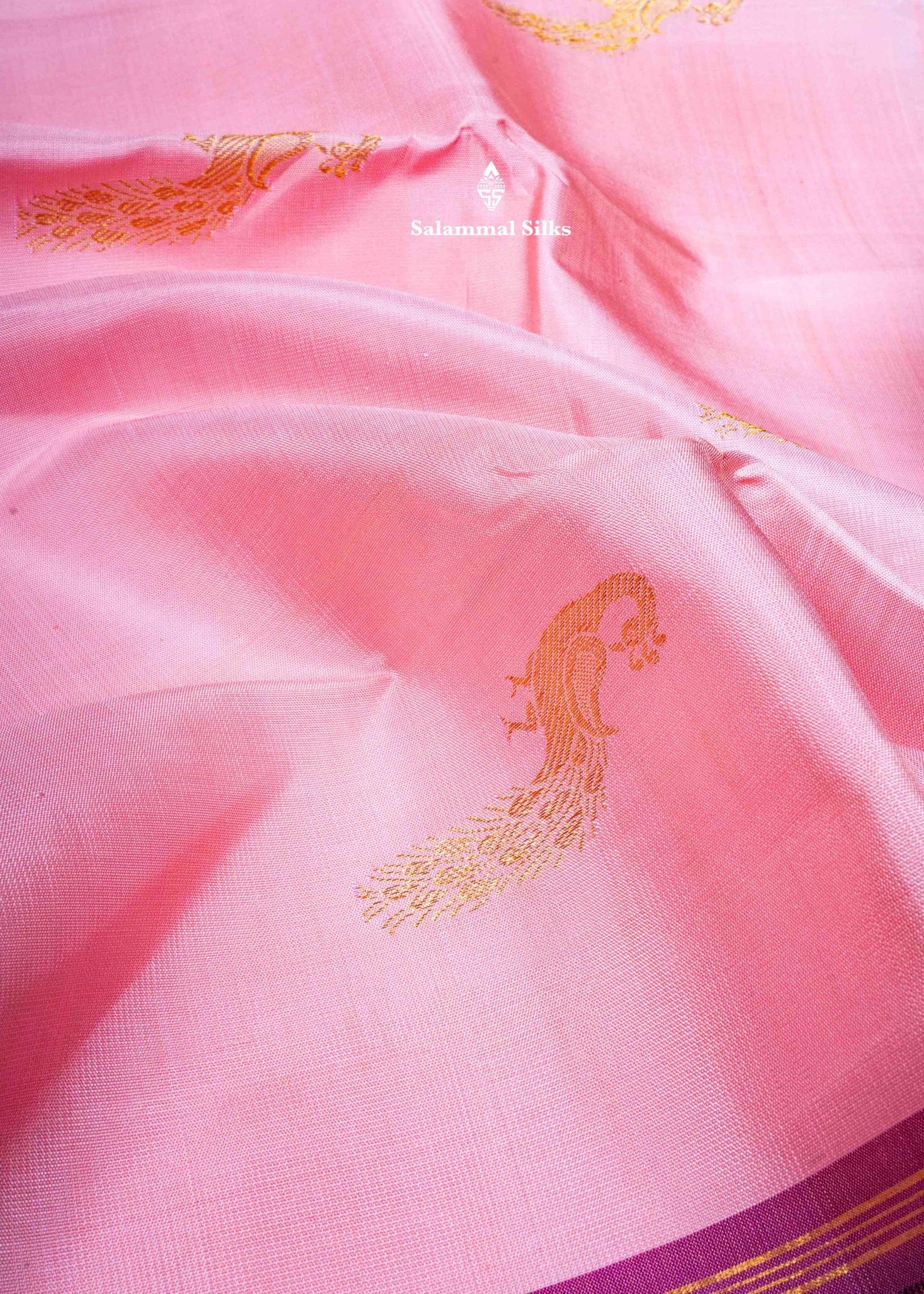 Kanjivaram Baby Pink Pure Silk Saree With Violet Border