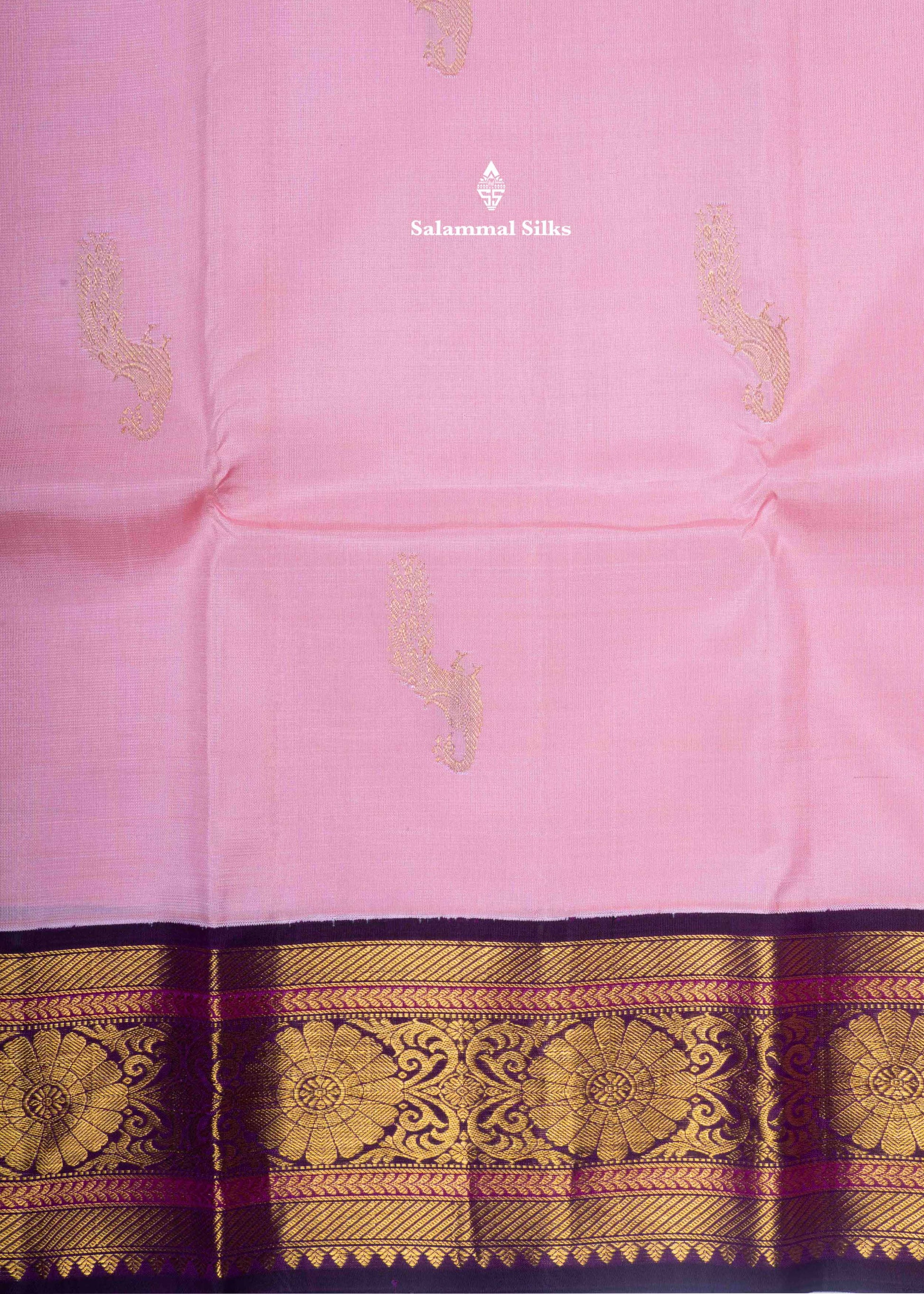 Salammal is known for its handloom sarees. In some sarees, there is cross-weaving between the body and the pallu, which is a sign of pure handloom sarees. This can be seen in Kanchipuram embossed sarees.