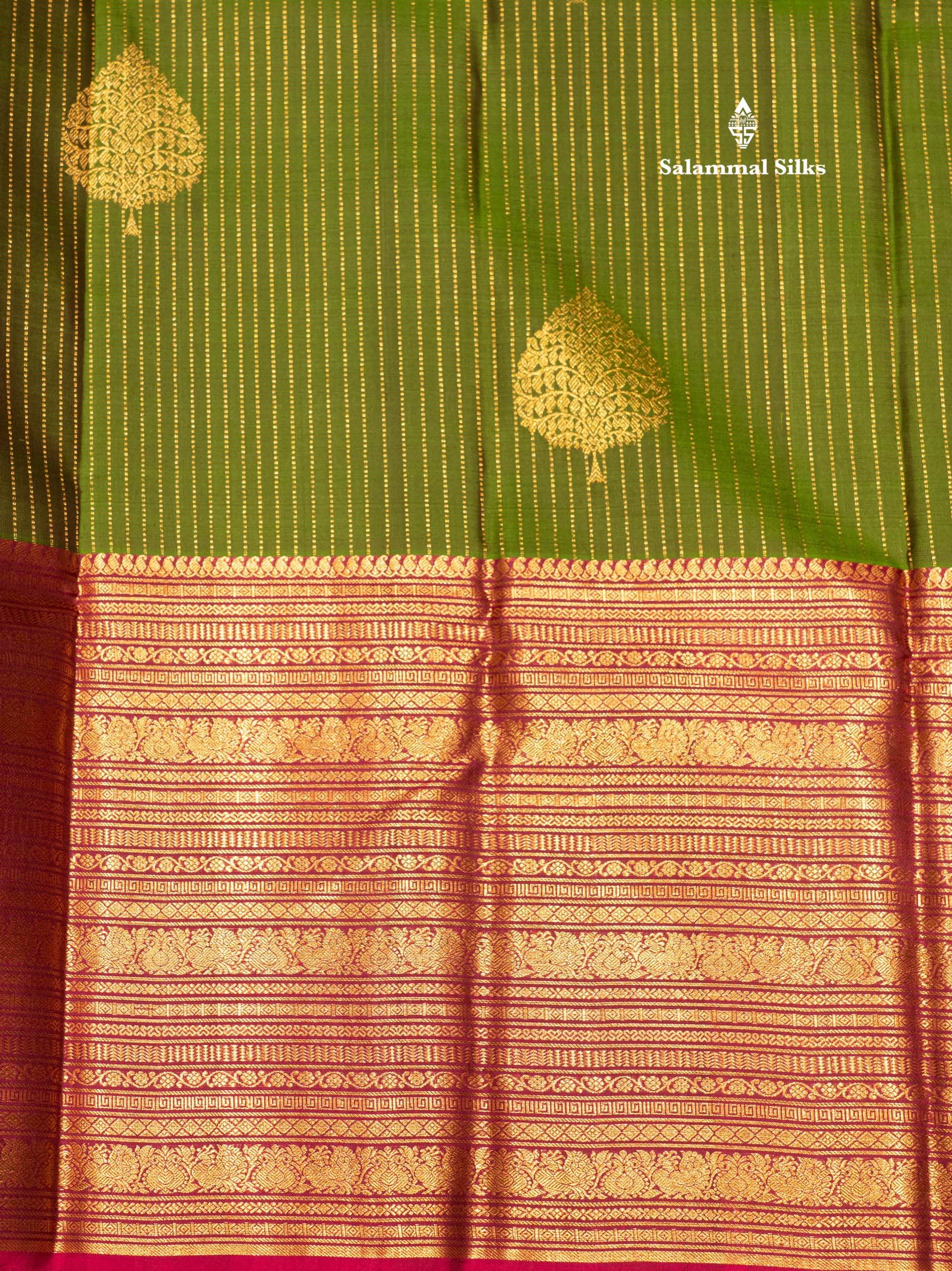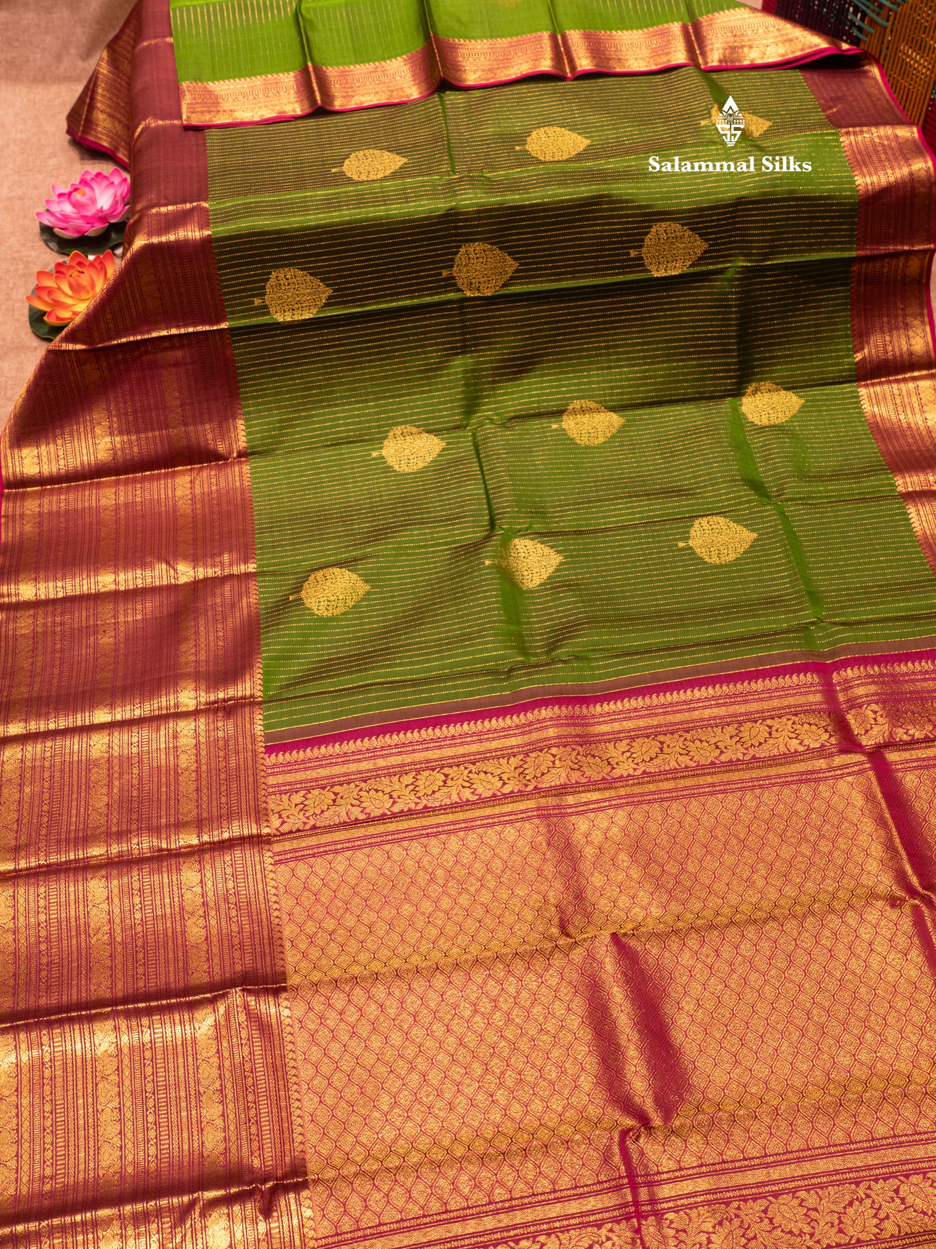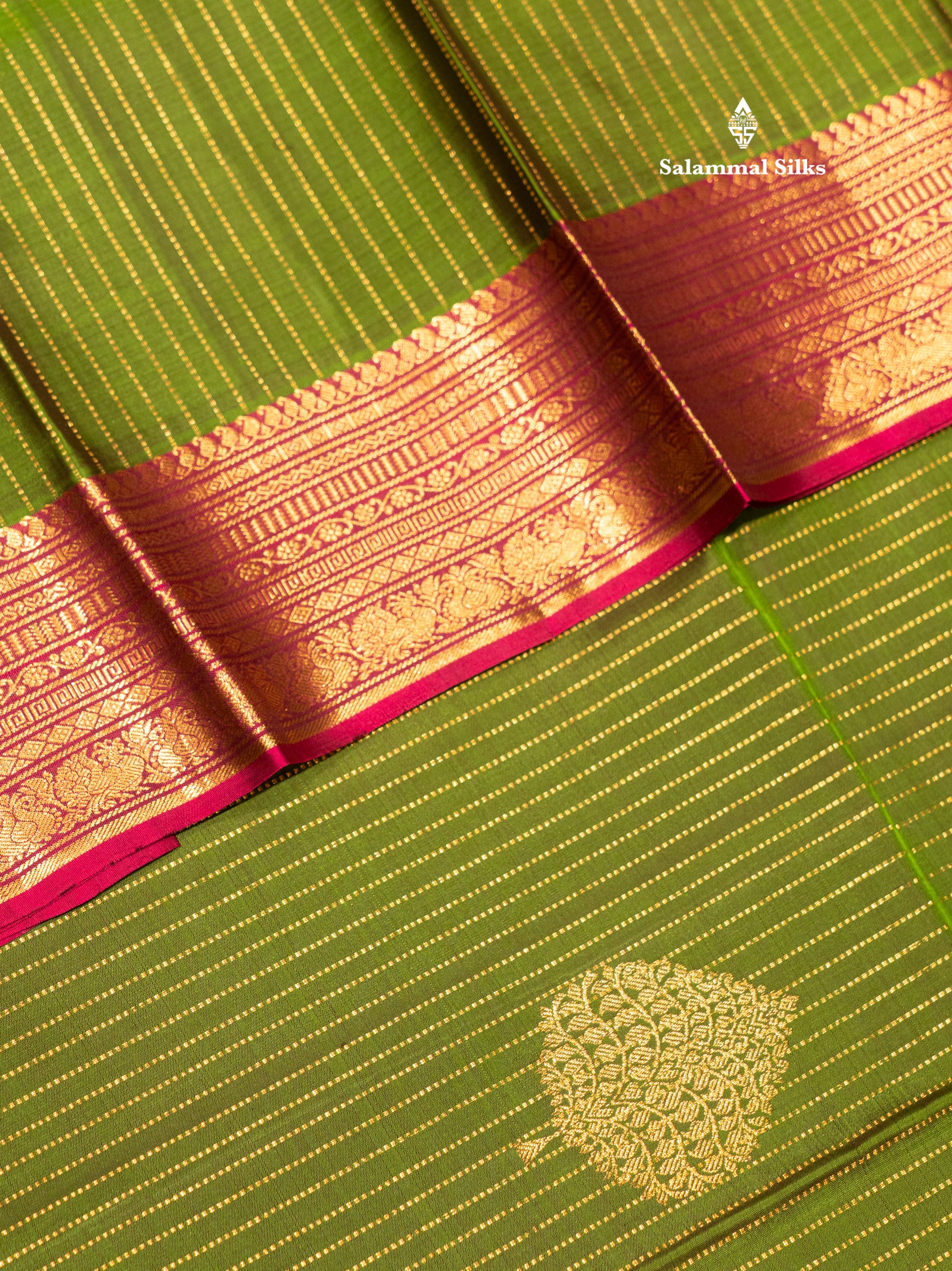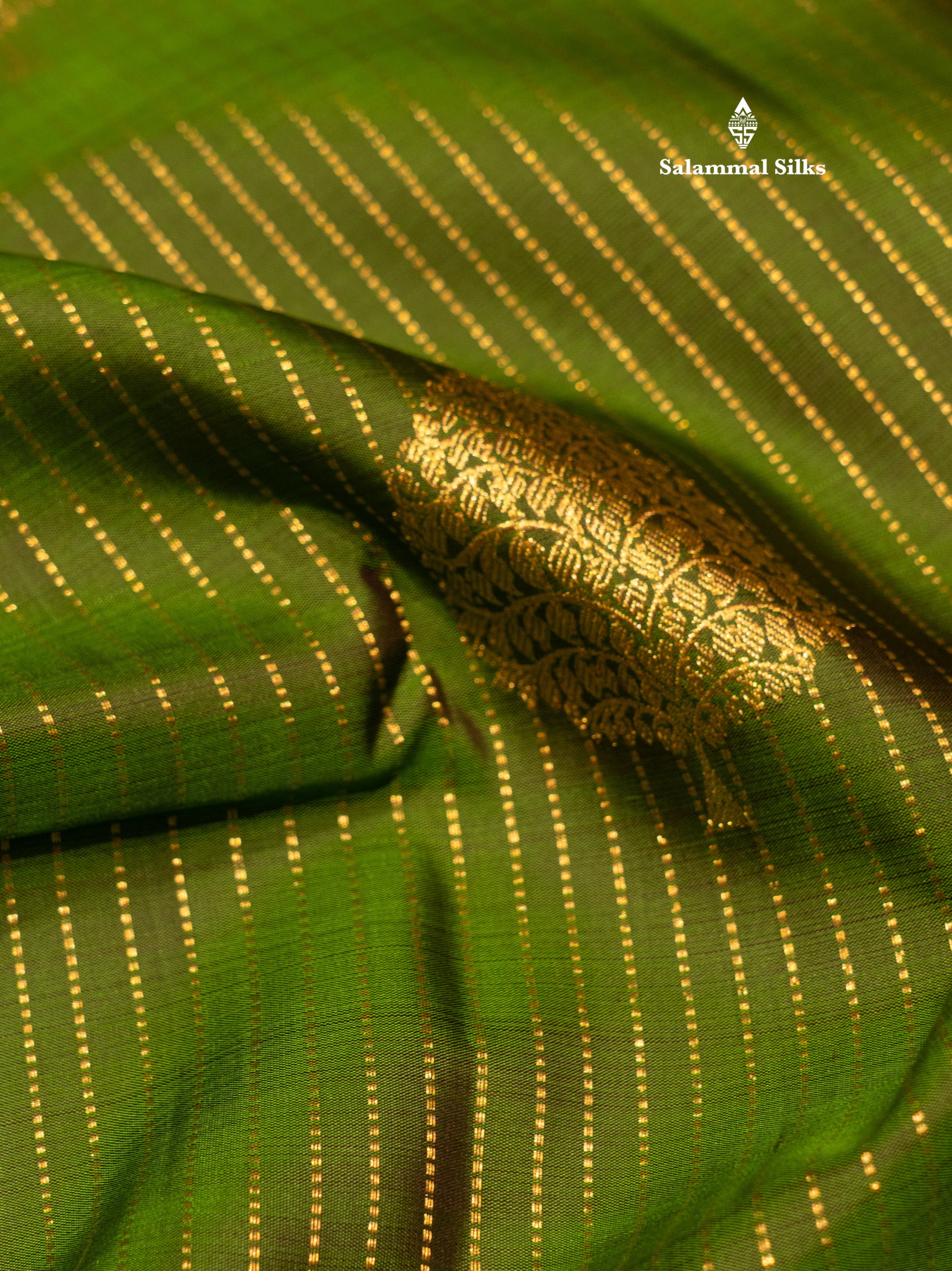 Kanjivaram Beautiful Green Pure Silk Saree With Arakku Colour Long Border