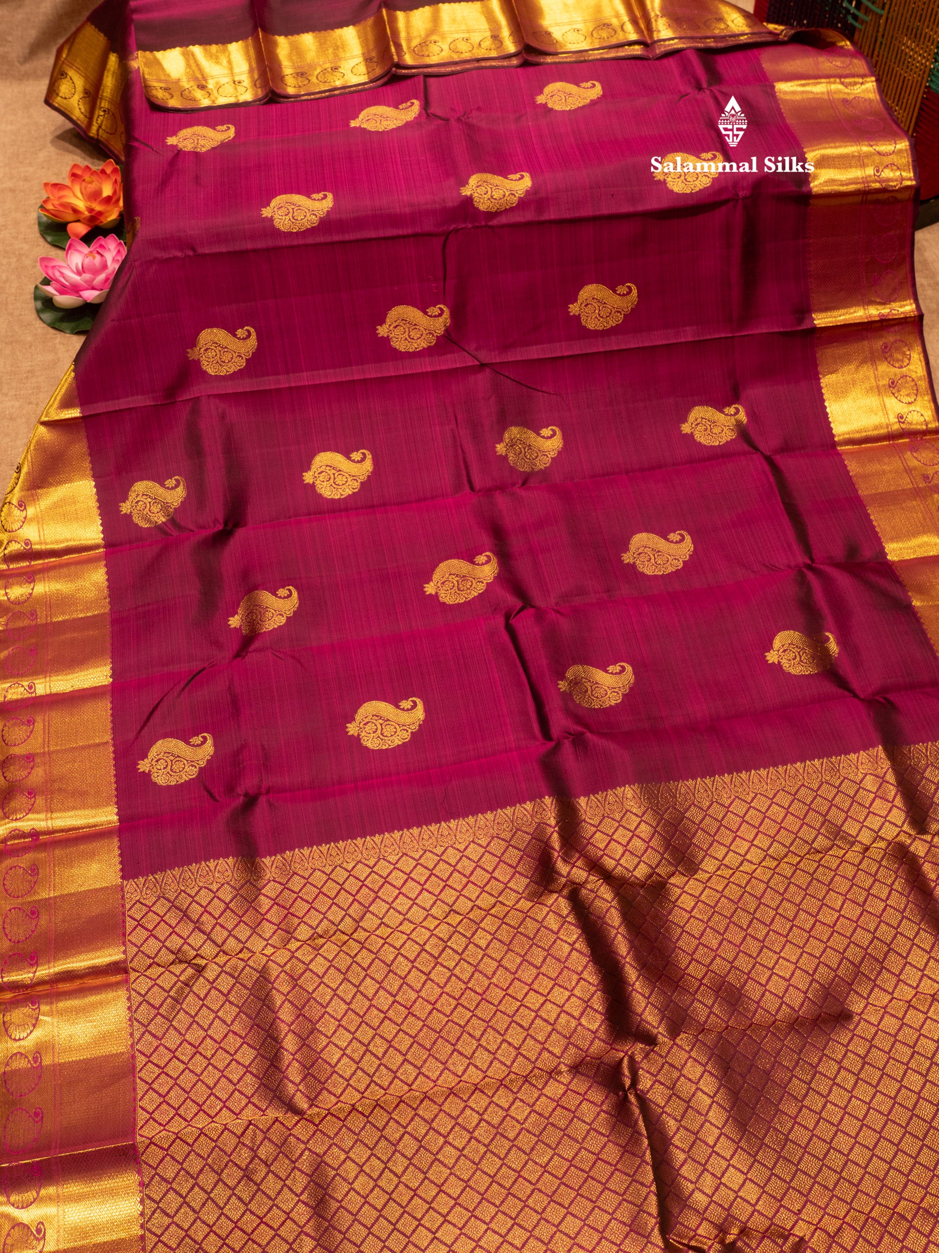 Kanjivaram Beautiful Magenta Pure Silk Saree With Gold Zari Border