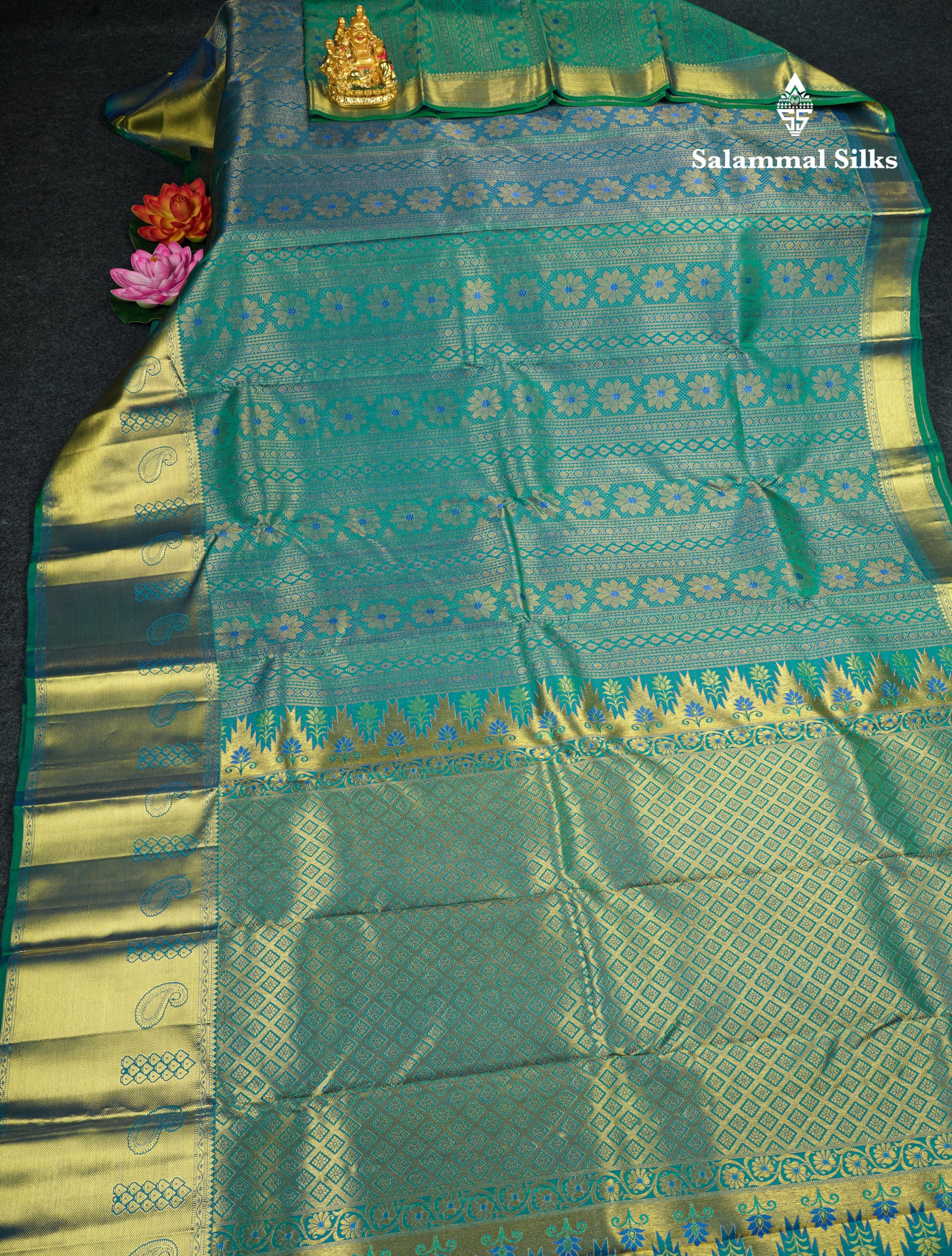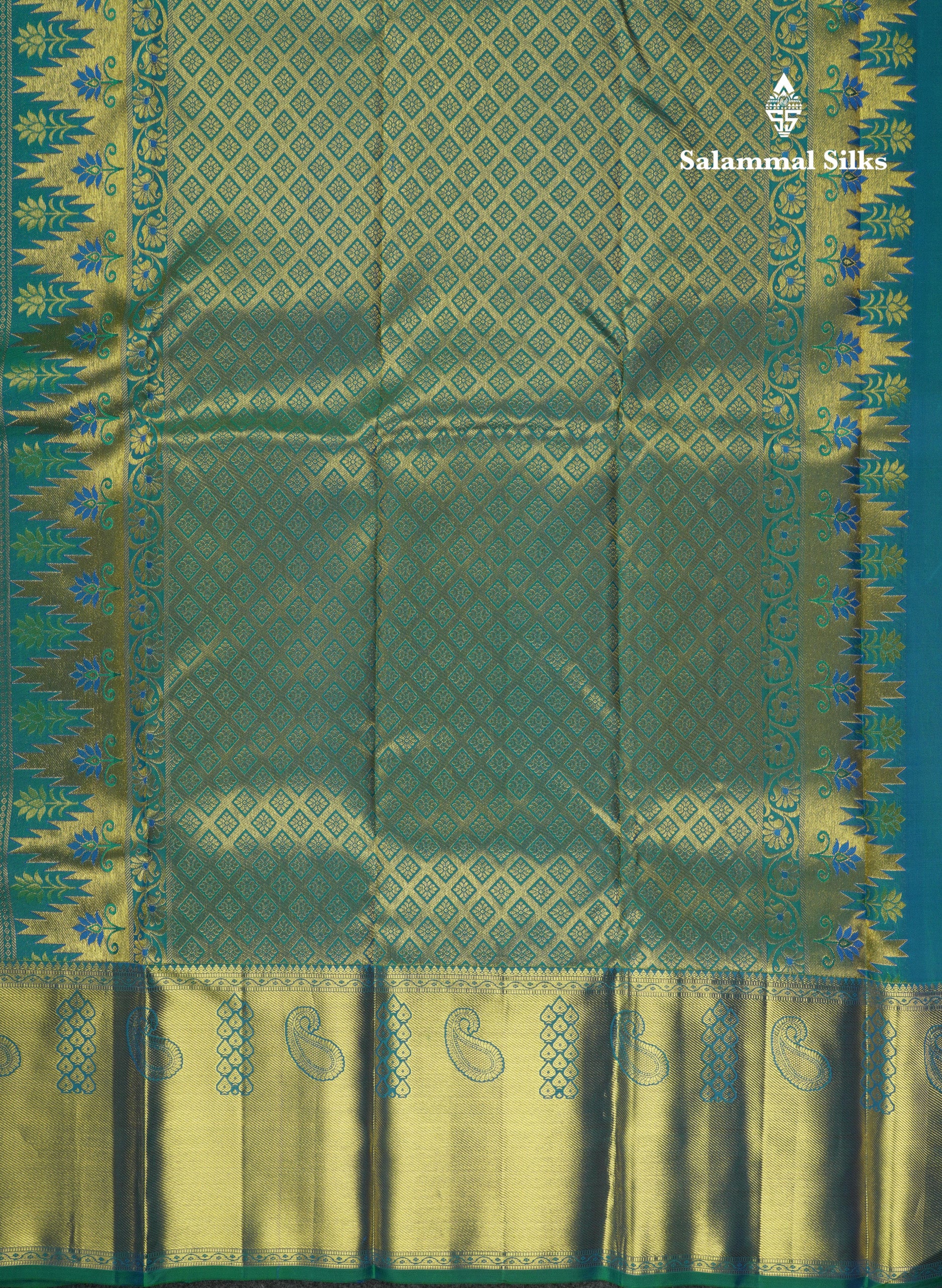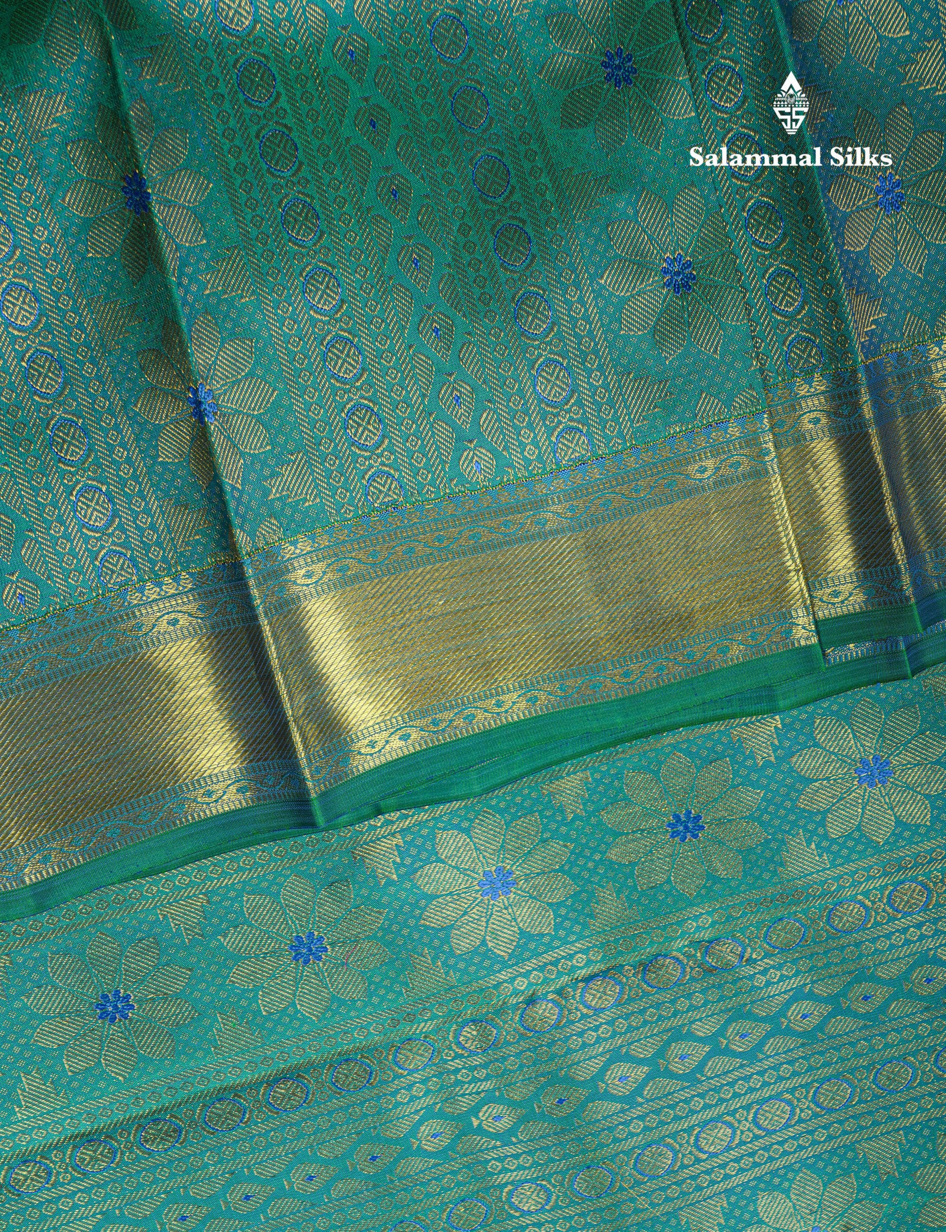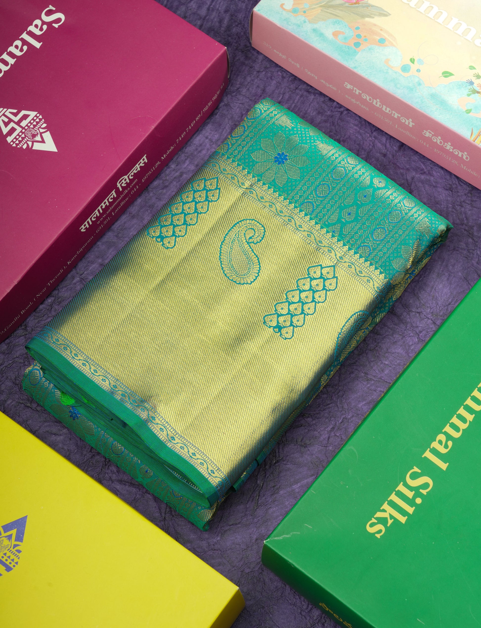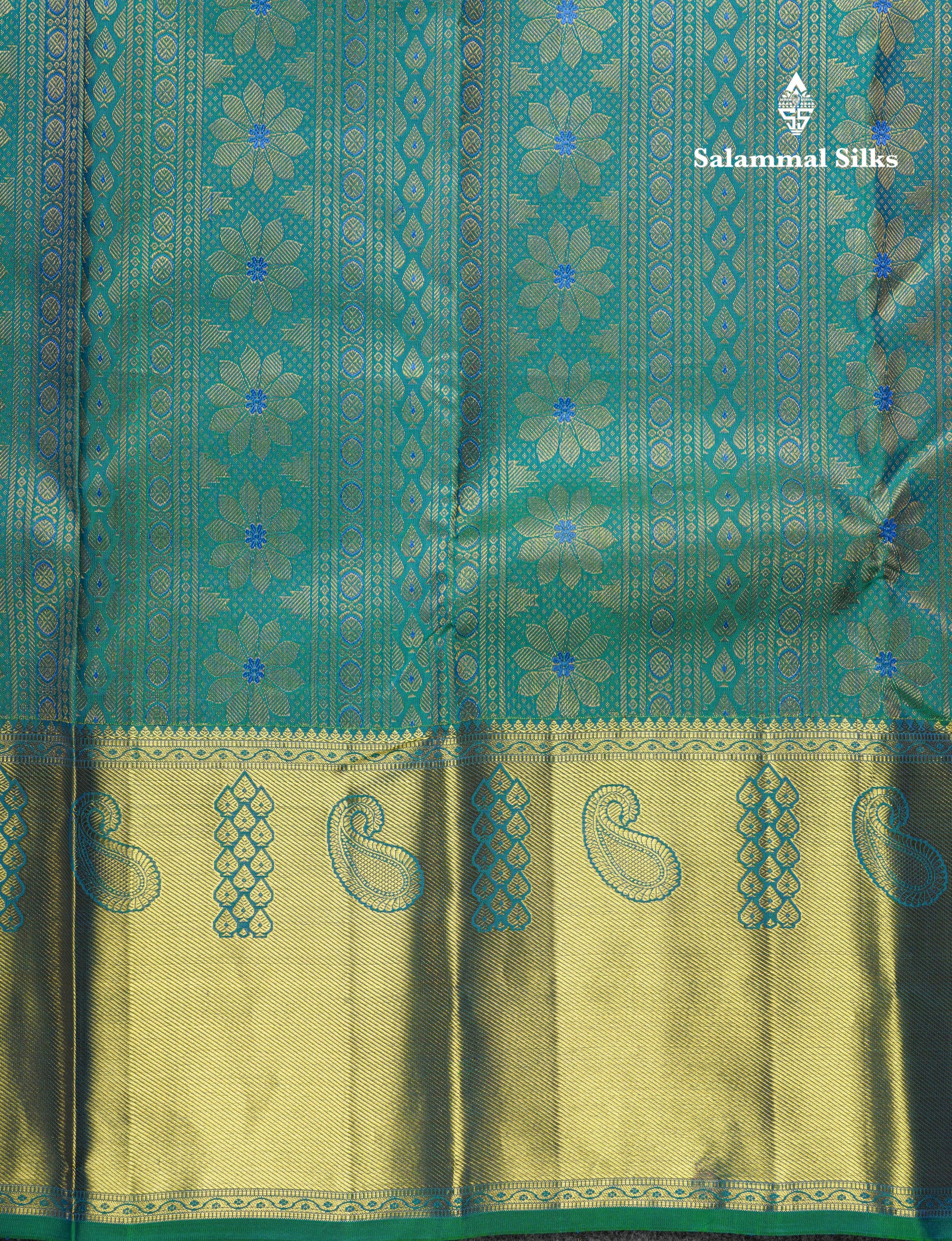 Salammal is known for its handloom sarees. In some sarees, there is cross-weaving between the body and the pallu, which is a sign of pure handloom sarees. This can be seen in Kanchipuram embossed sarees.