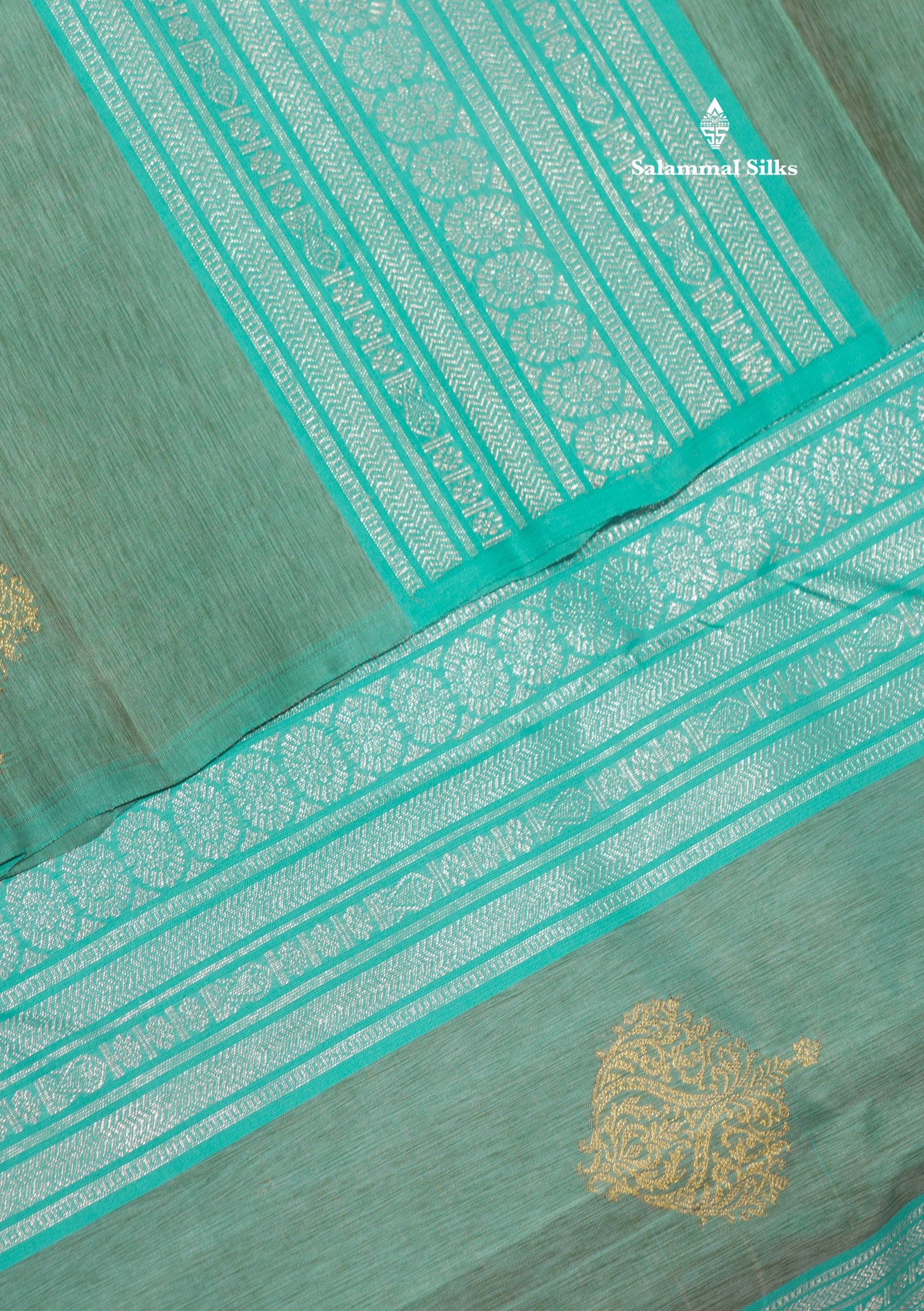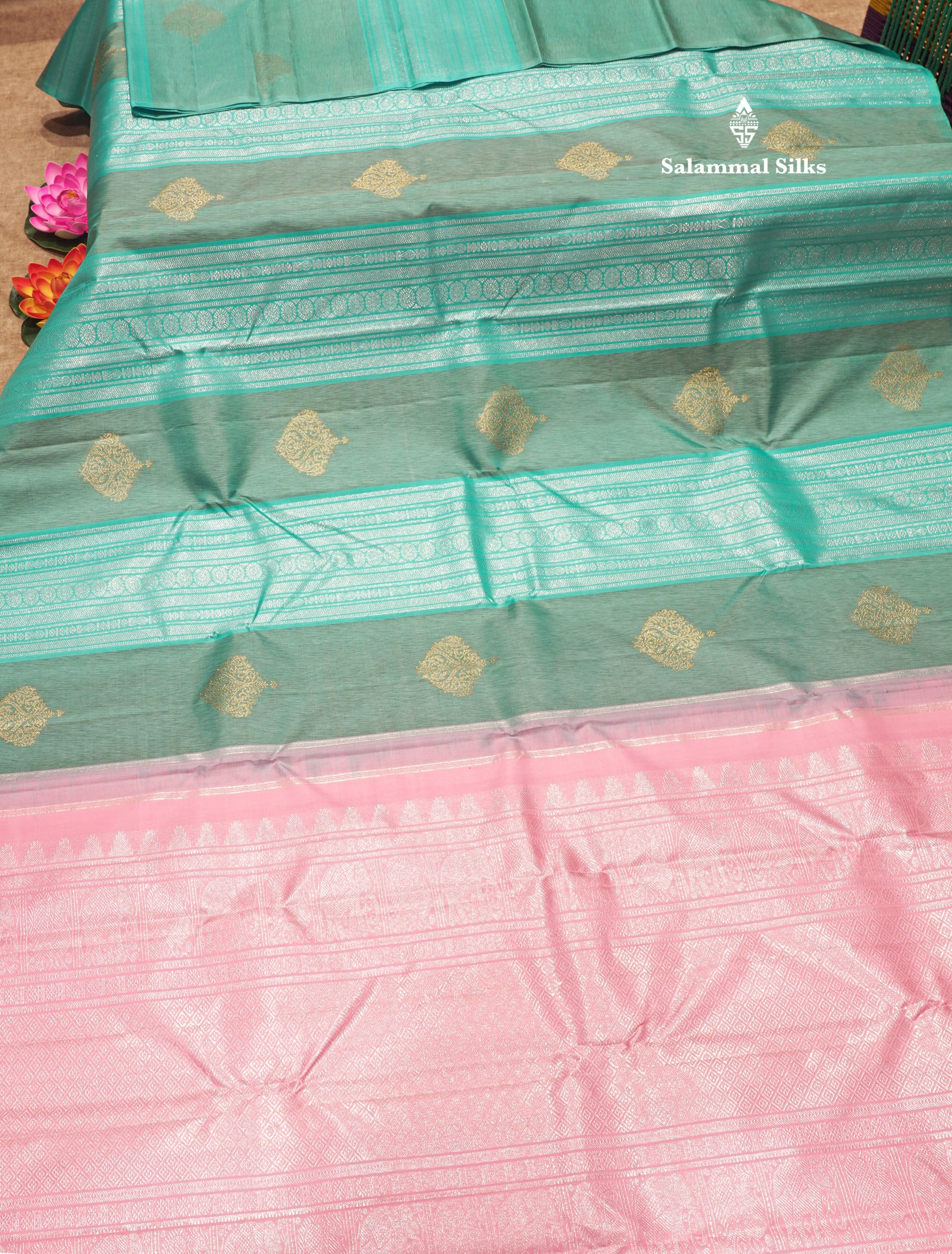 Kanjivaram Beautiful Sea Blue Body Stripe Buttas Pure Silk Saree With Baby Pink Blouse
