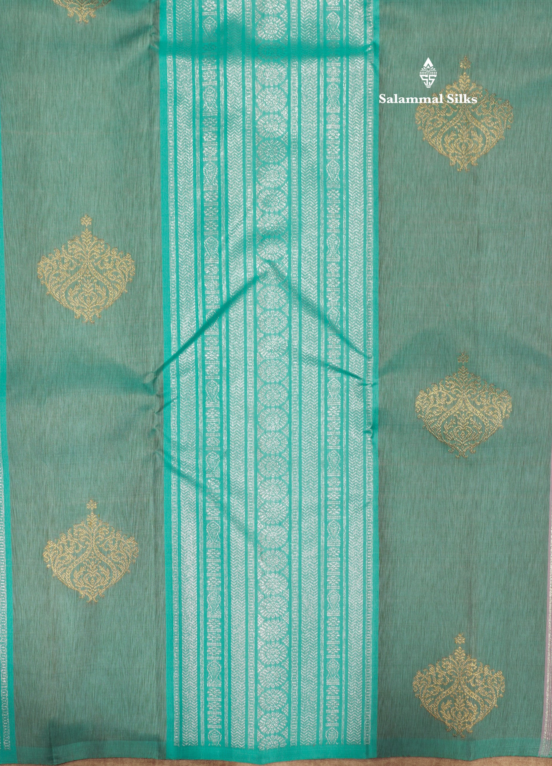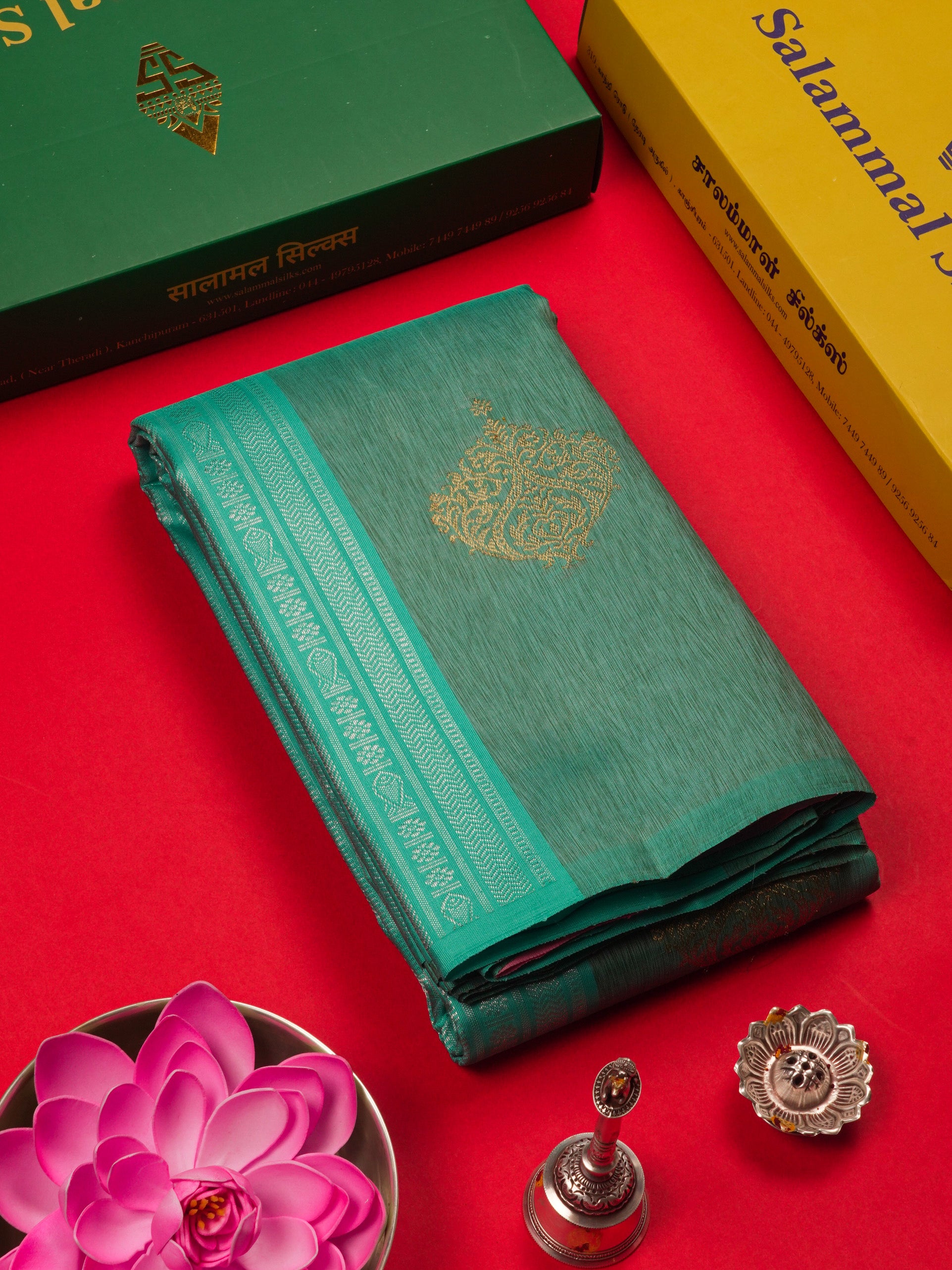 Salammal is known for its handloom sarees. In some sarees, there is cross-weaving between the body and the pallu, which is a sign of pure handloom sarees. This can be seen in Kanchipuram embossed sarees.