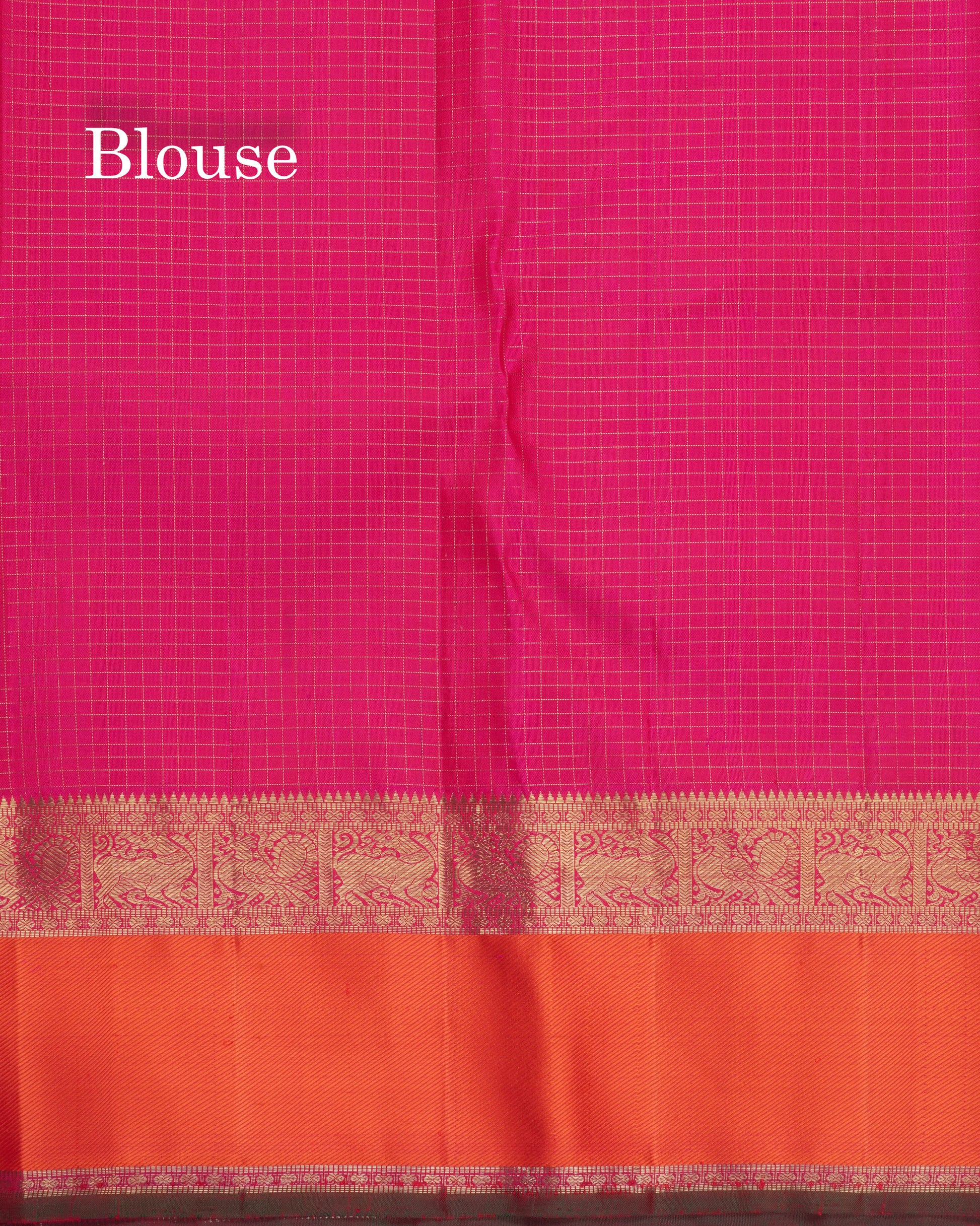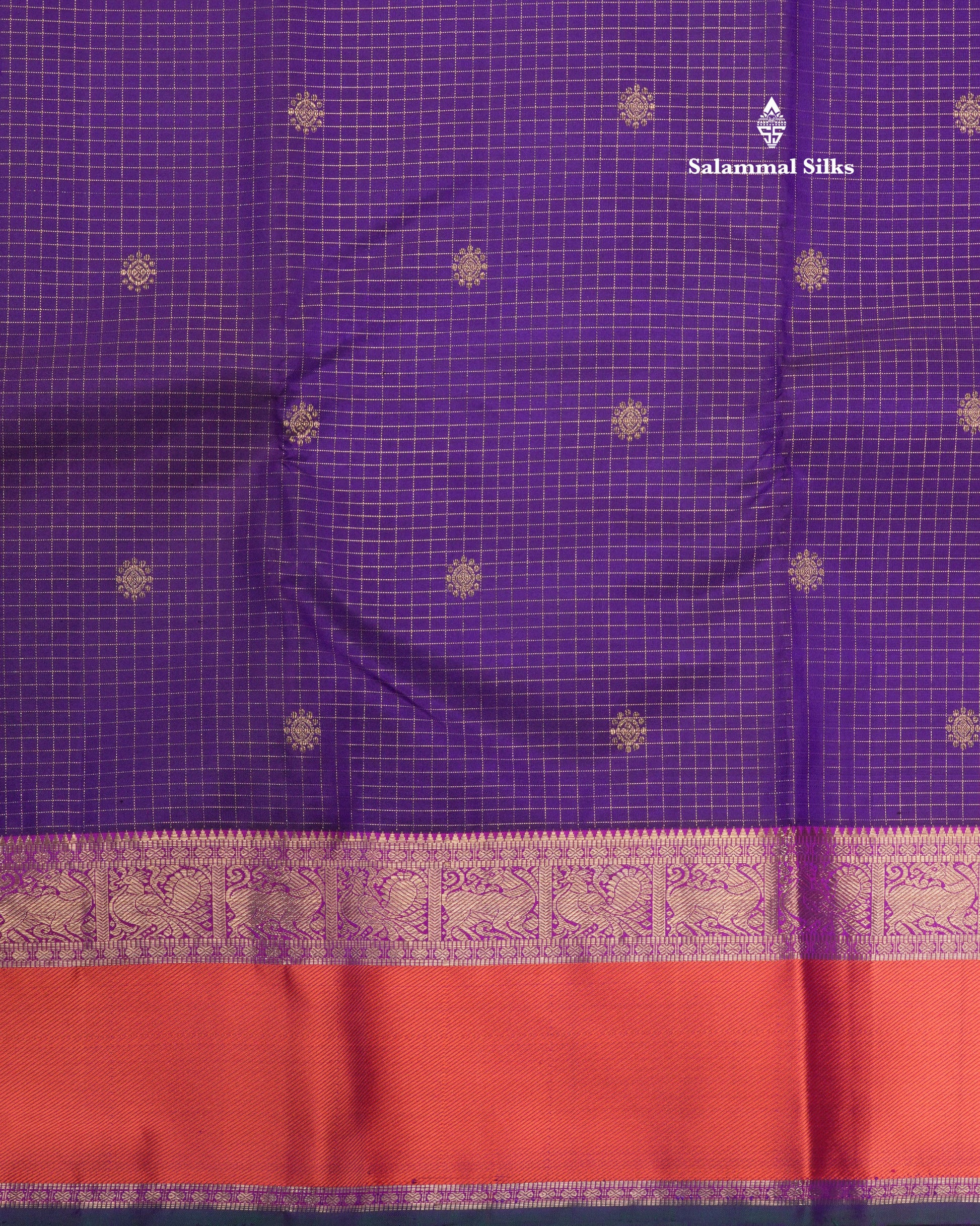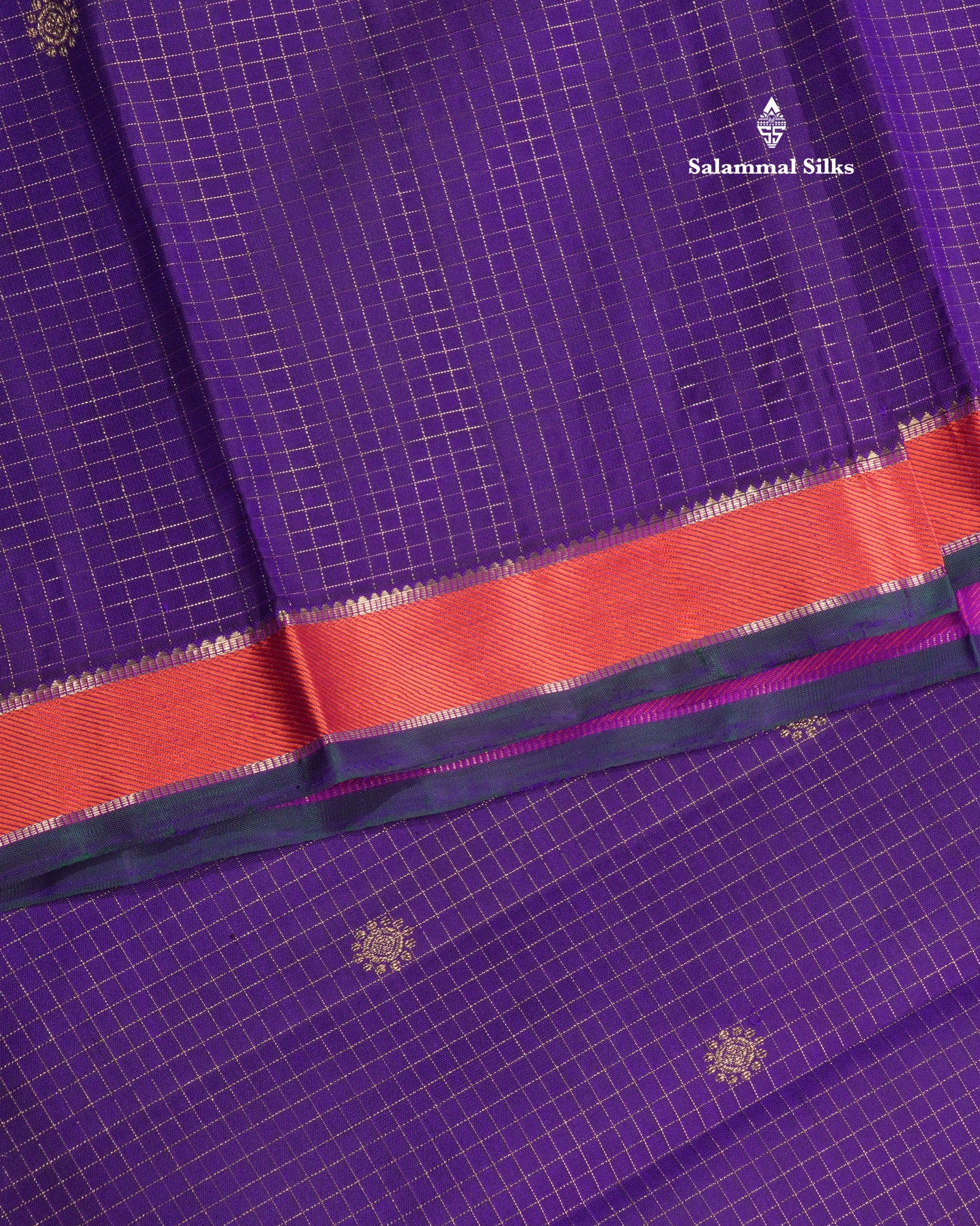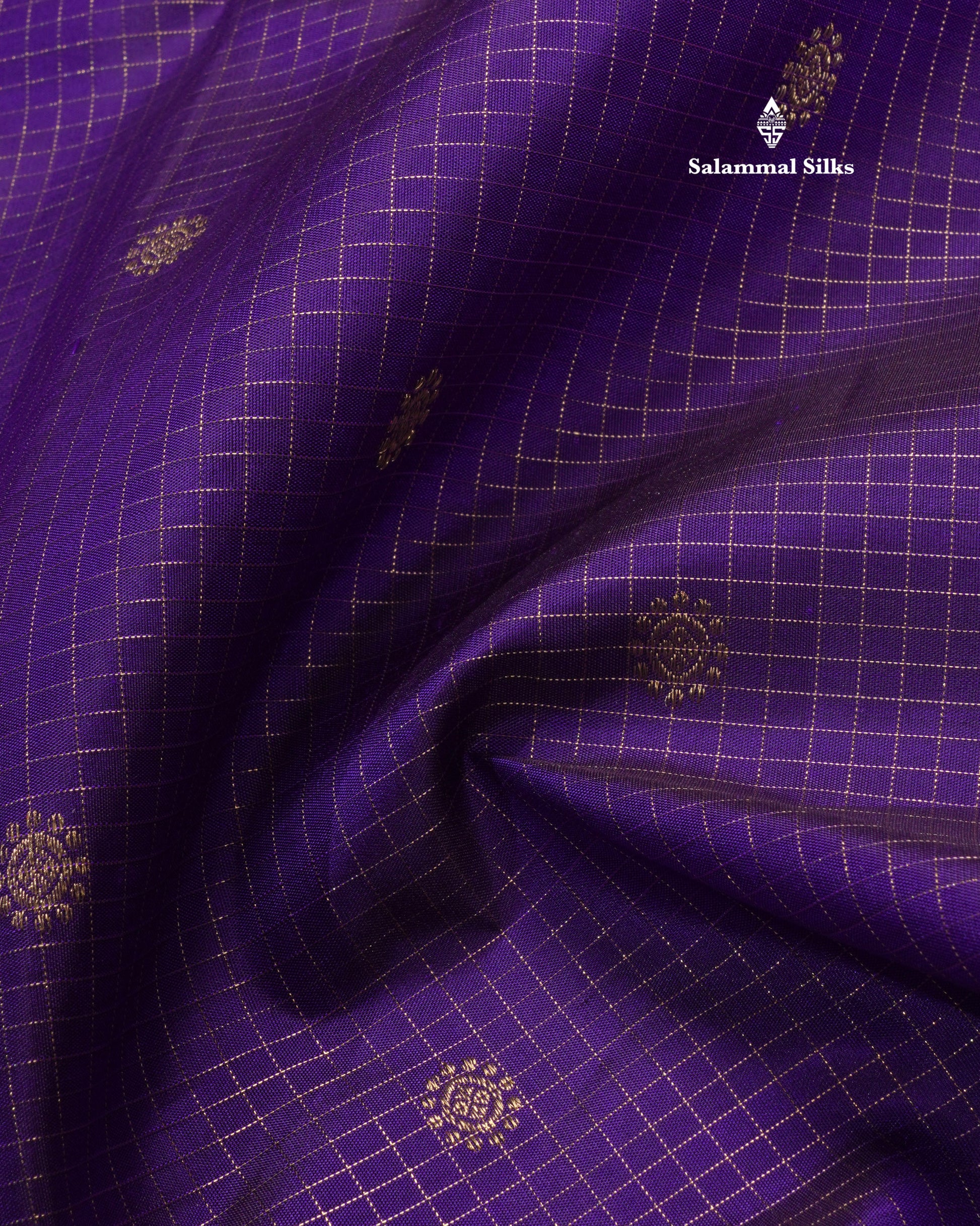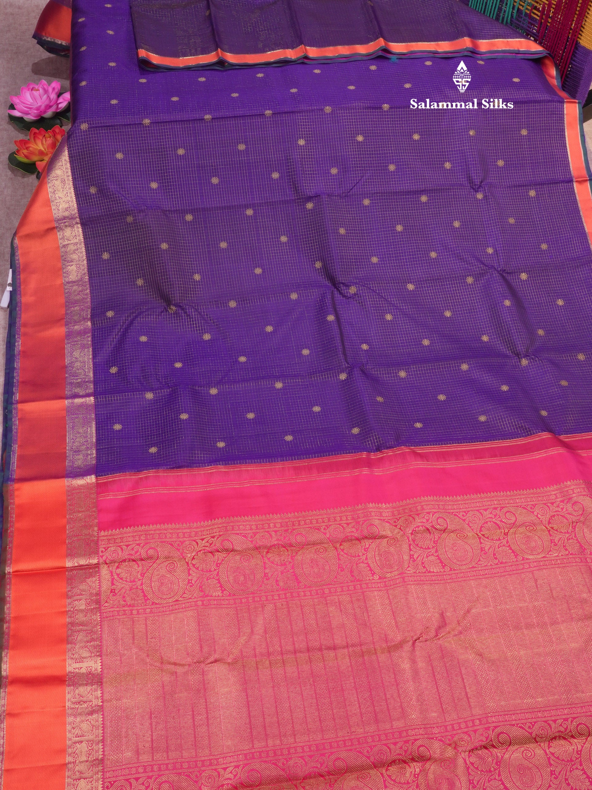 Kanjivaram Beautiful Violet 3G Pure Zari Checks Pure Silk Saree With Traditional Korvai Border