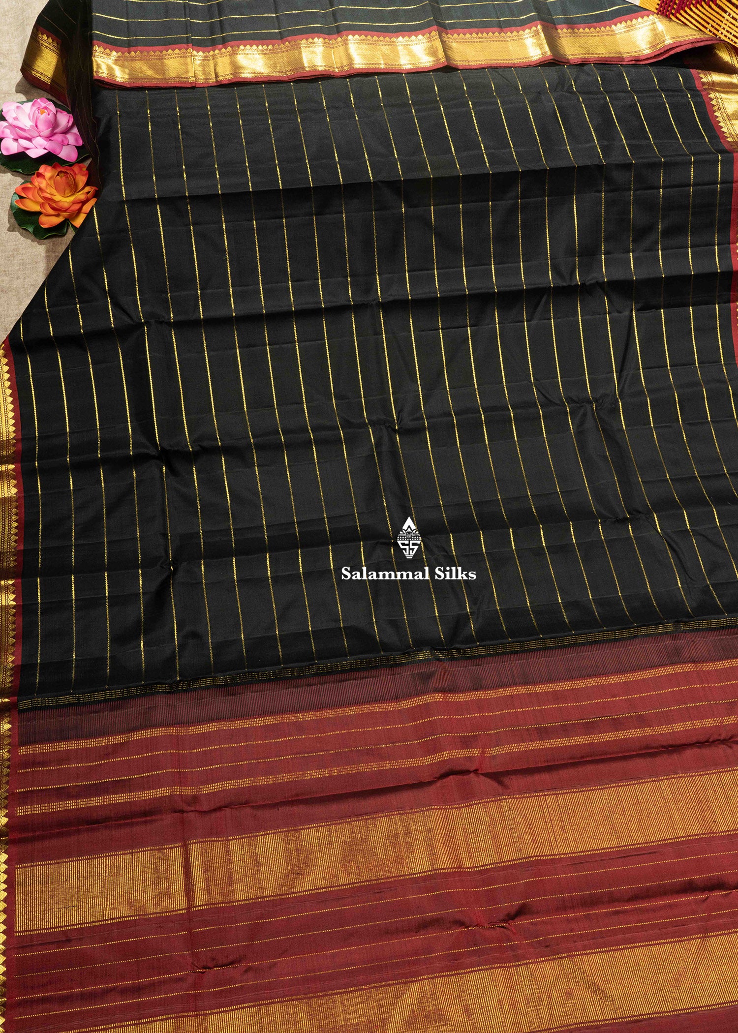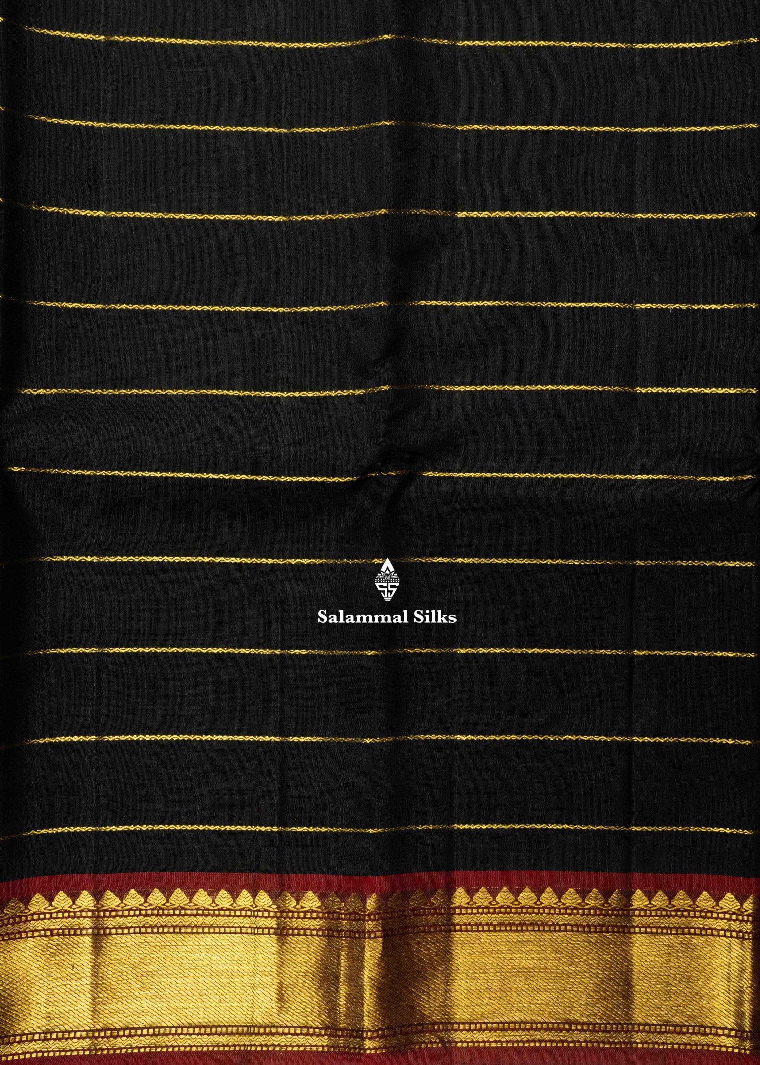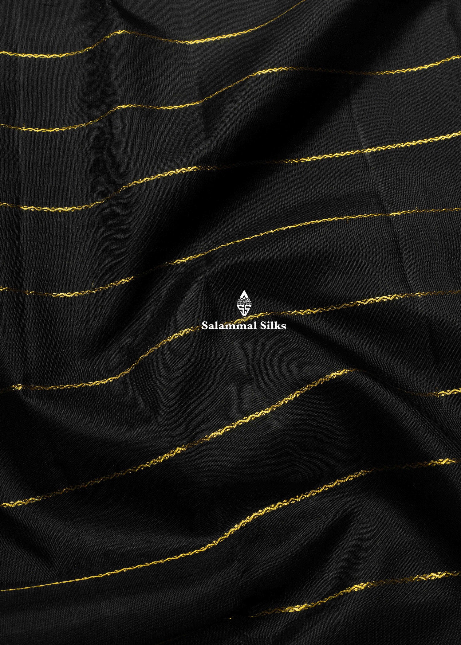 Kanjivaram Black Colour Pure Silk Saree With Traditional Gold Zari Small Border