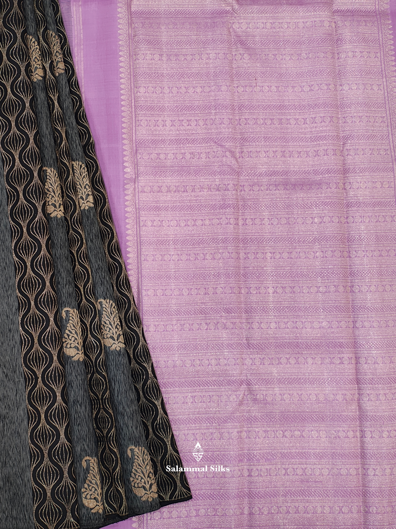 Kanjivaram Black Grey Beutiful Fancy Pure Silk Saree With Lavender Blouse