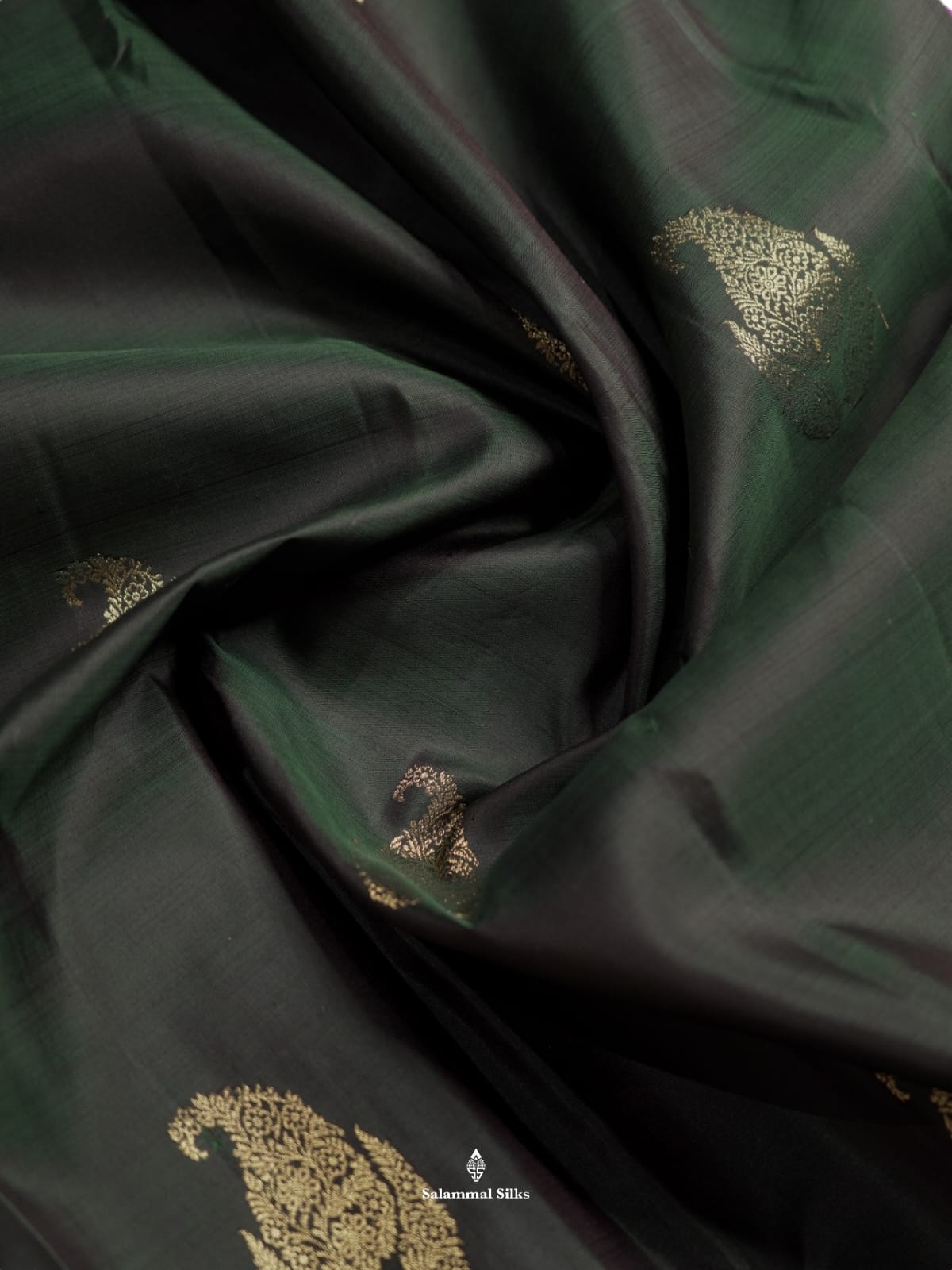 Kanjivaram Bottle Green Pure Silk Saree With Magenta Border