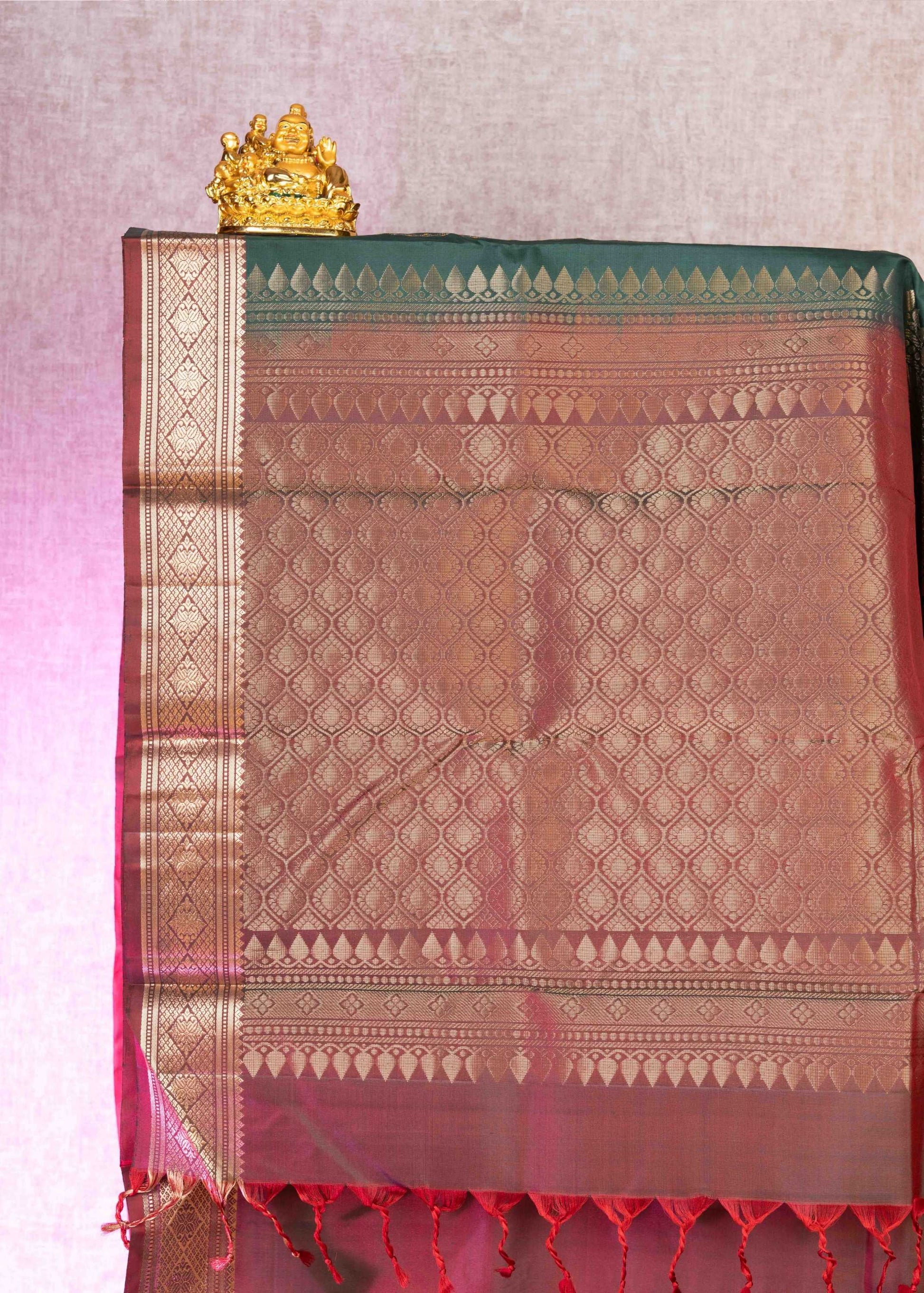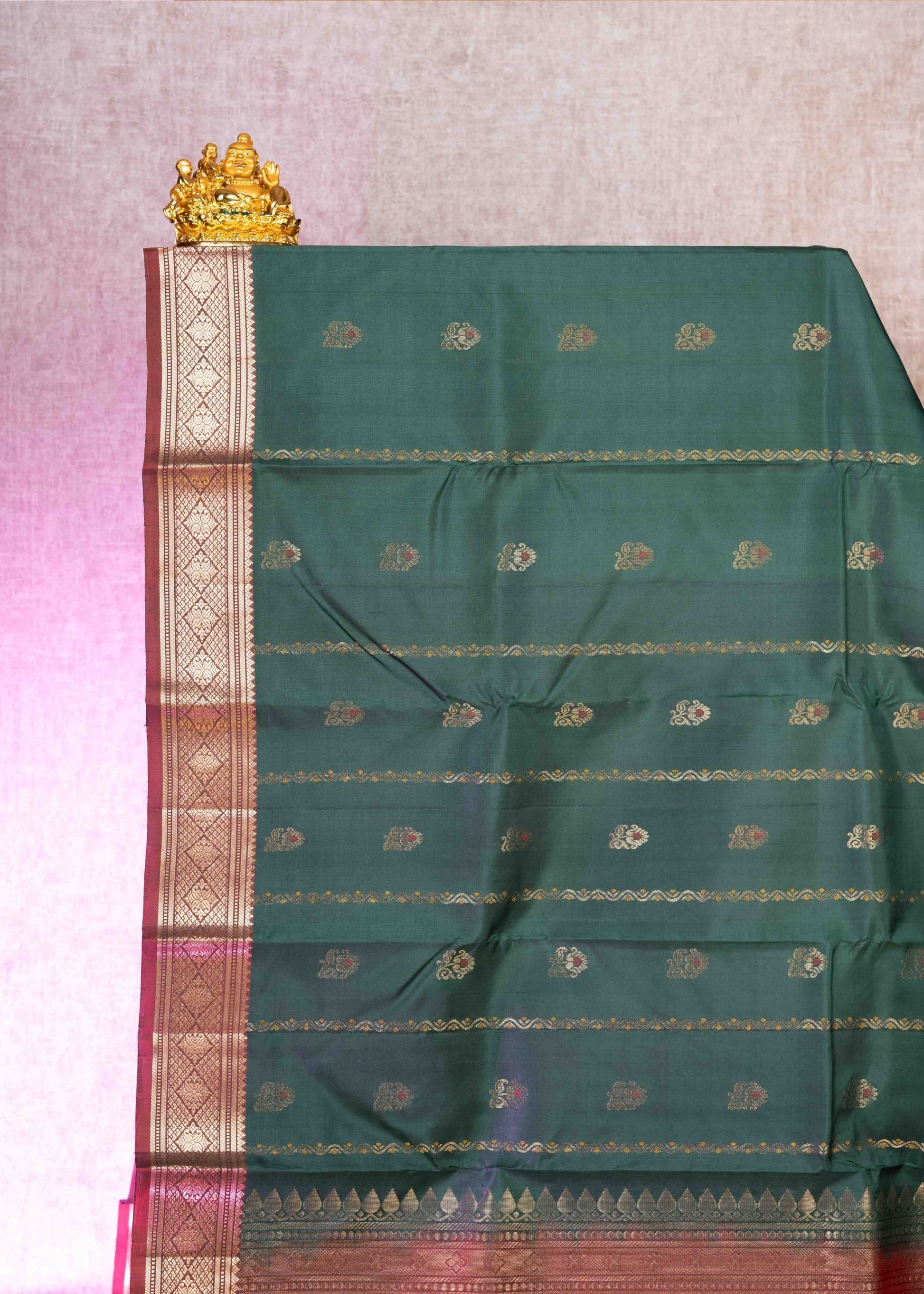 Kanjivaram Bottle Green Pure Silk Saree With Maroon Blouse