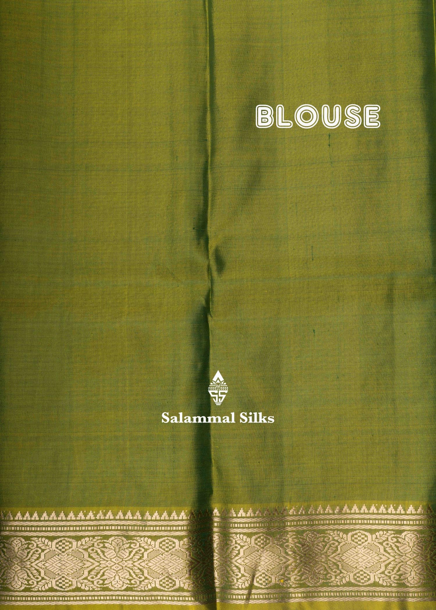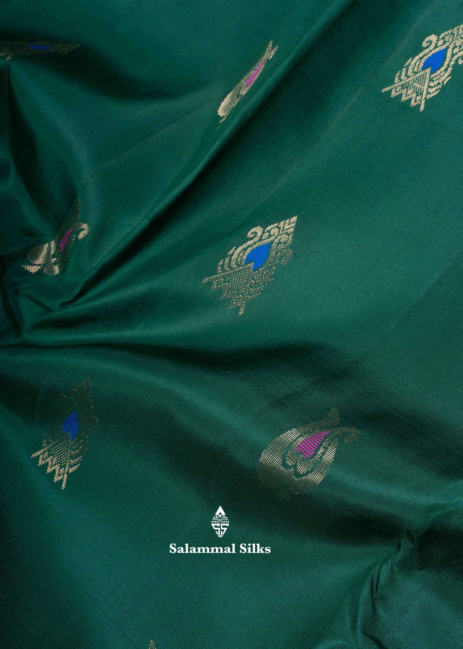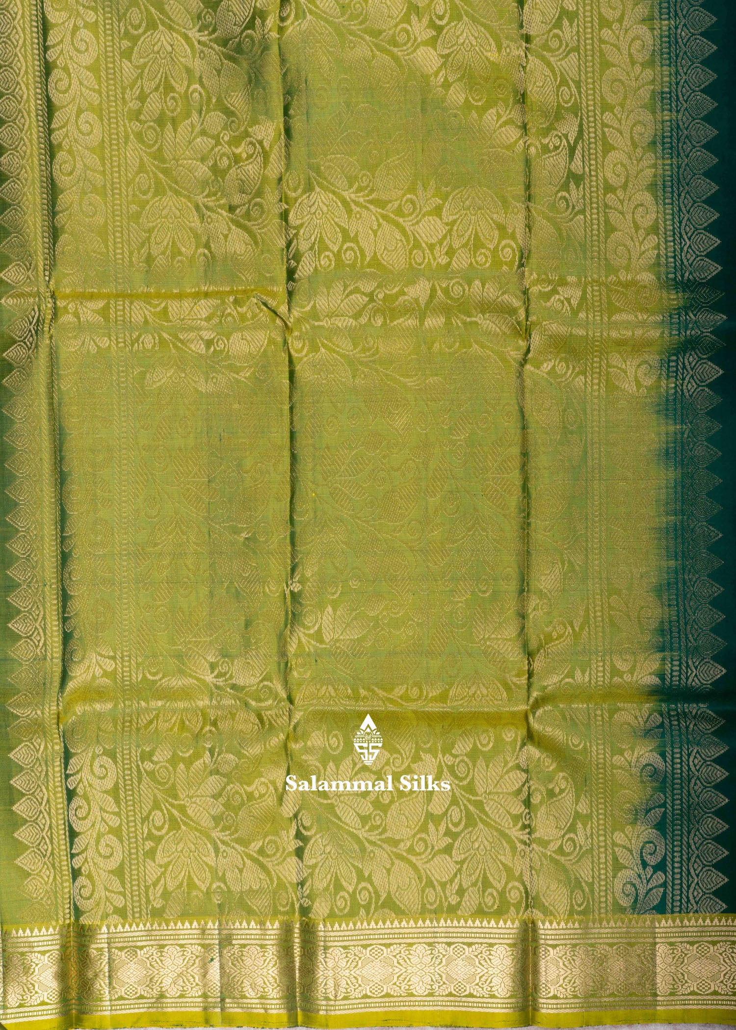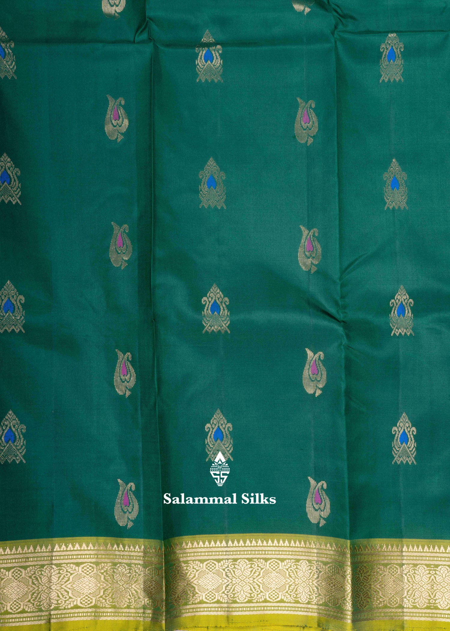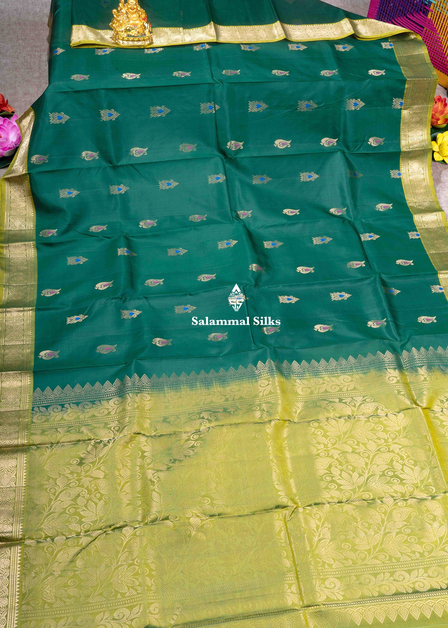 Kanjivaram Bottle Green Pure Silk Saree With Yellow Green Blouse