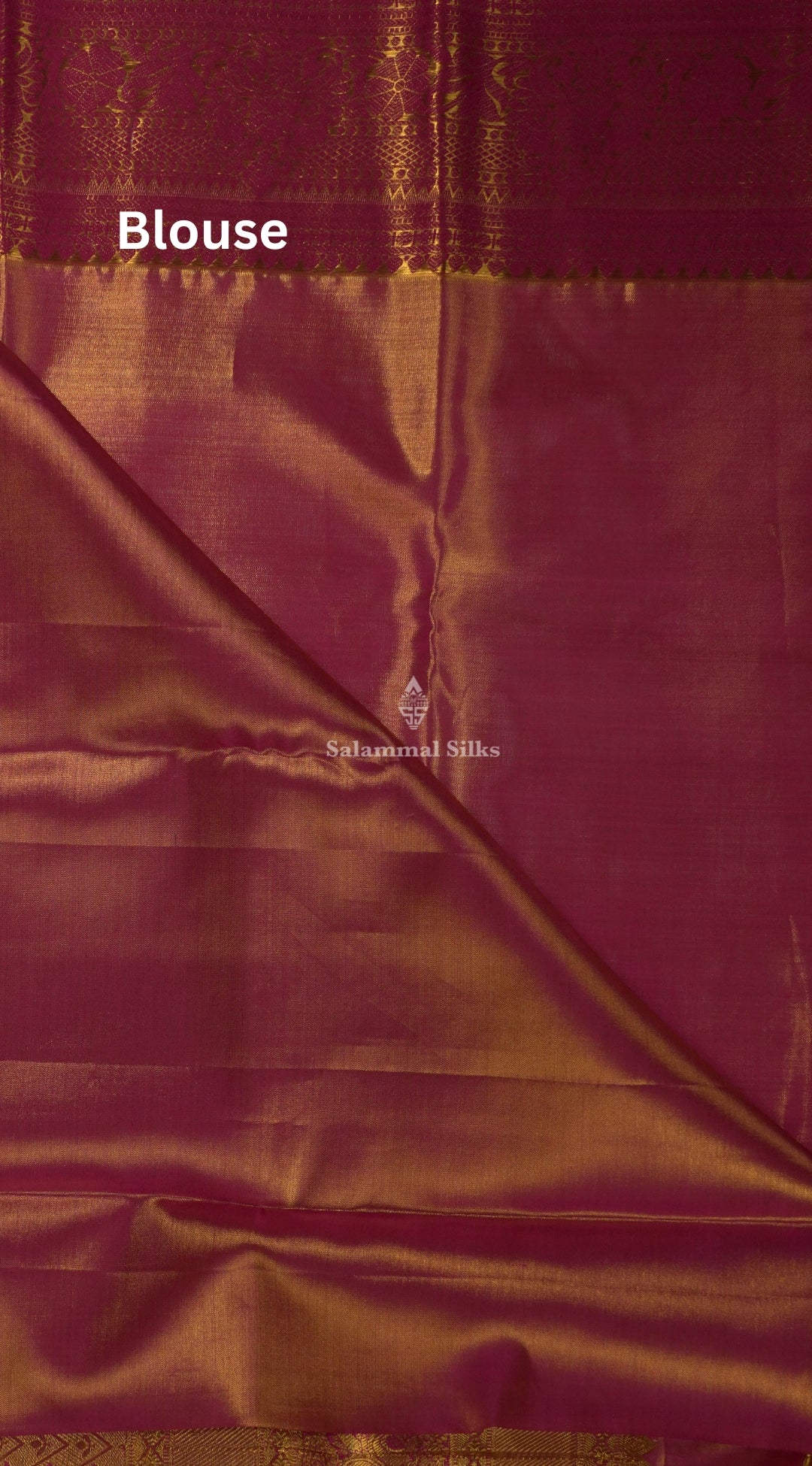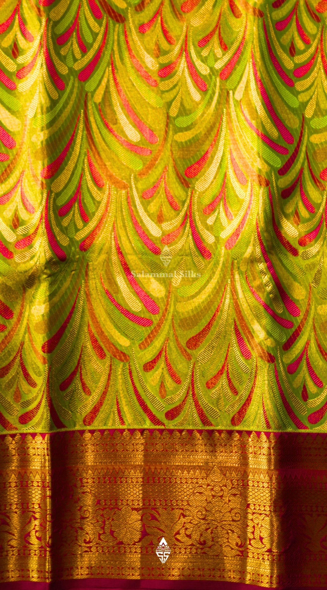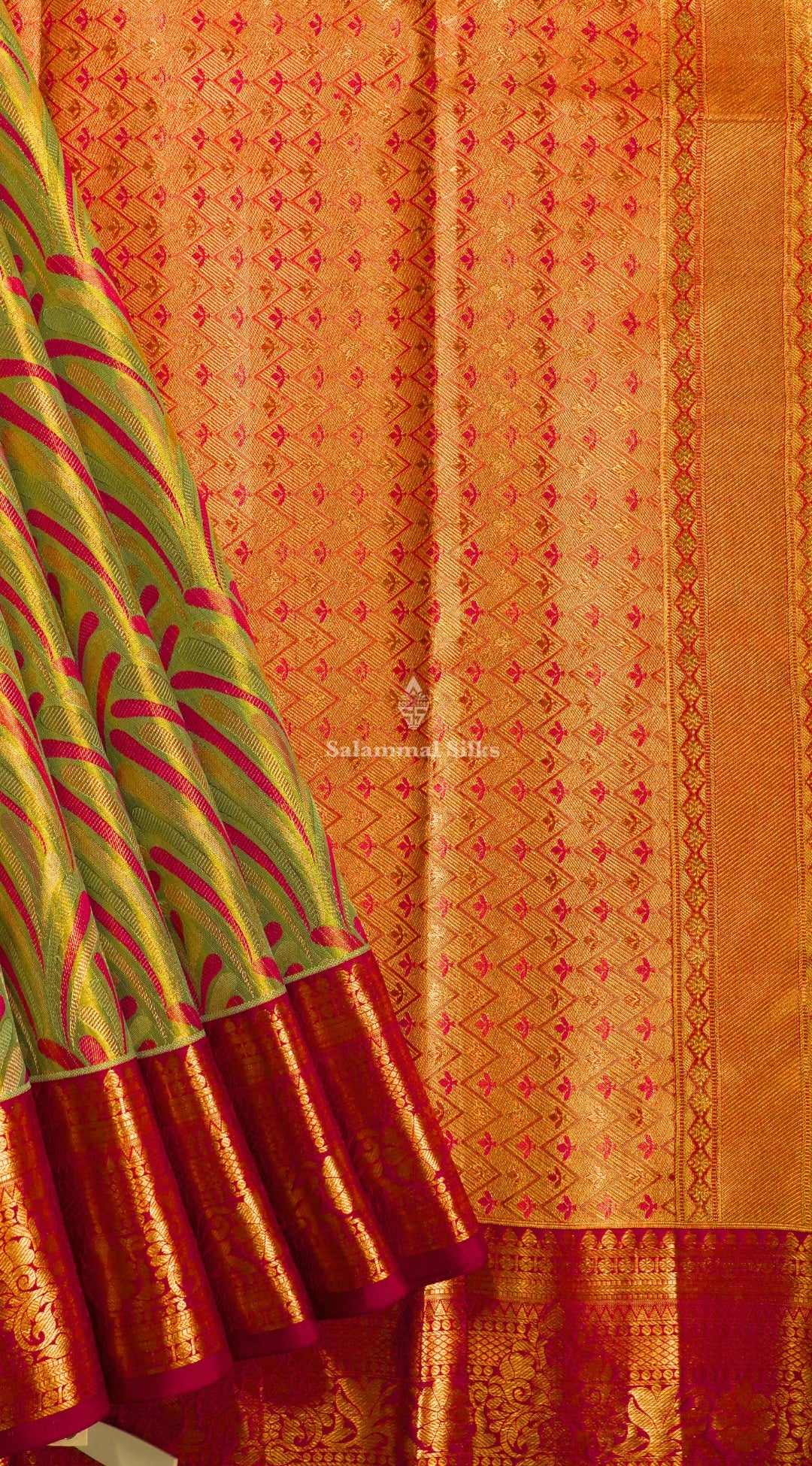 Kanjivaram Elaichi Green Tissue Pure Silk Saree With Magenta Border