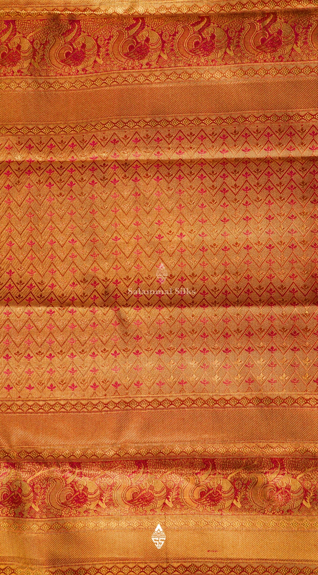 Salammal is known for its handloom sarees. In some sarees, there is cross-weaving between the body and the pallu, which is a sign of pure handloom sarees. This can be seen in Kanchipuram embossed sarees.