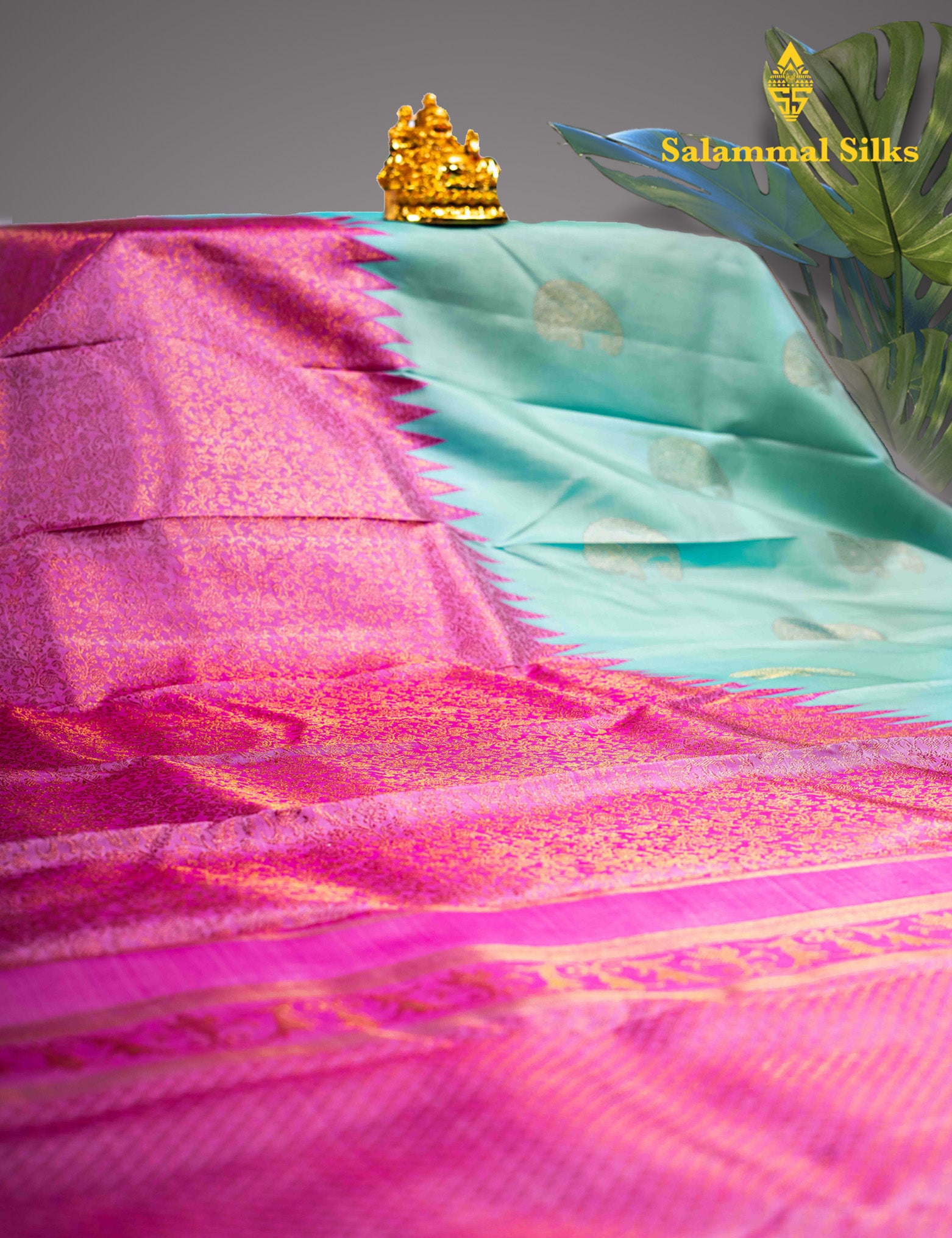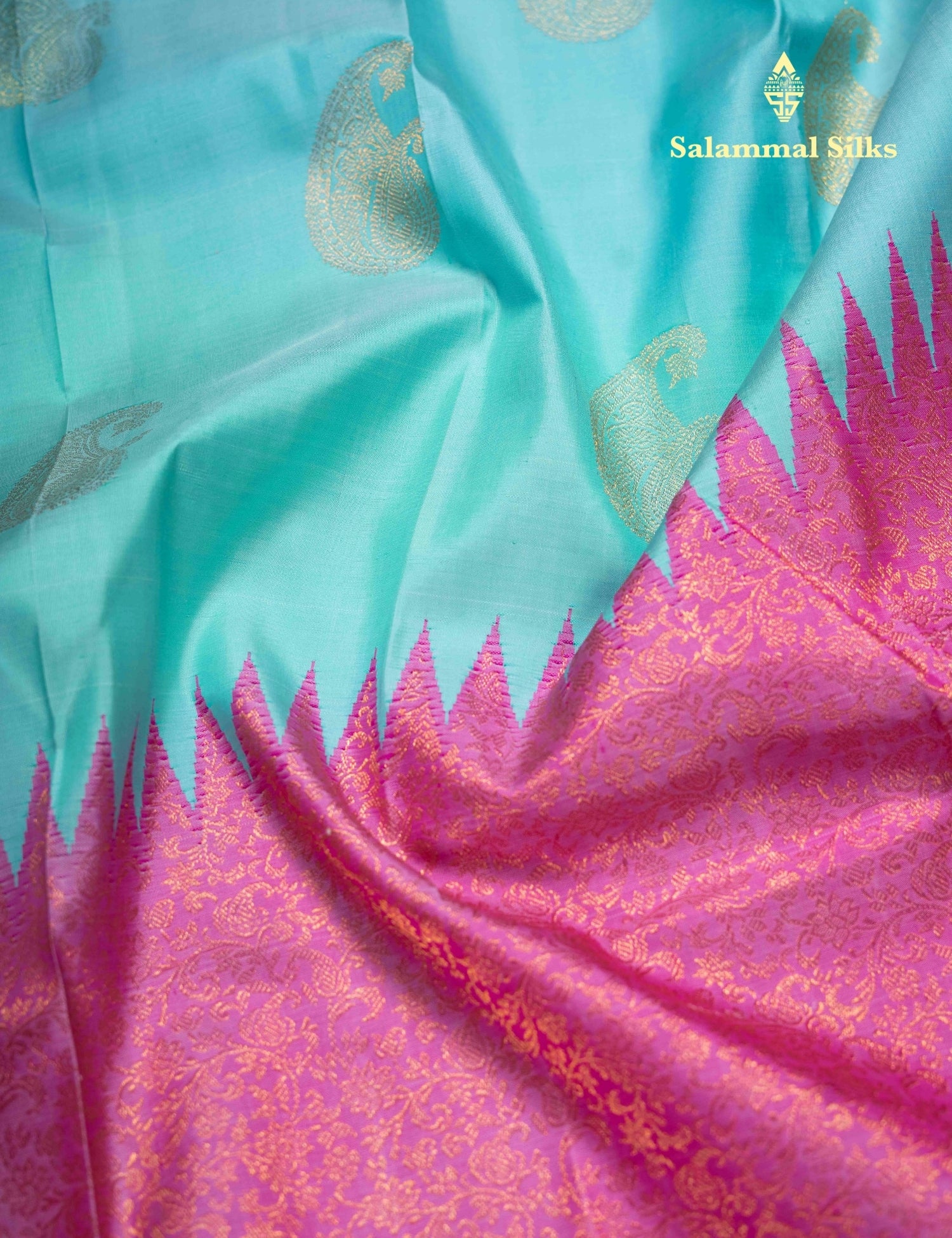Salammal is known for its handloom sarees. In some sarees, there is cross-weaving between the body and the pallu, which is a sign of pure handloom sarees. This can be seen in Kanchipuram embossed sarees.
