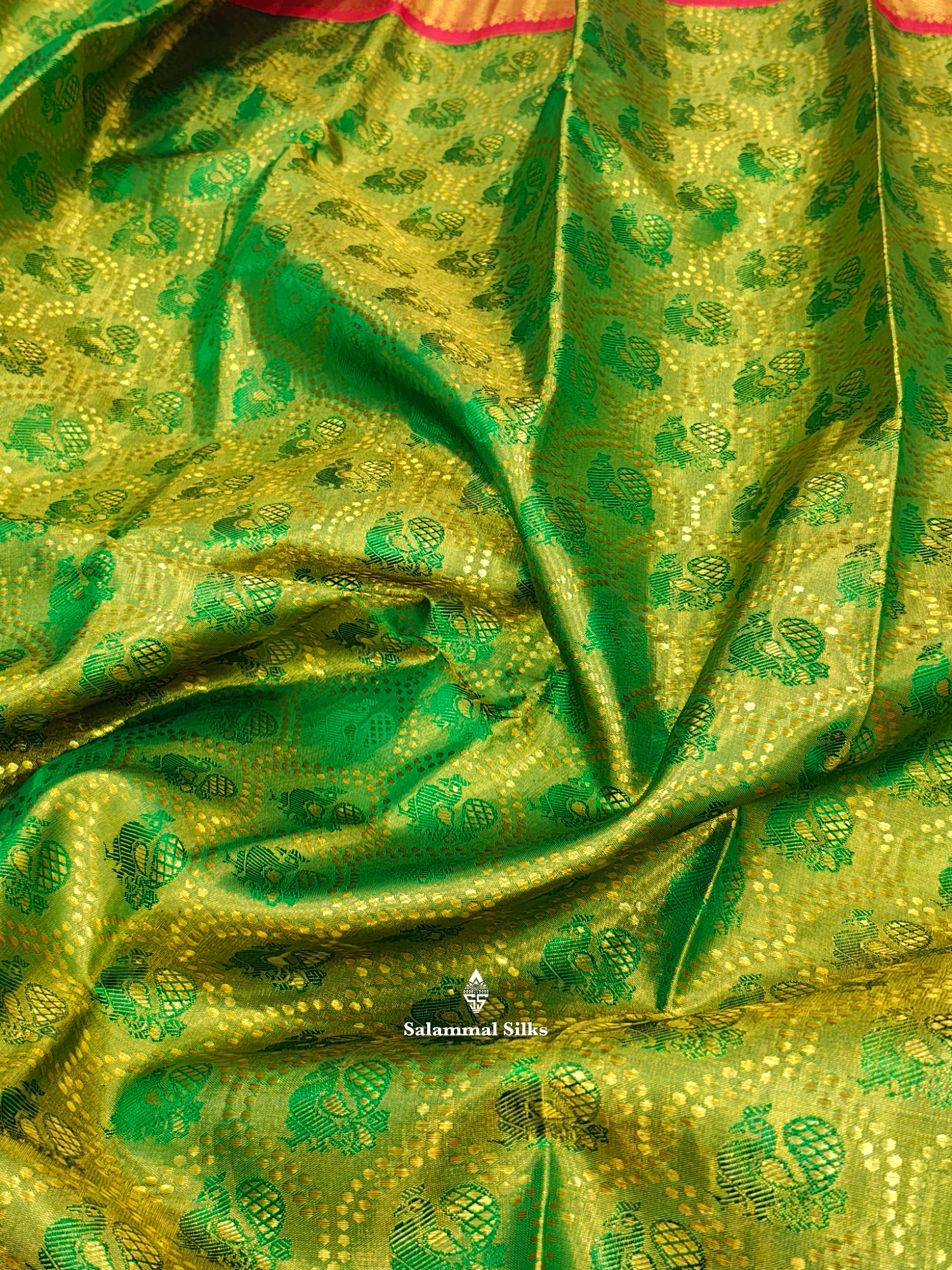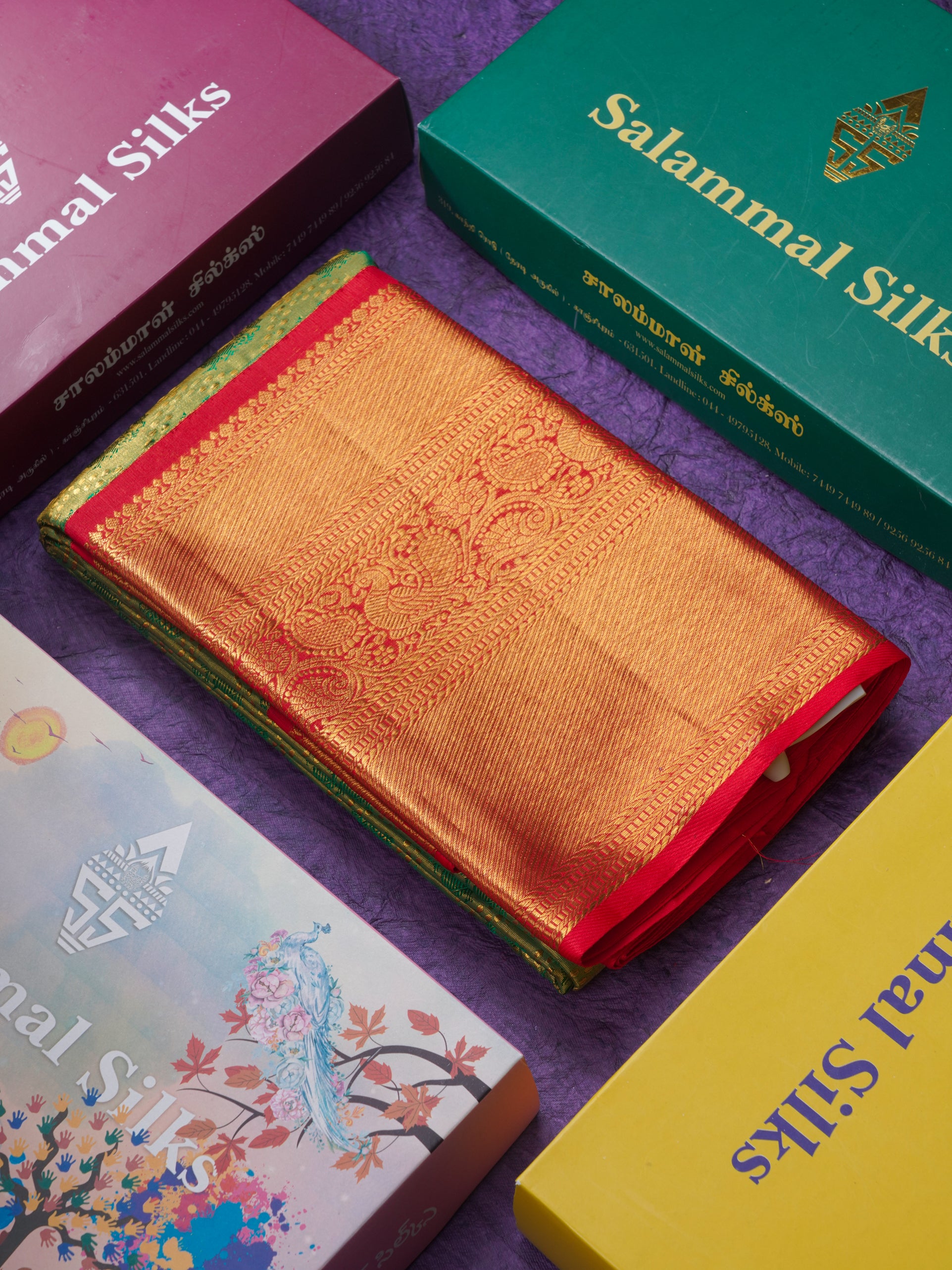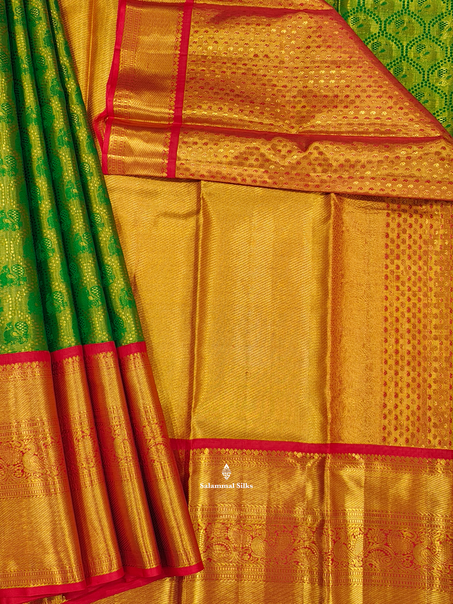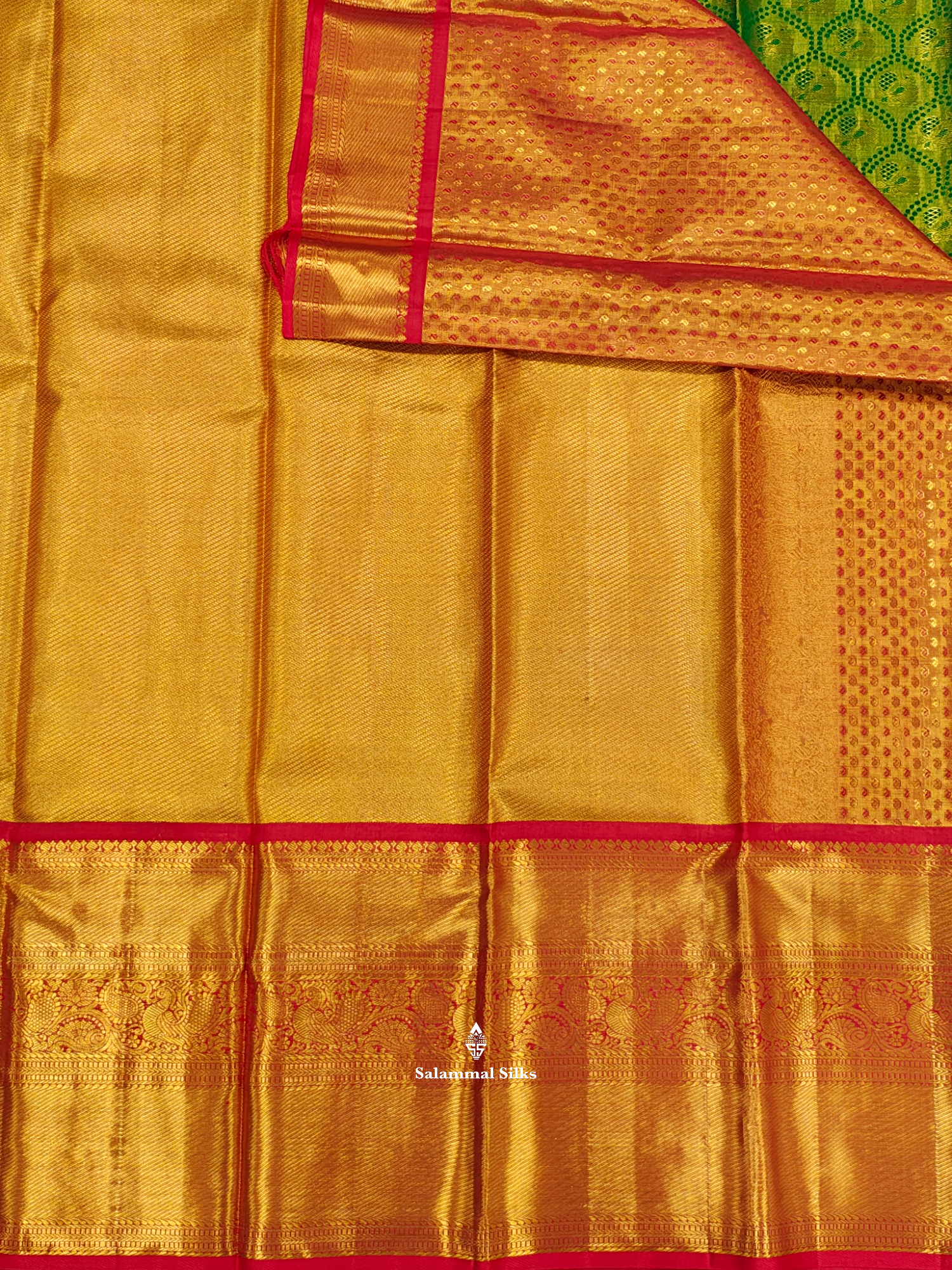 Kanjivaram Green Gold Tissue Fancy Silk Saree With Red Border