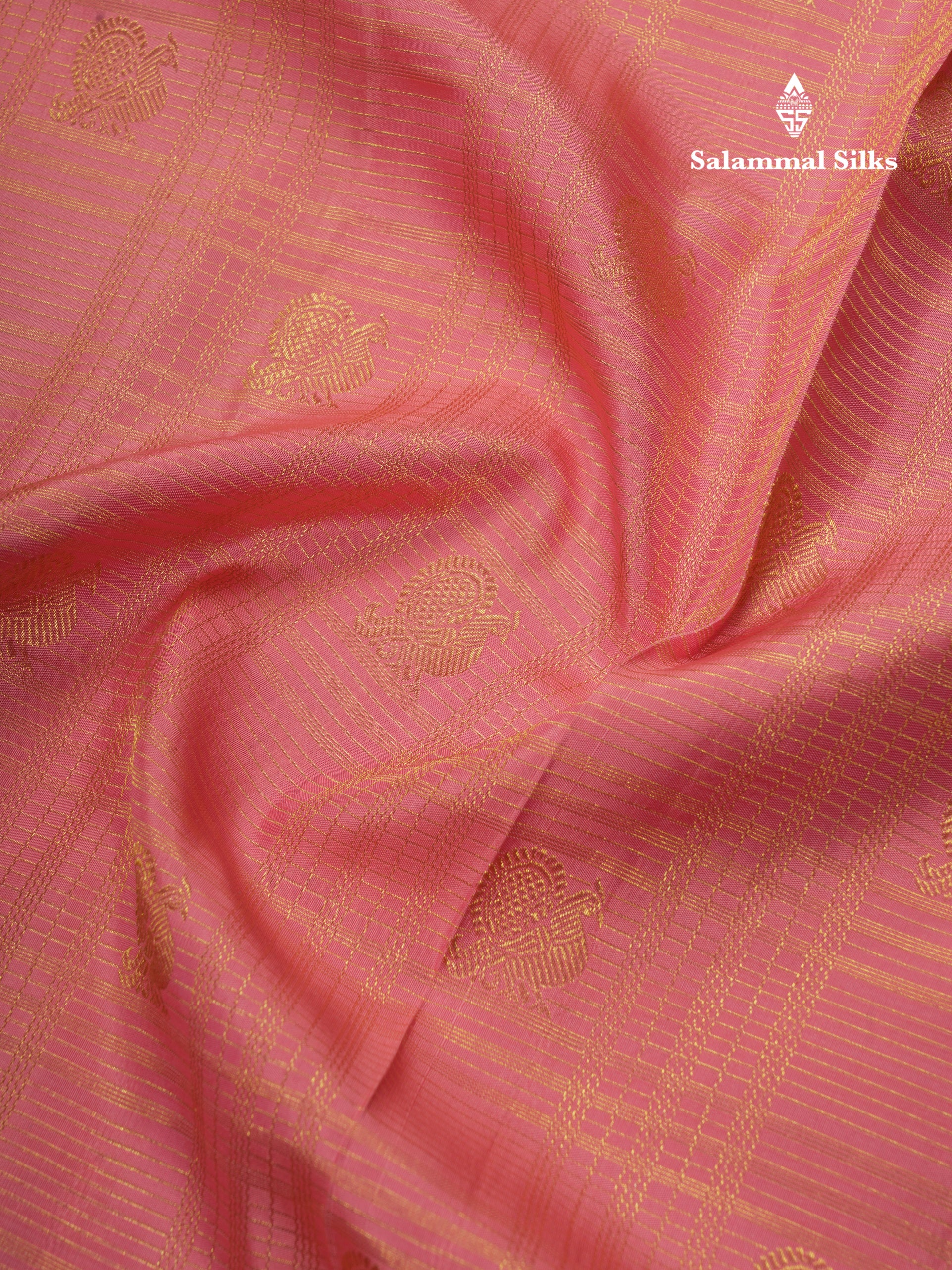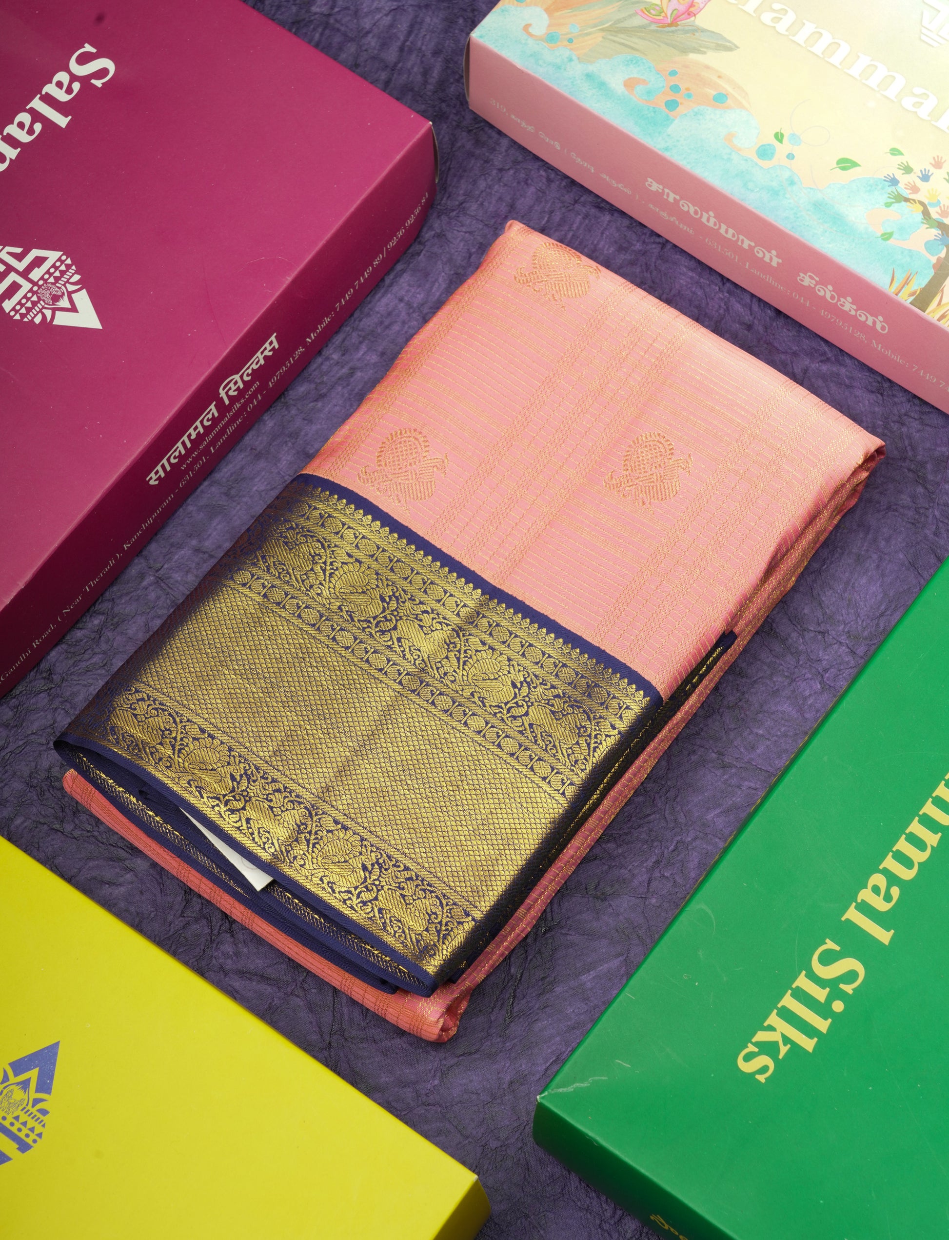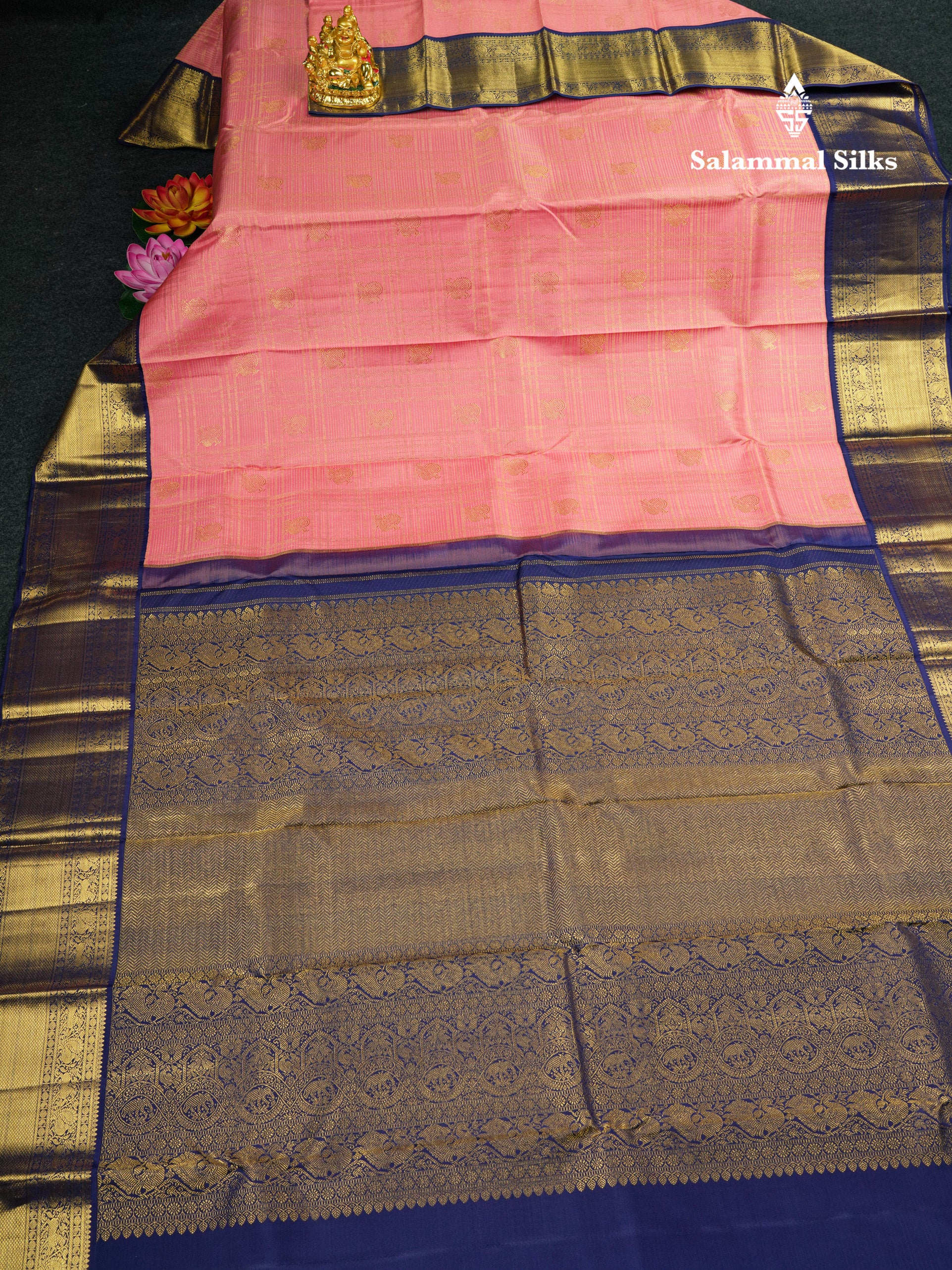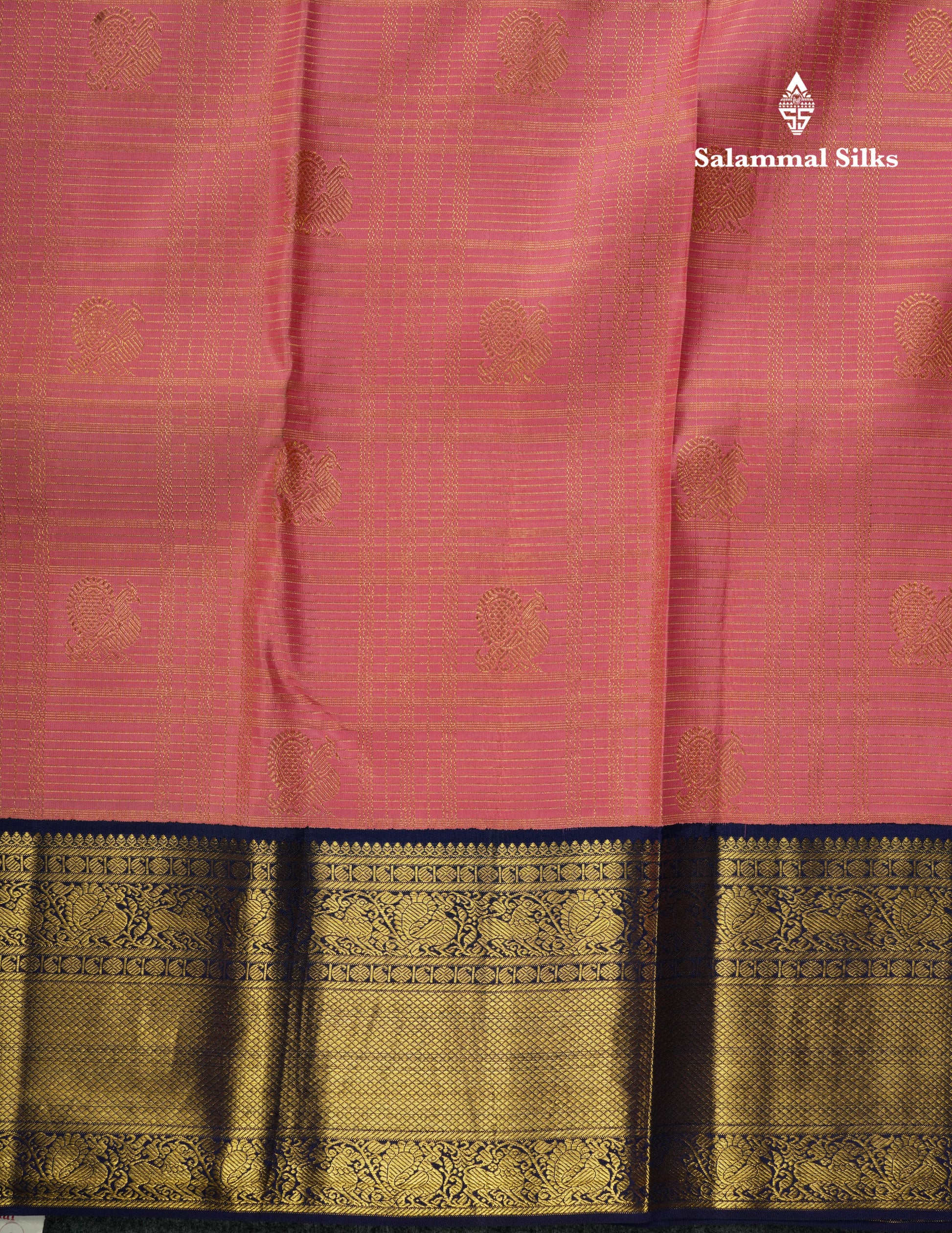 Kanjivaram Korvai Traditional Checks Baby Pink Silk Saree With Violet Border