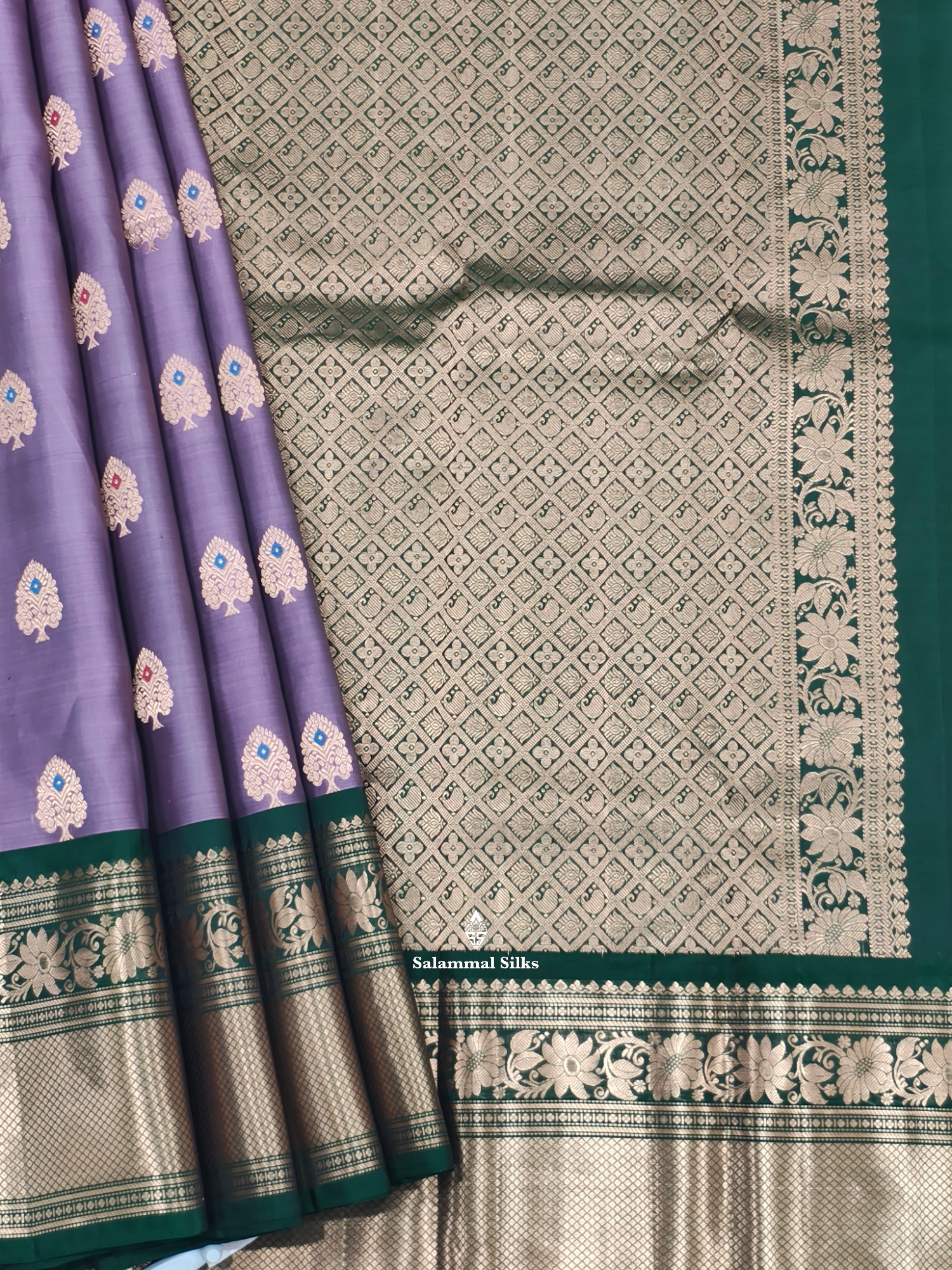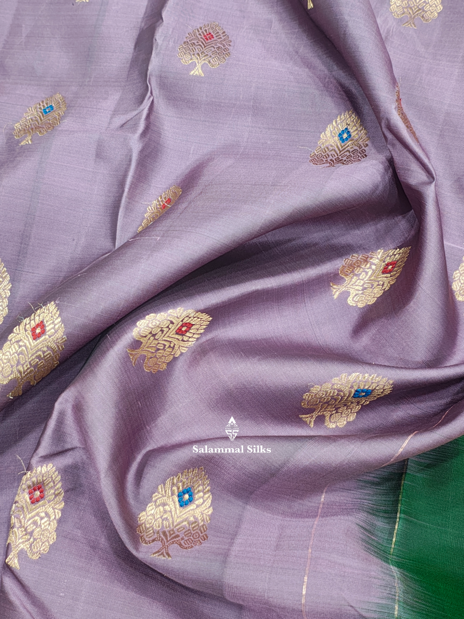 Kanjivaram Lavender Fancy Pure Silk Saree With Green Border