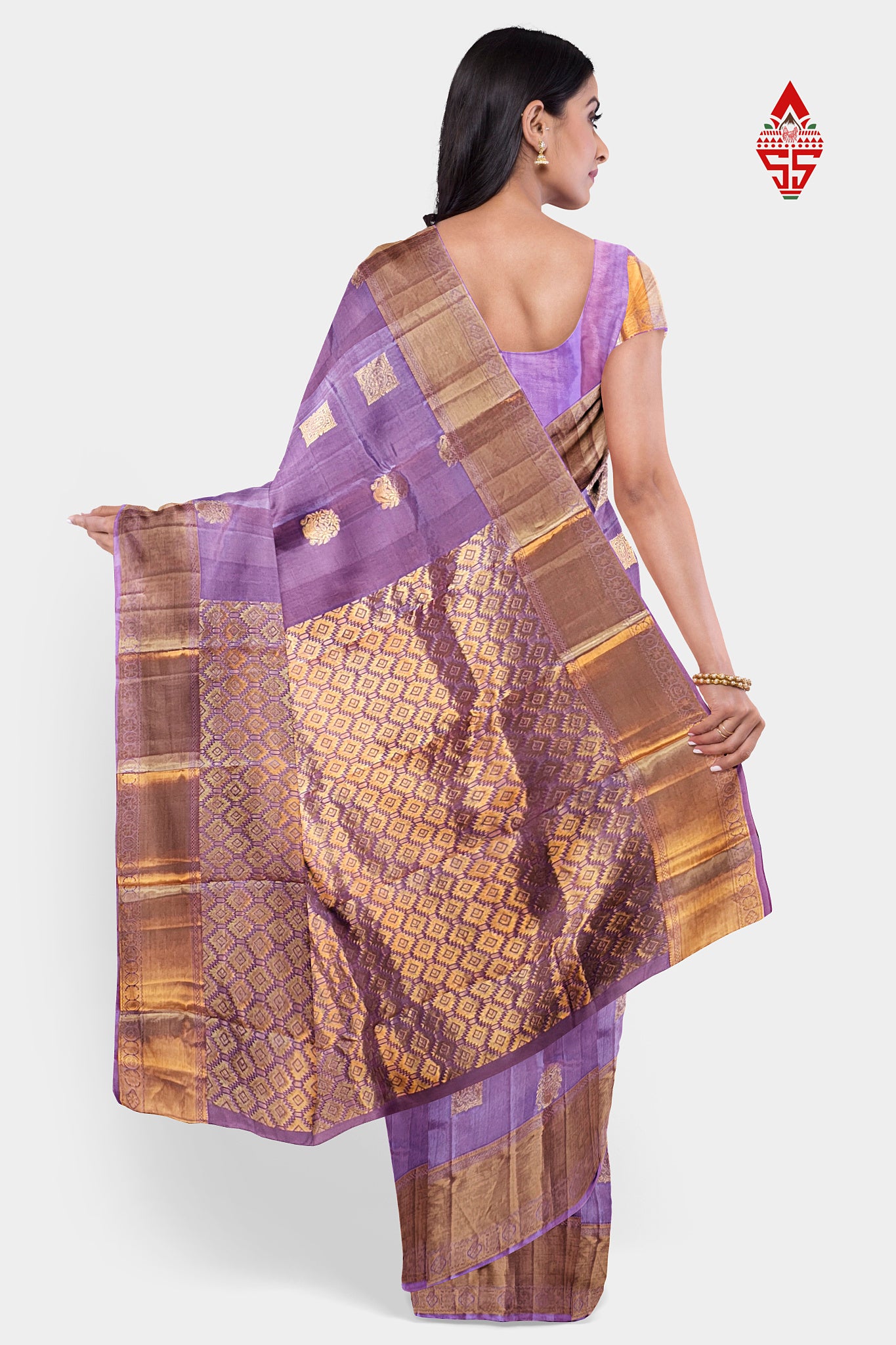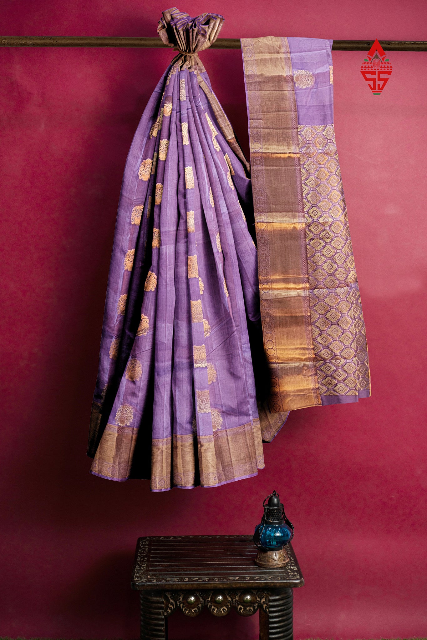 Salammal is known for its handloom sarees. In some sarees, there is cross-weaving between the body and the pallu, which is a sign of pure handloom sarees. This can be seen in Kanchipuram embossed sarees.