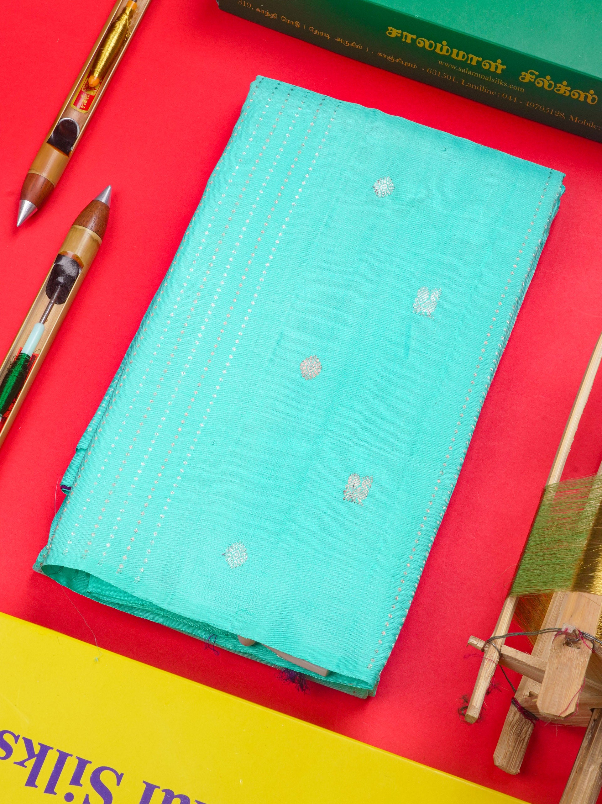Salammal is known for its handloom sarees. In some sarees, there is cross-weaving between the body and the pallu, which is a sign of pure handloom sarees. This can be seen in Kanchipuram embossed sarees.