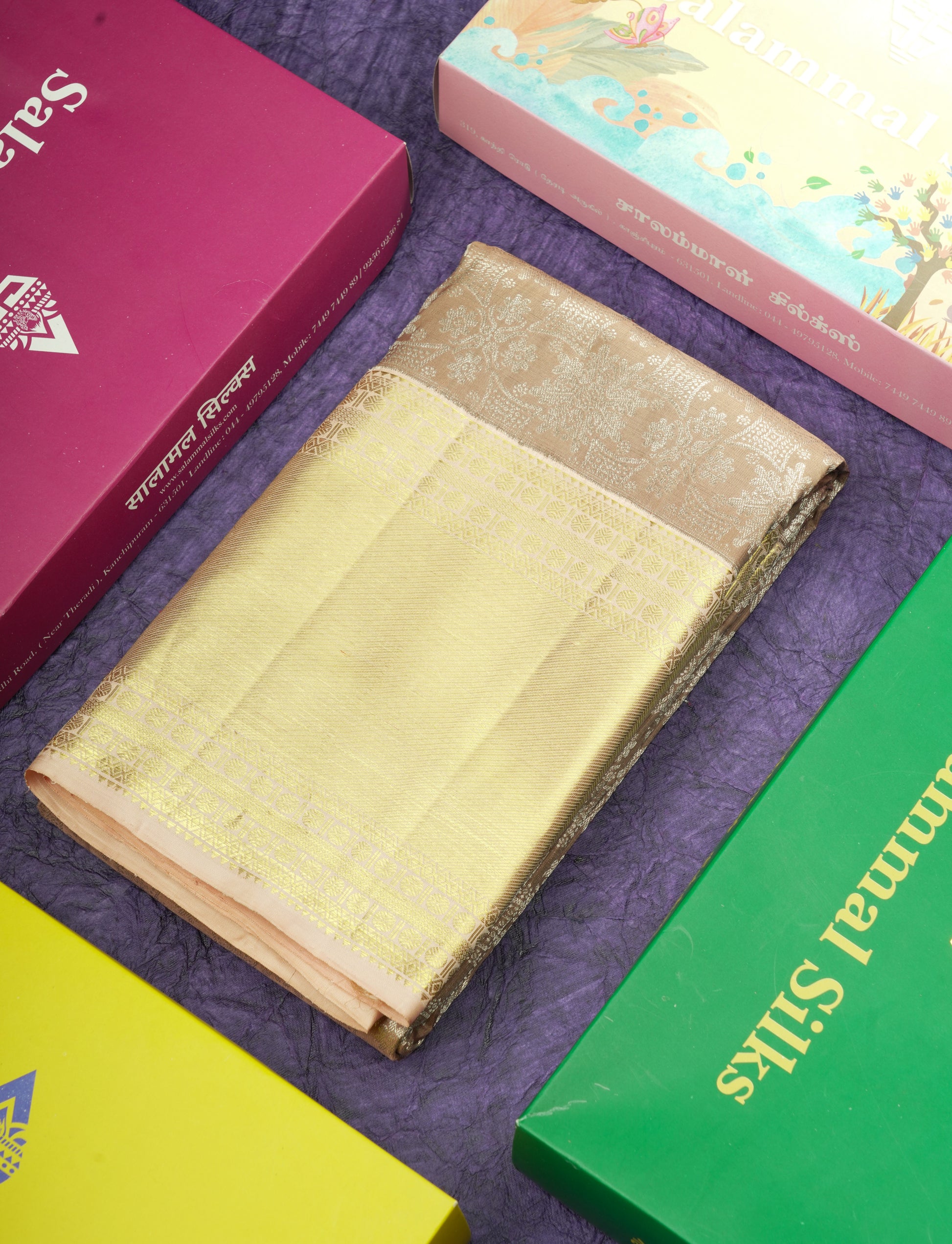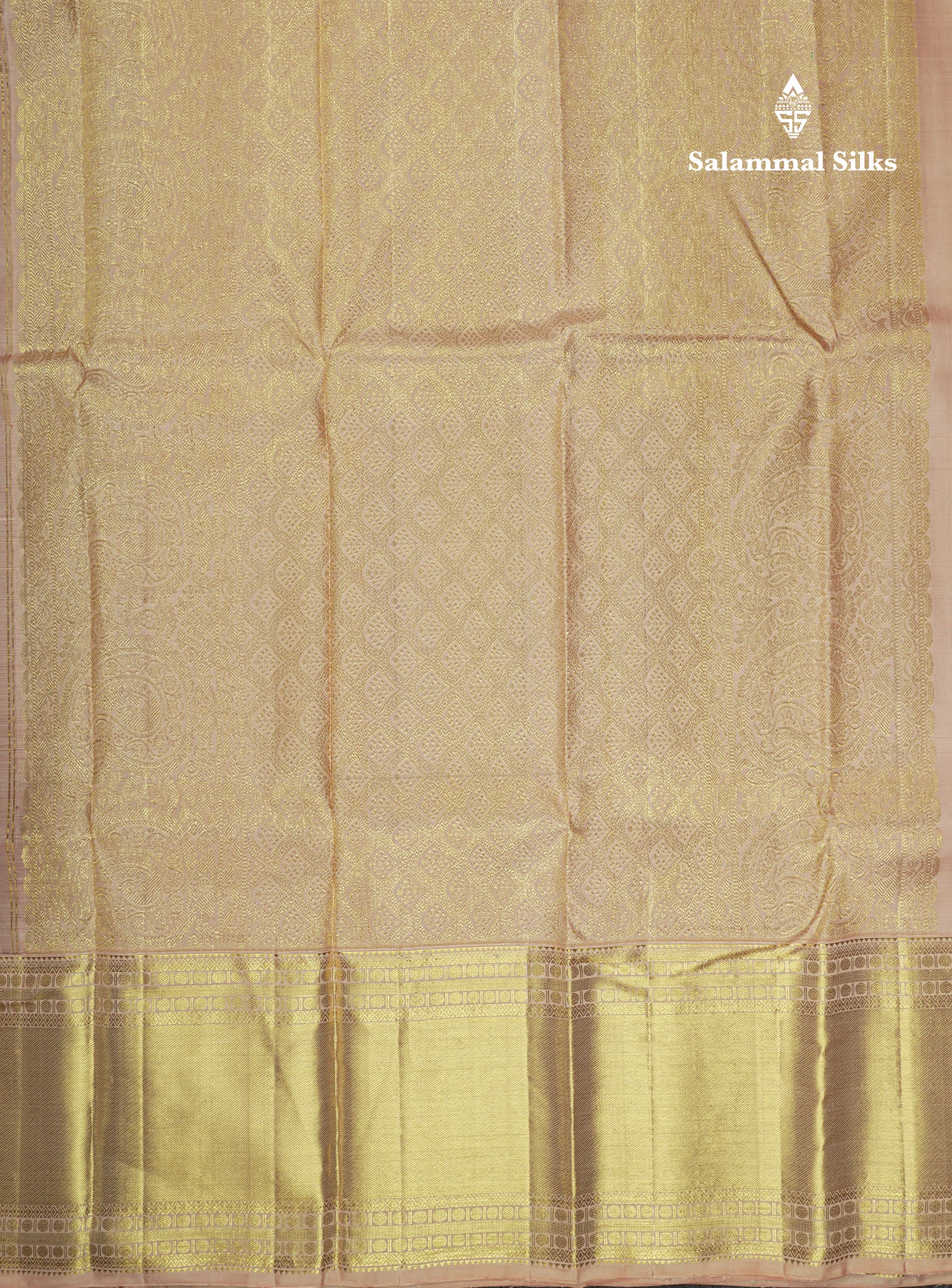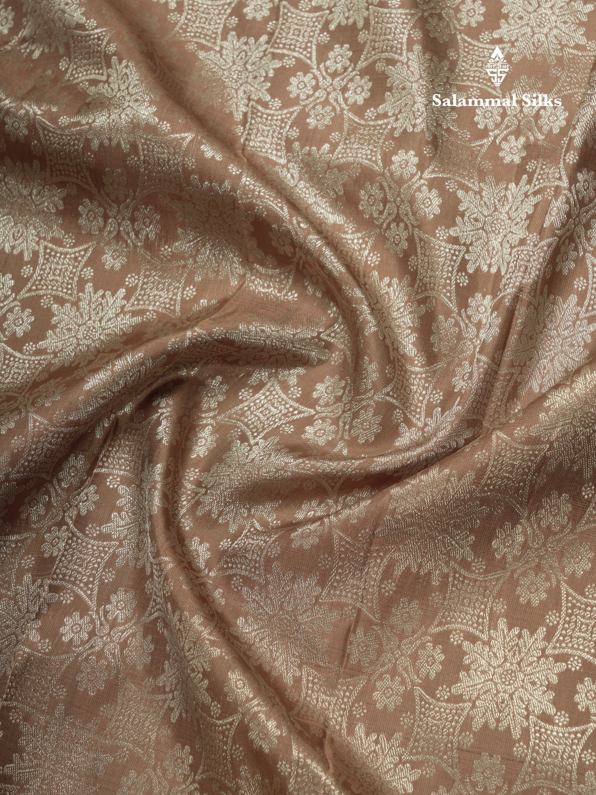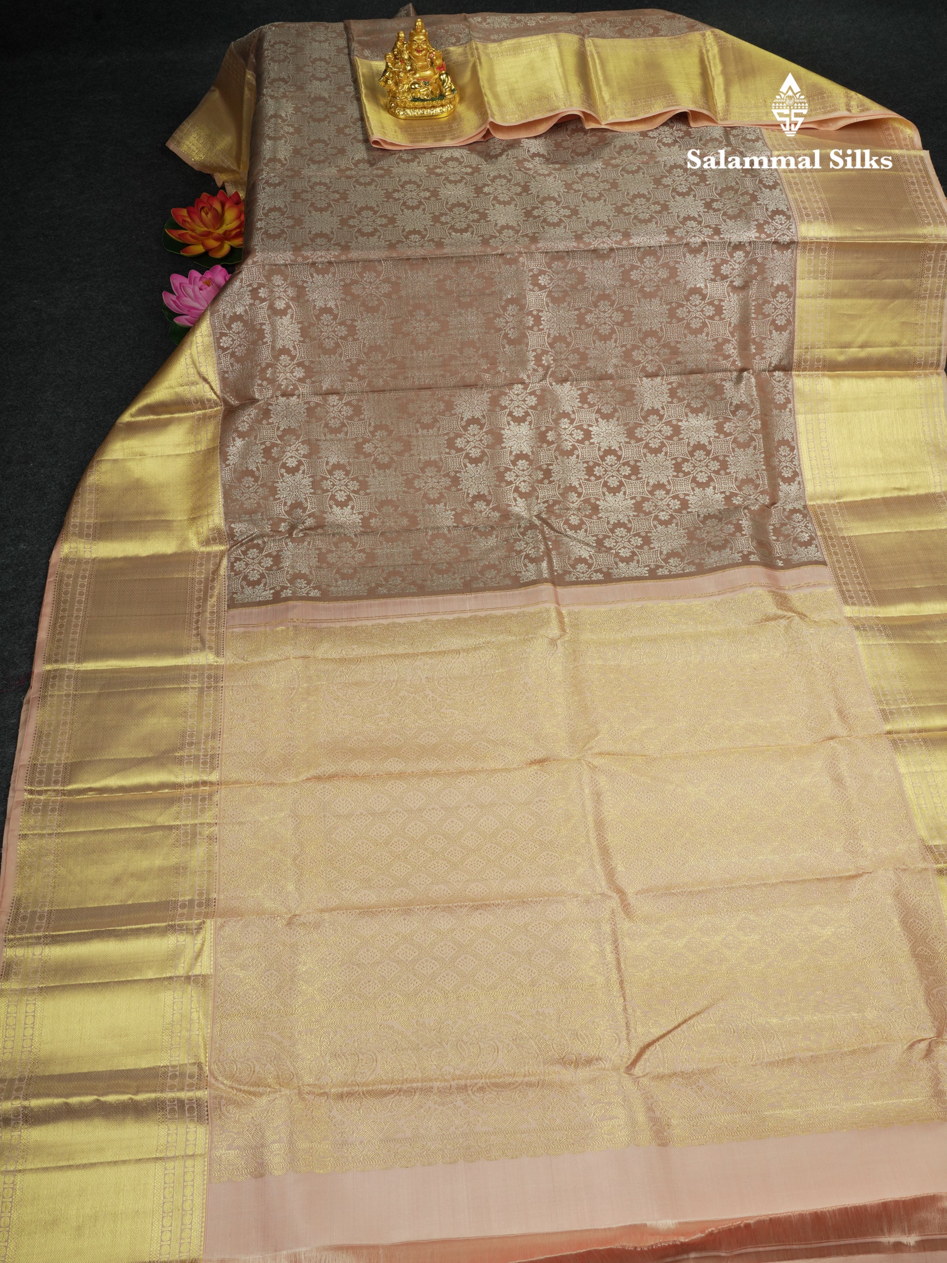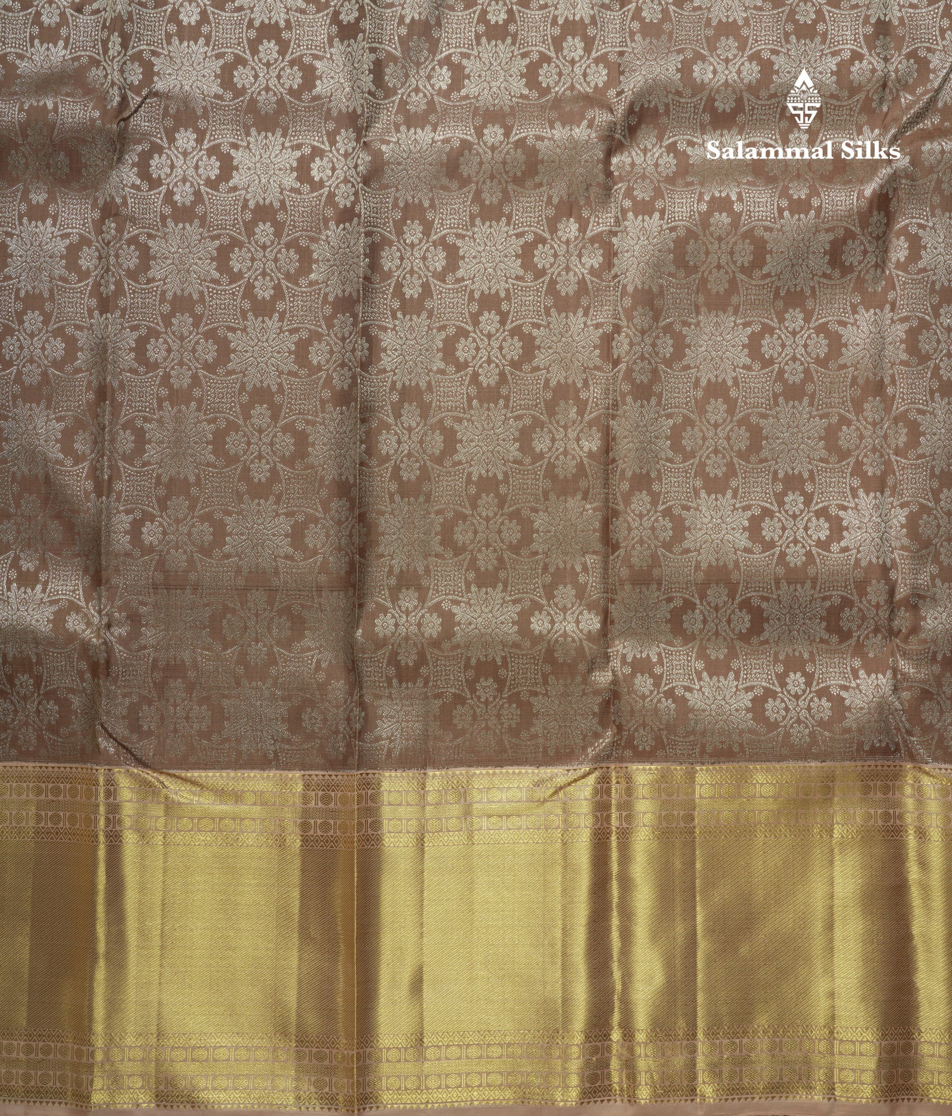 Kanjivaram Light Chocolet Pure Silk Saree With Peach Long Border