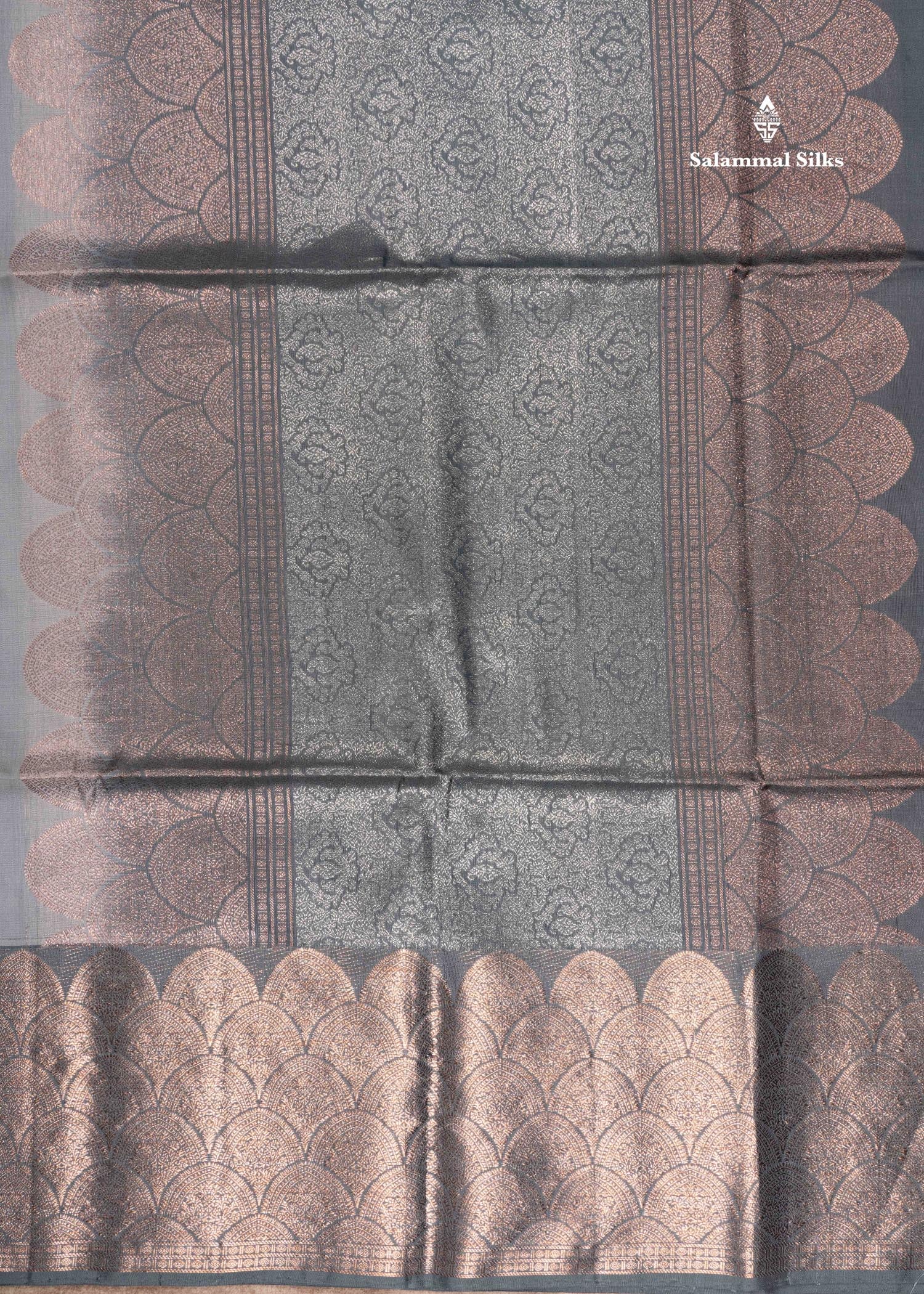 Pure Kanjivaram Light Grey Colour Soft Silk Saree With Copper Zari Border