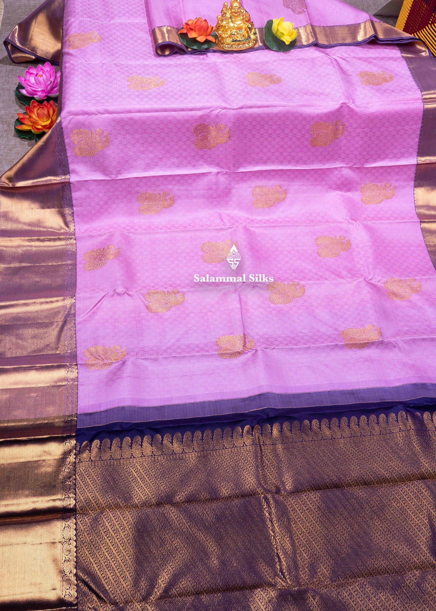 Kanjivaram Light Pink Pure Silk Saree With Nany Blue Blouse