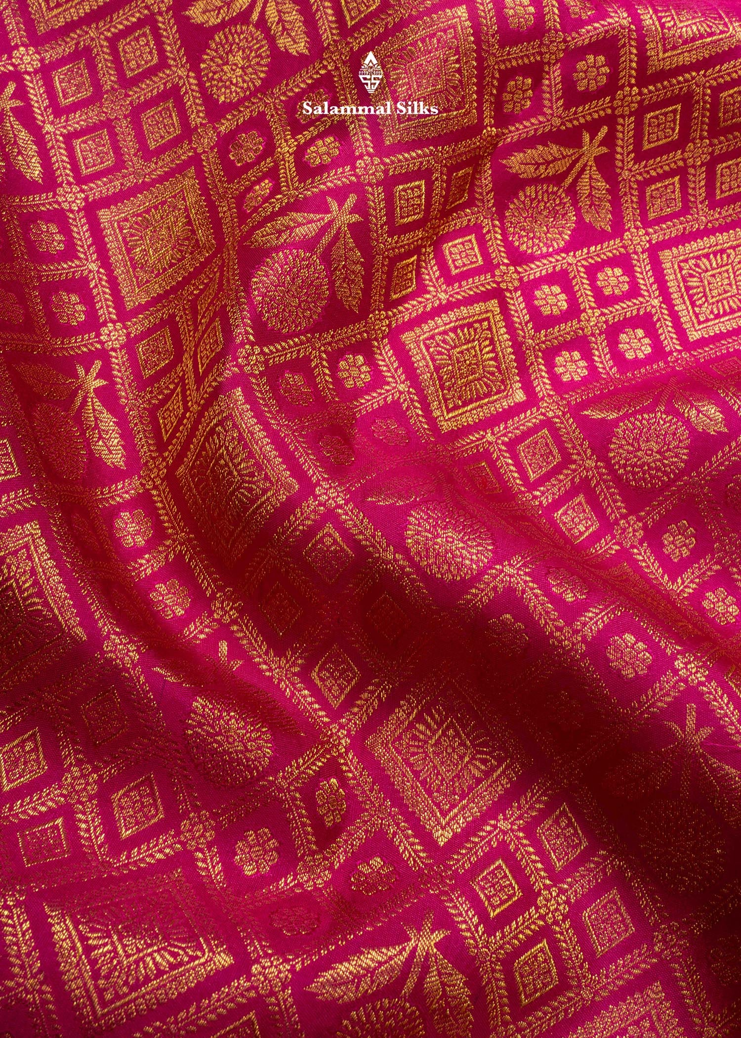 Pure Kanjivaram Magenta Pink Colour Silk Saree With Gold Zari Border