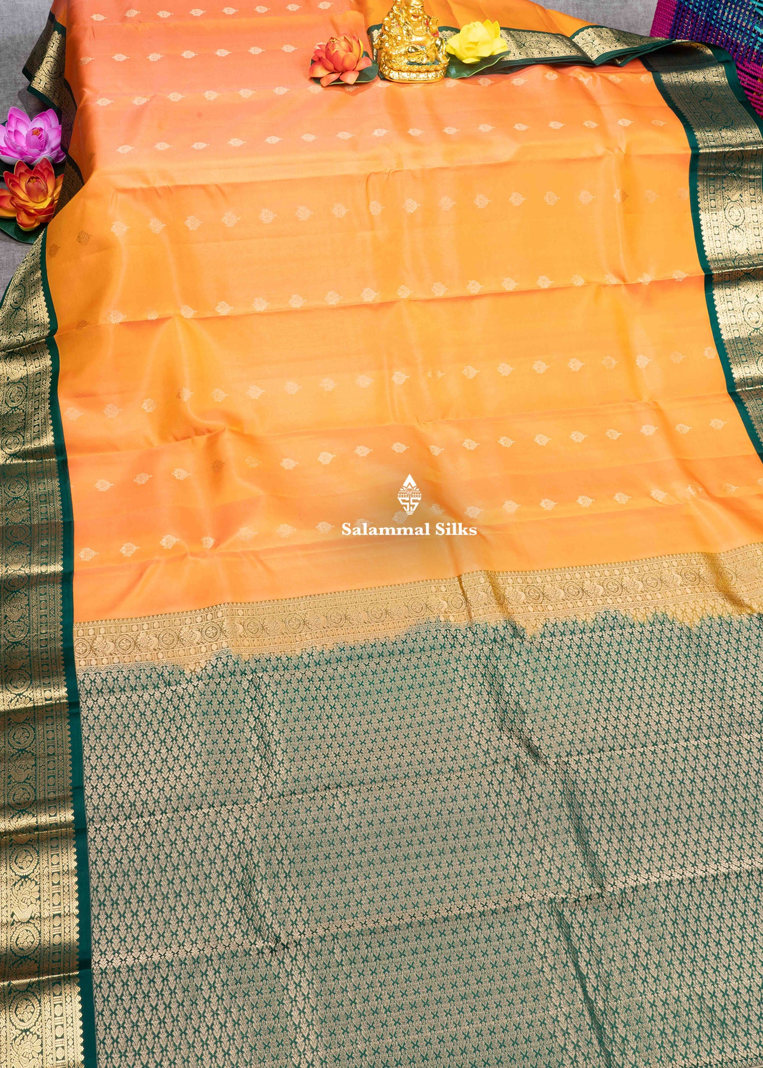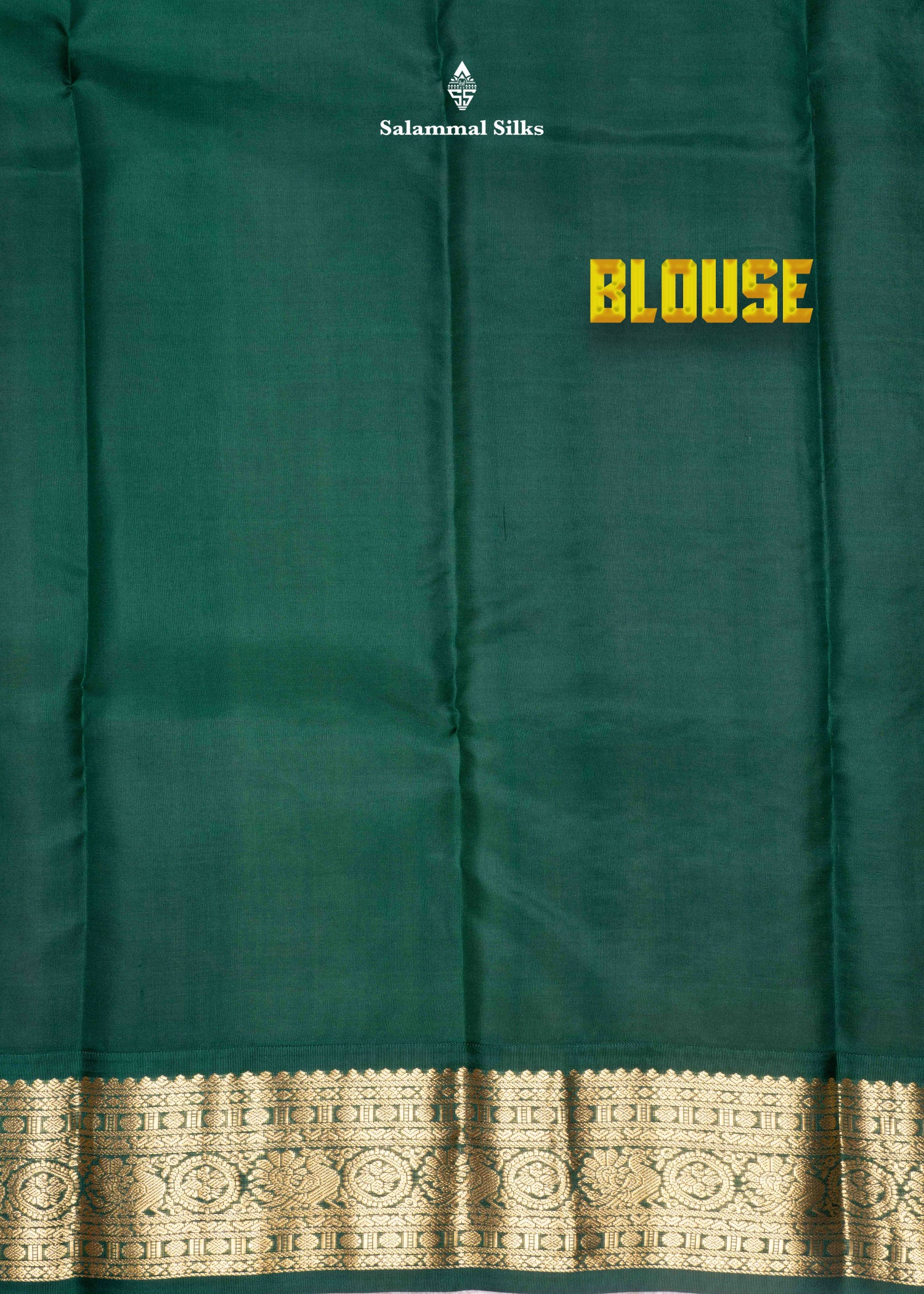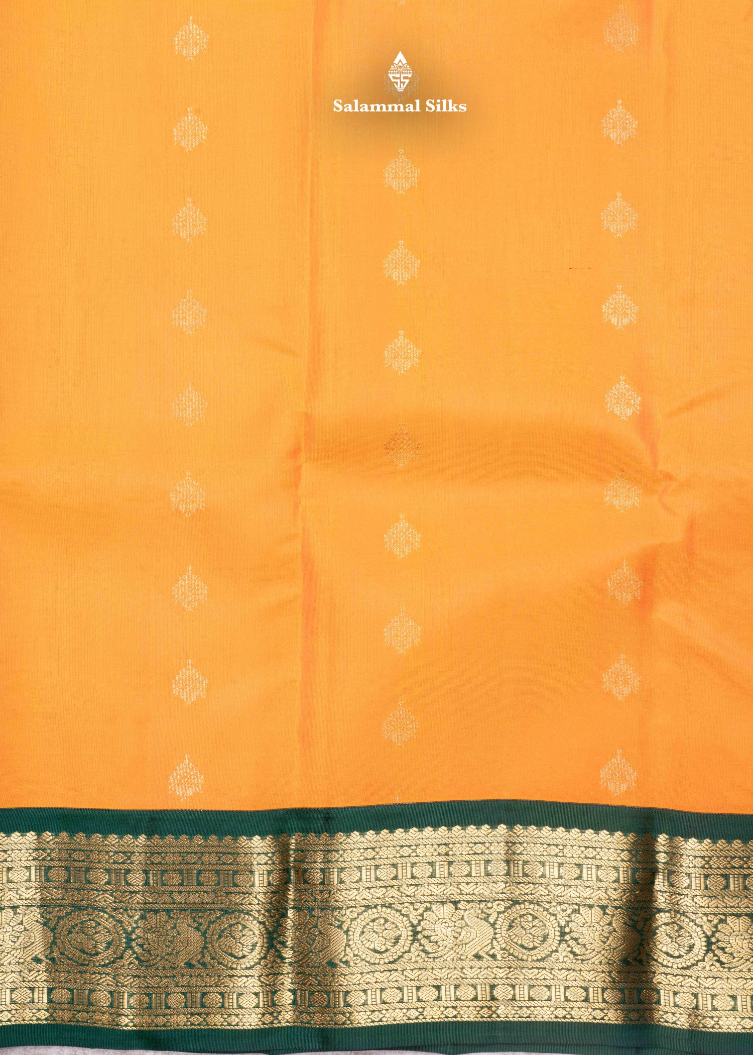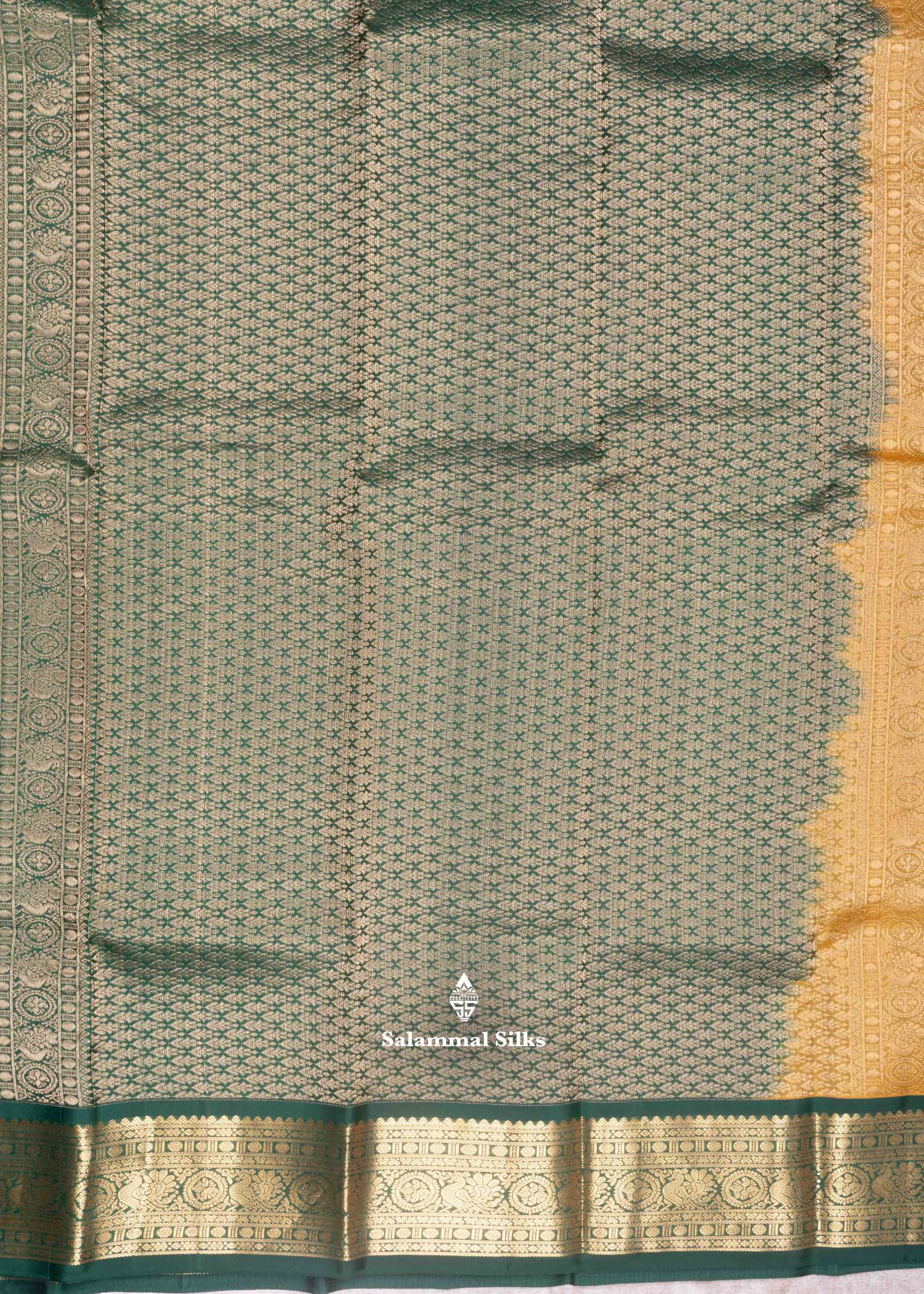 Kanjivaram Mango Yellow Pure Silk Saree With Bottle Green Blouse