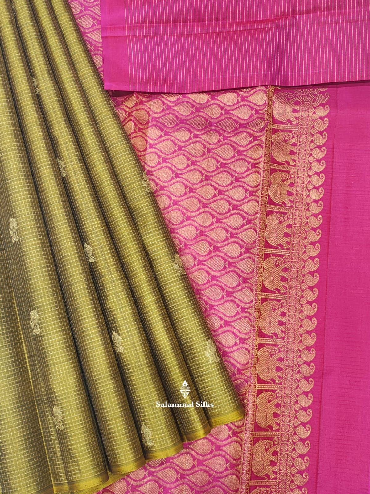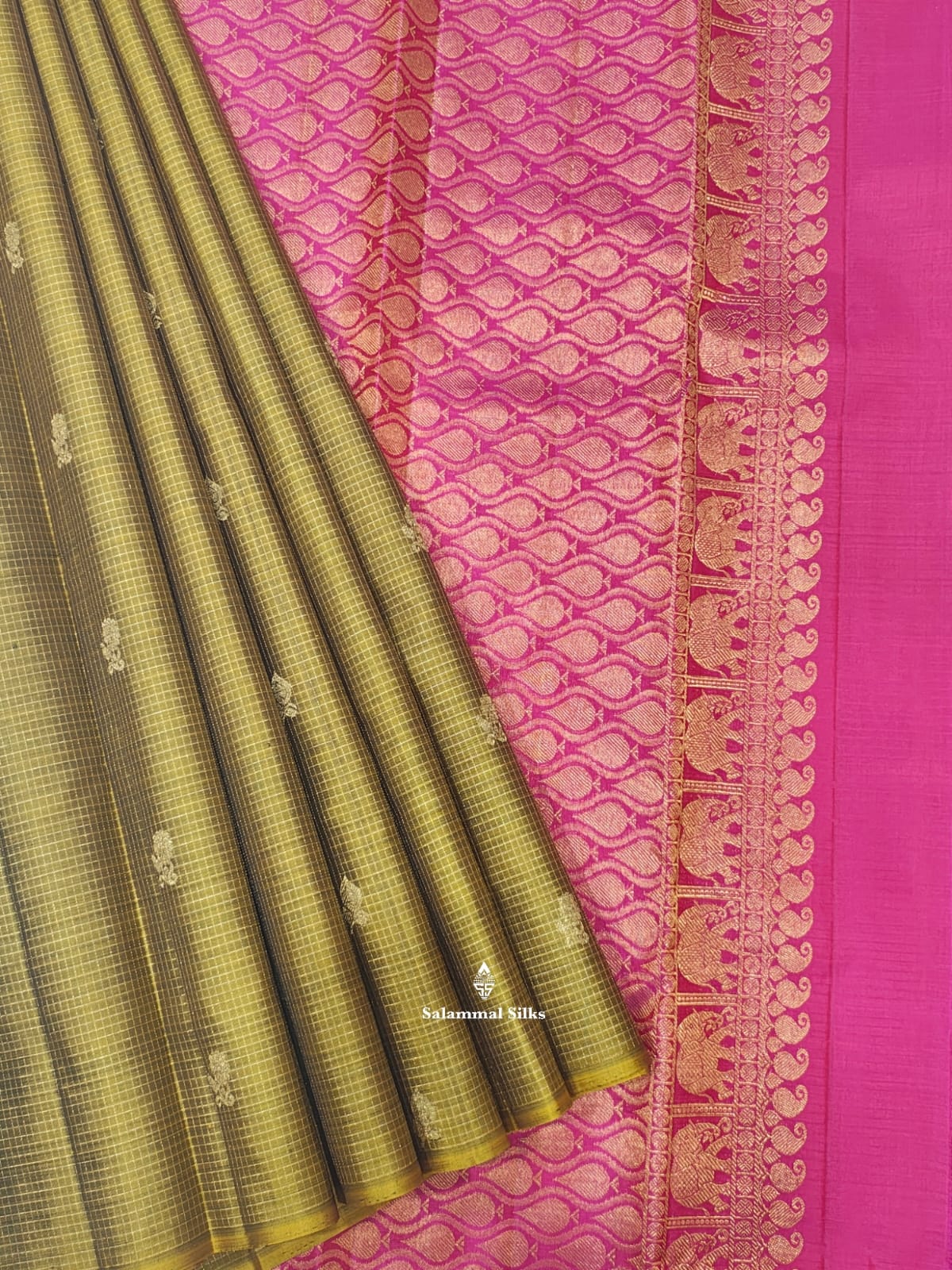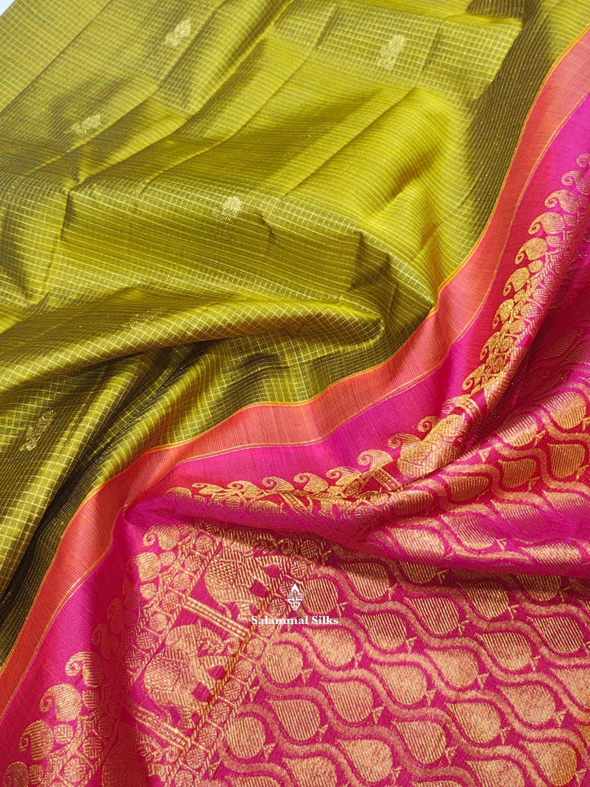 Kanjivaram Manthuli Green Checks Fancy Pure Silk Saree Without Border