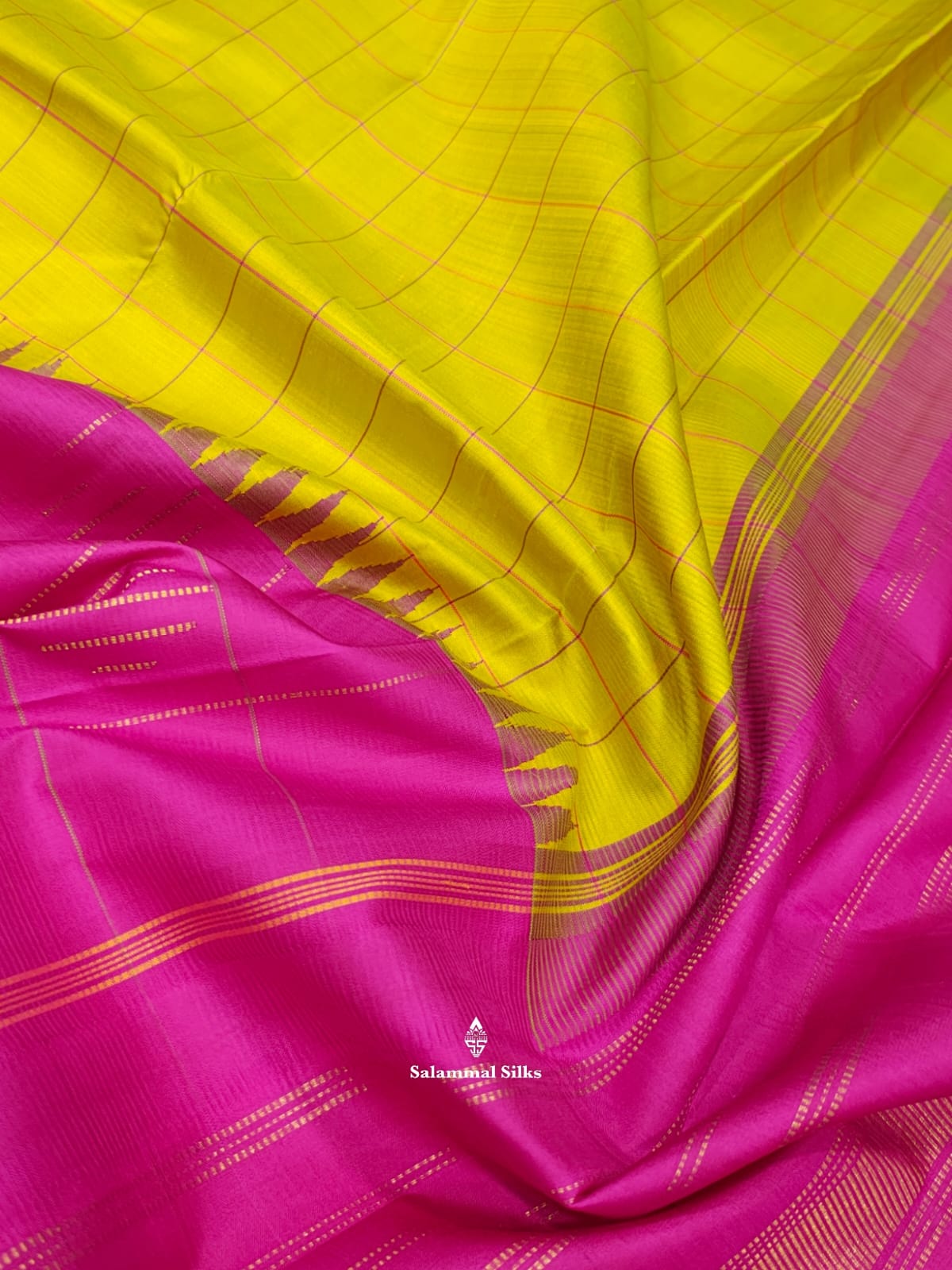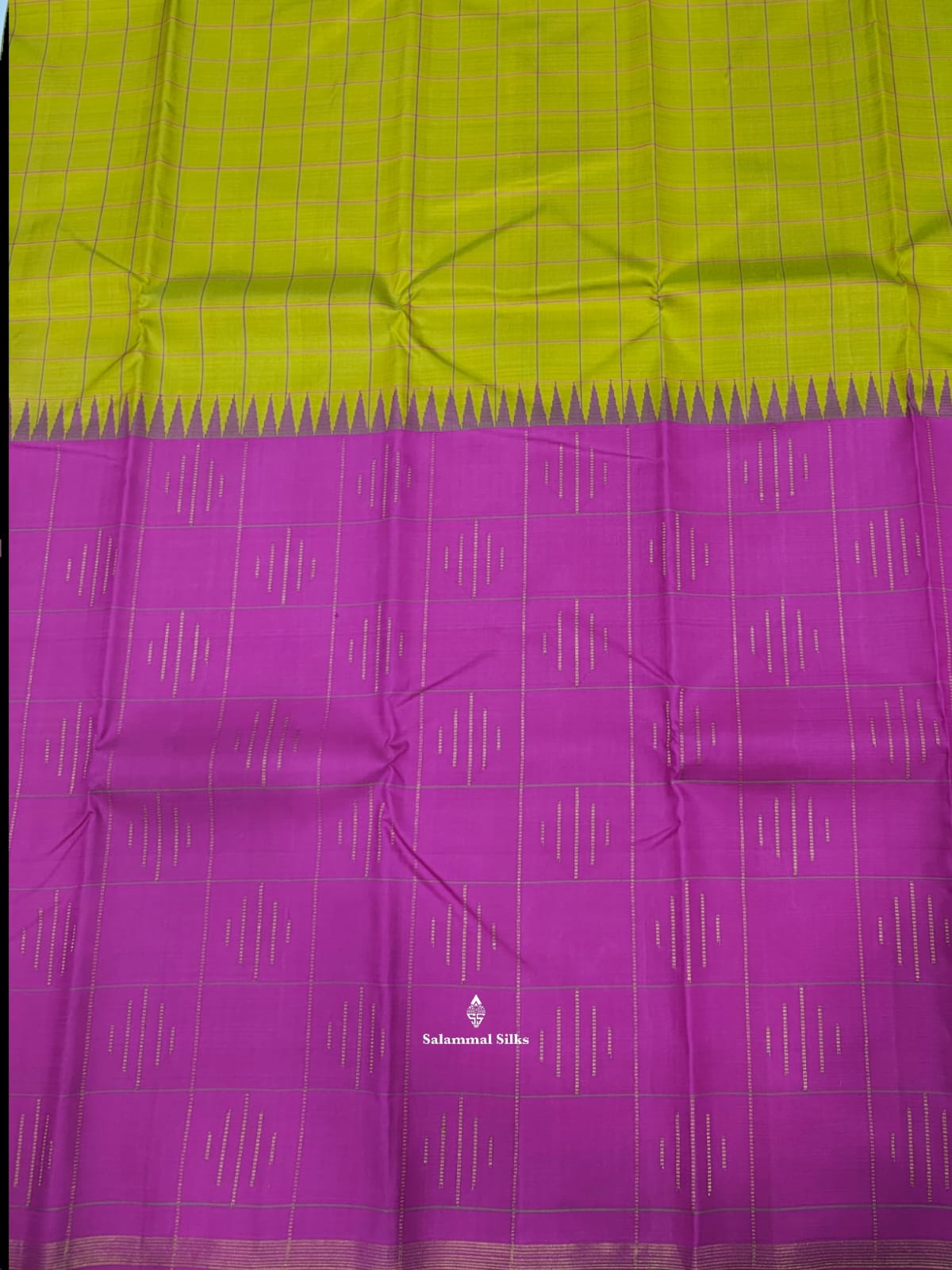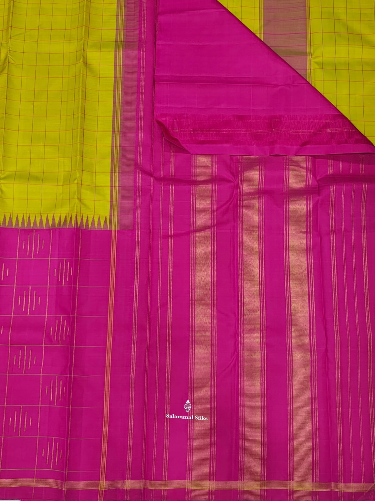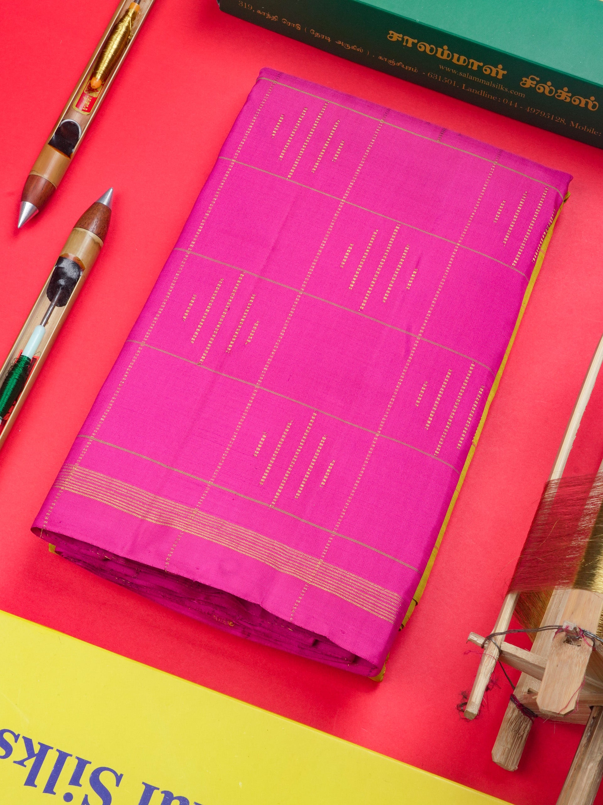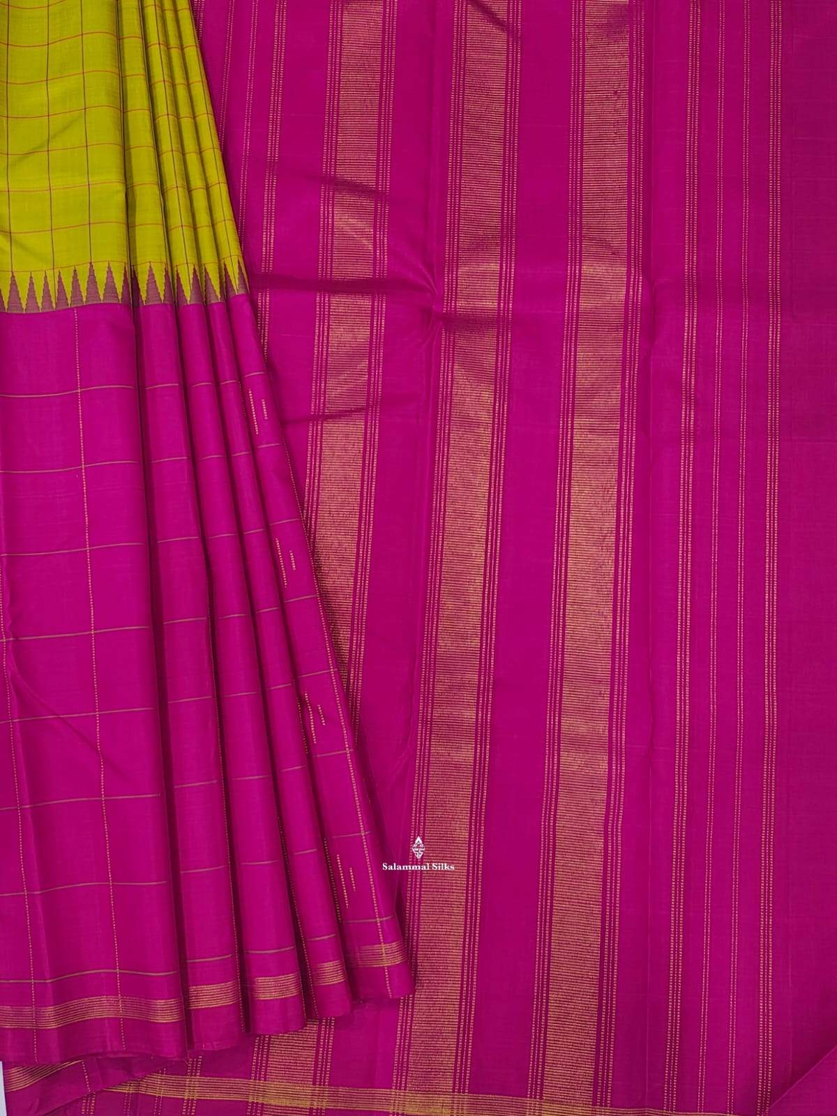 Kanjivaram Manthuli Green Half And Half Pure Silk Saree With Magenta Blouse