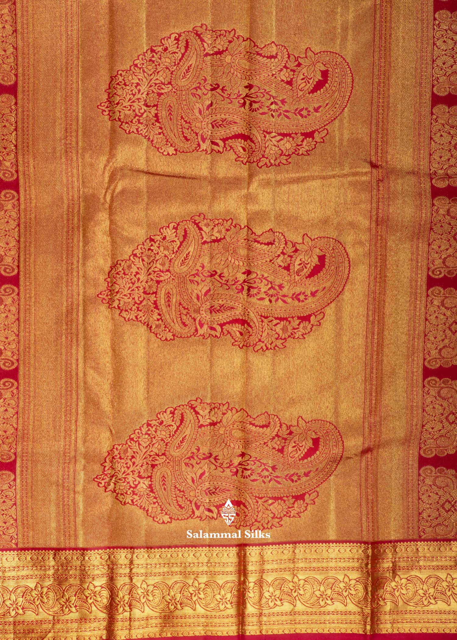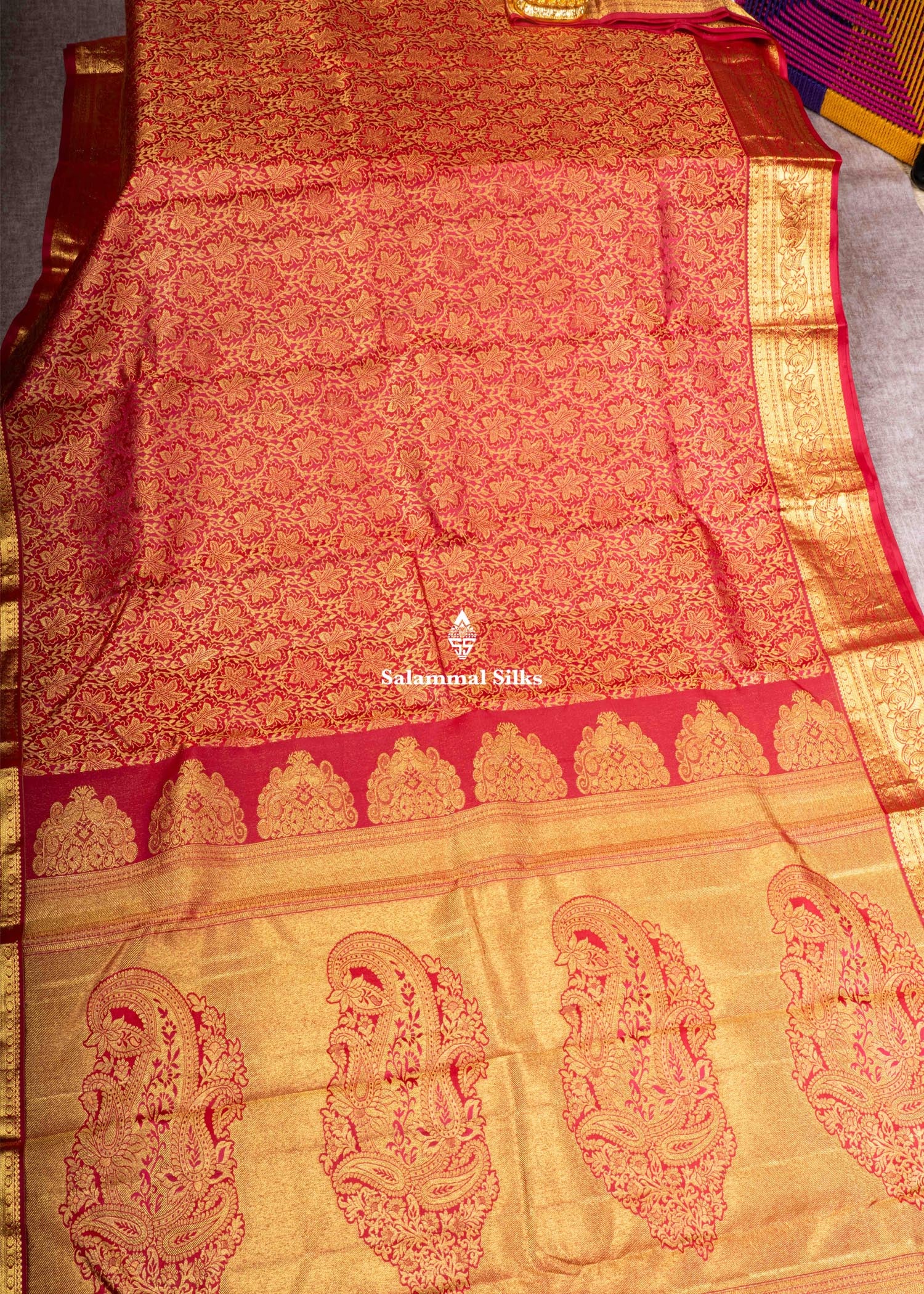 Pure Kanjivaram Red Silk Saree With Gold Zari Border