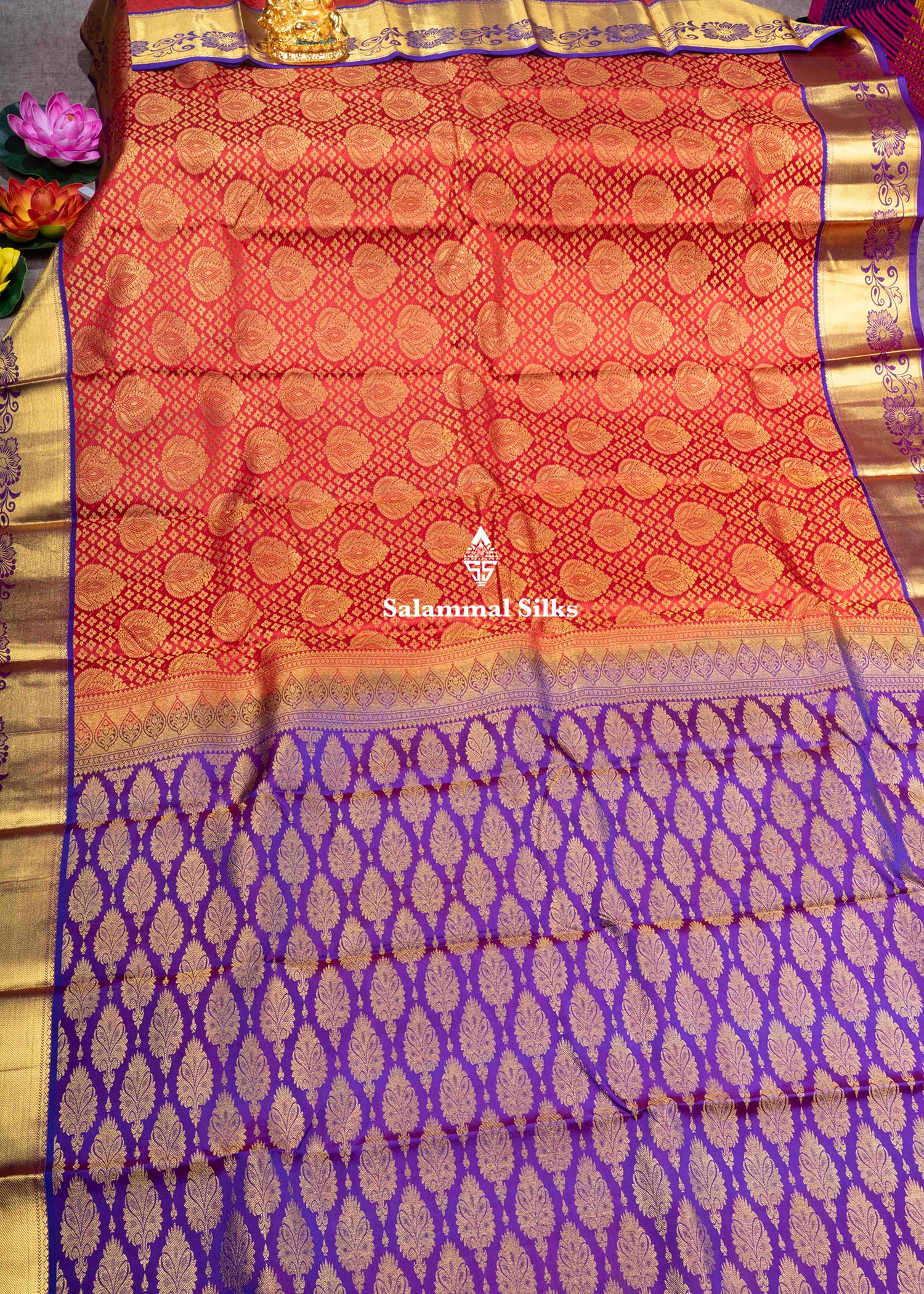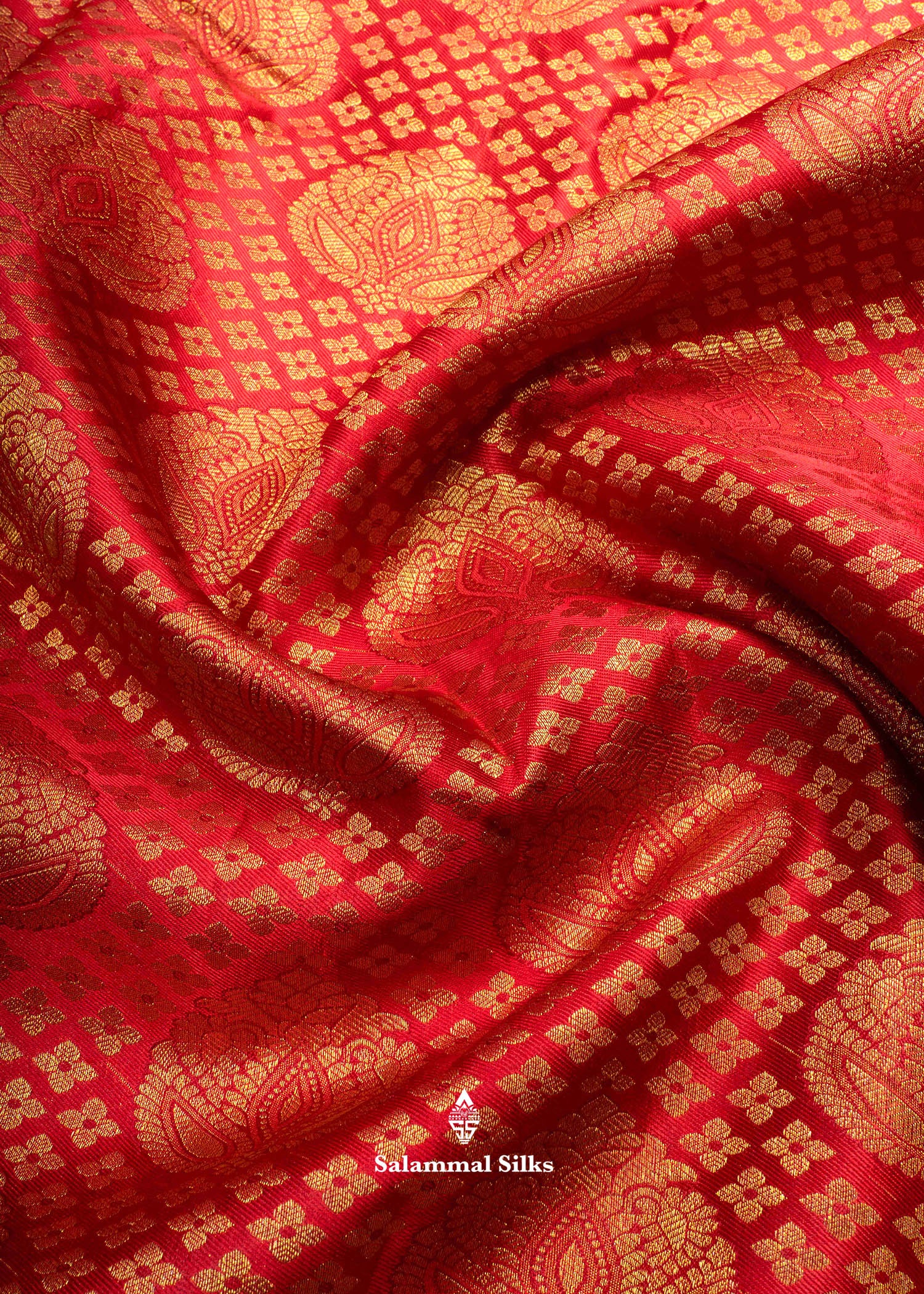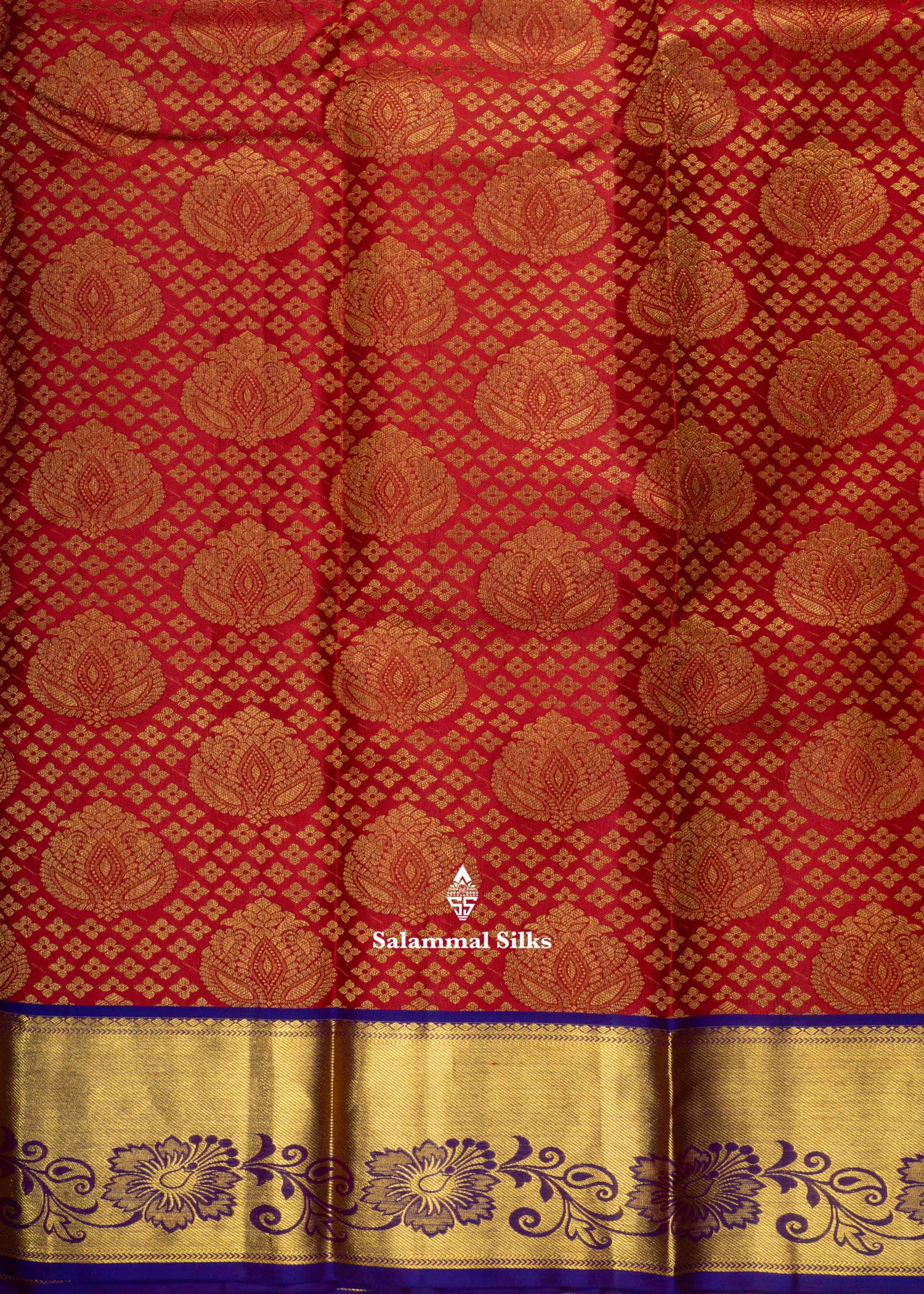 Salammal is known for its handloom sarees. In some sarees, there is cross-weaving between the body and the pallu, which is a sign of pure handloom sarees. This can be seen in Kanchipuram embossed sarees.
