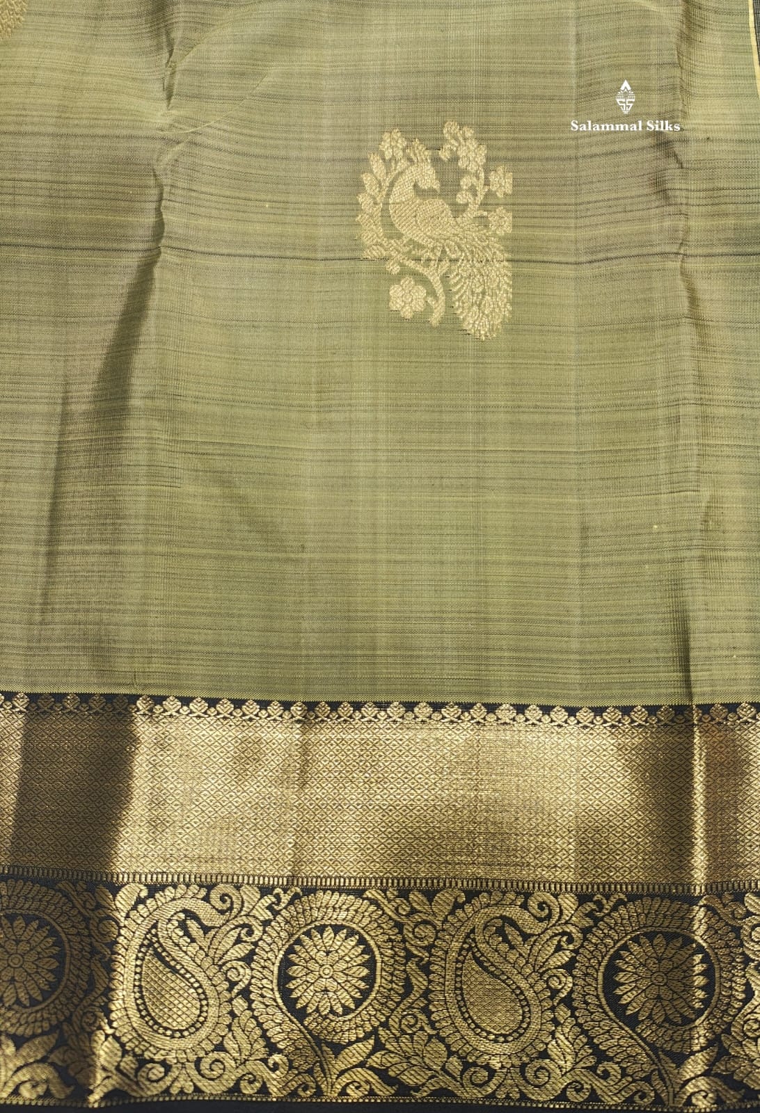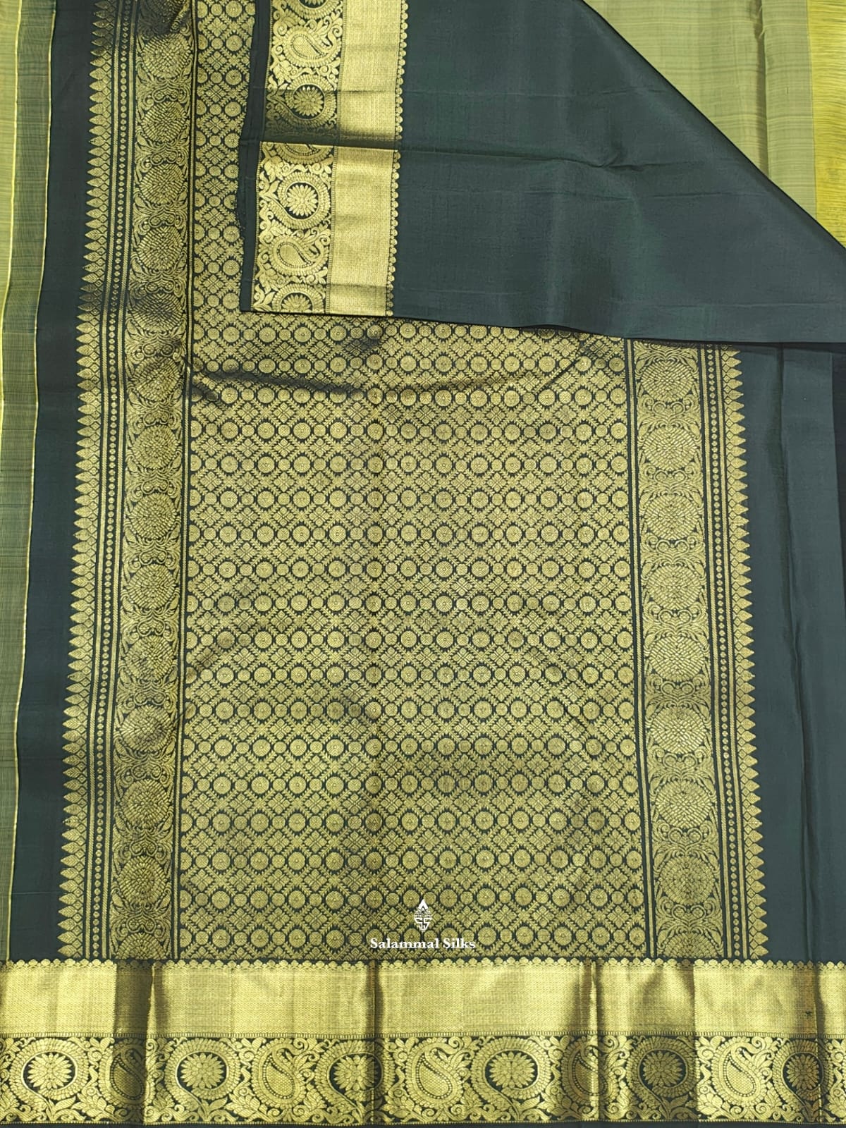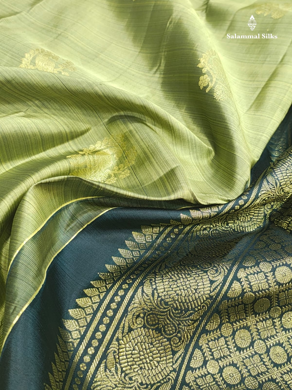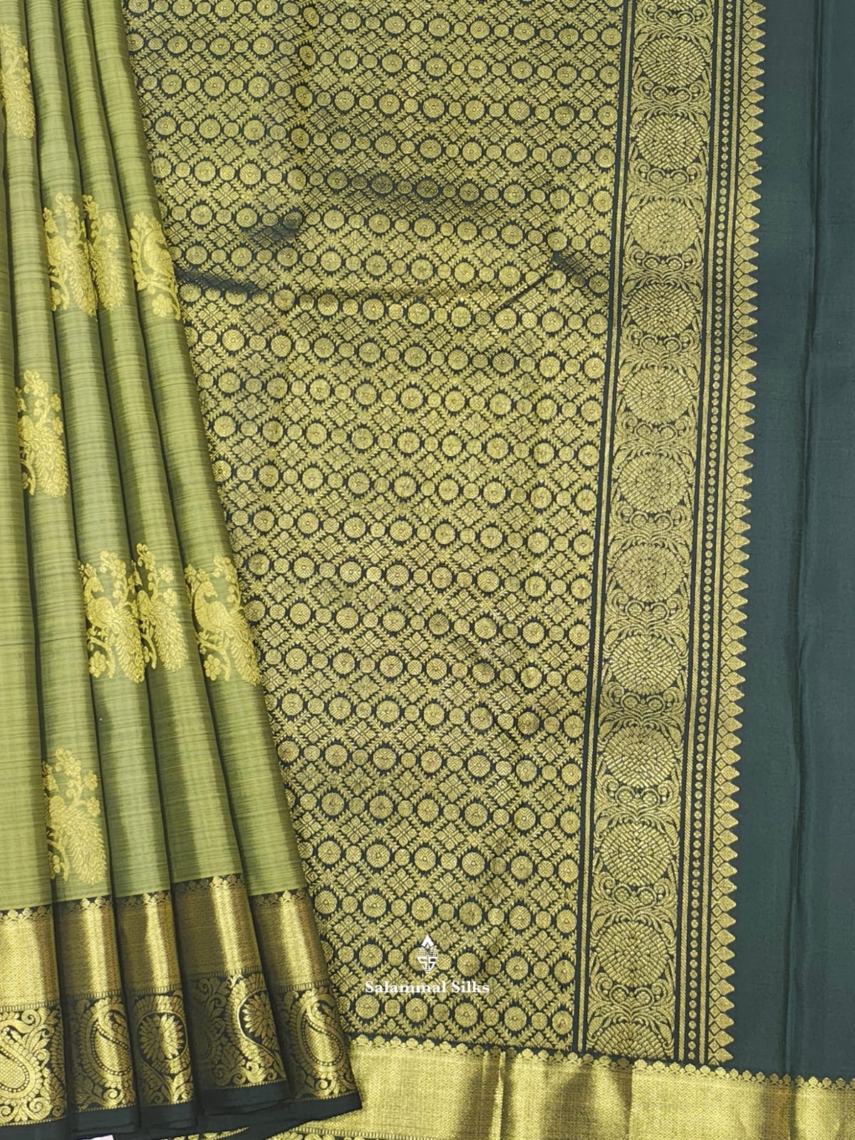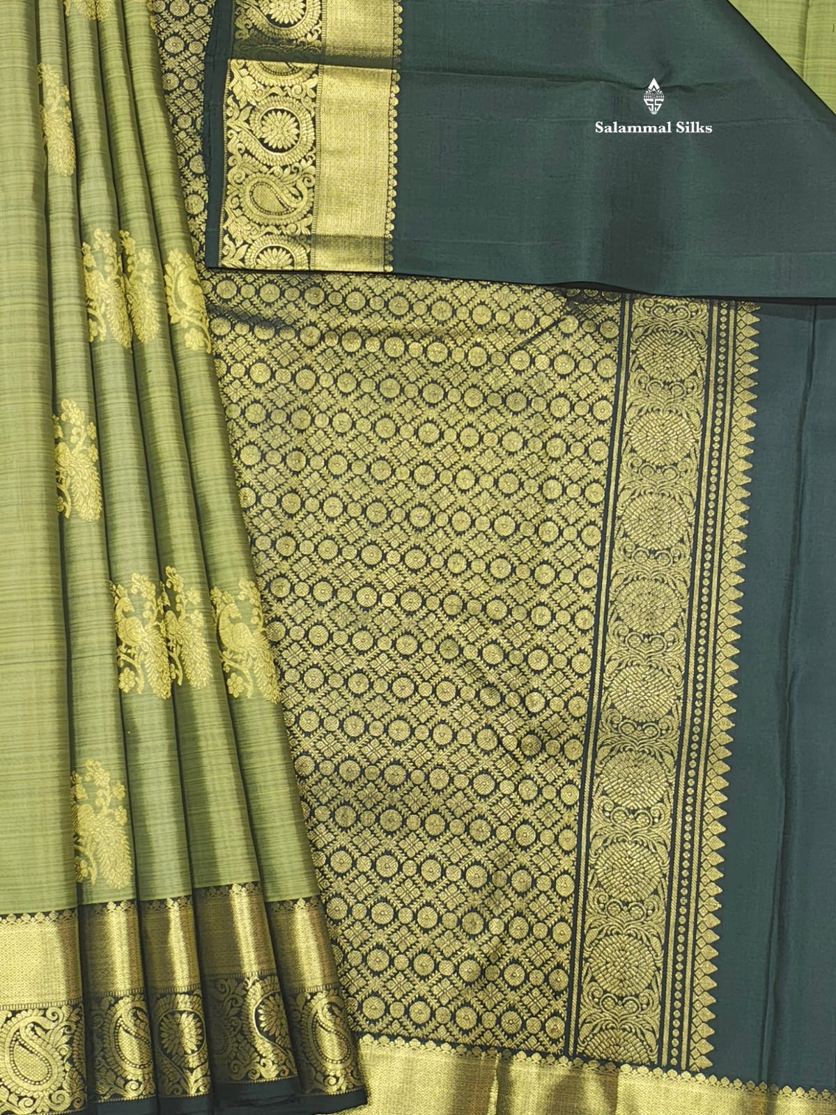 Kanjivaram Moss Green Pure Silk Saree With Bottle Green Border