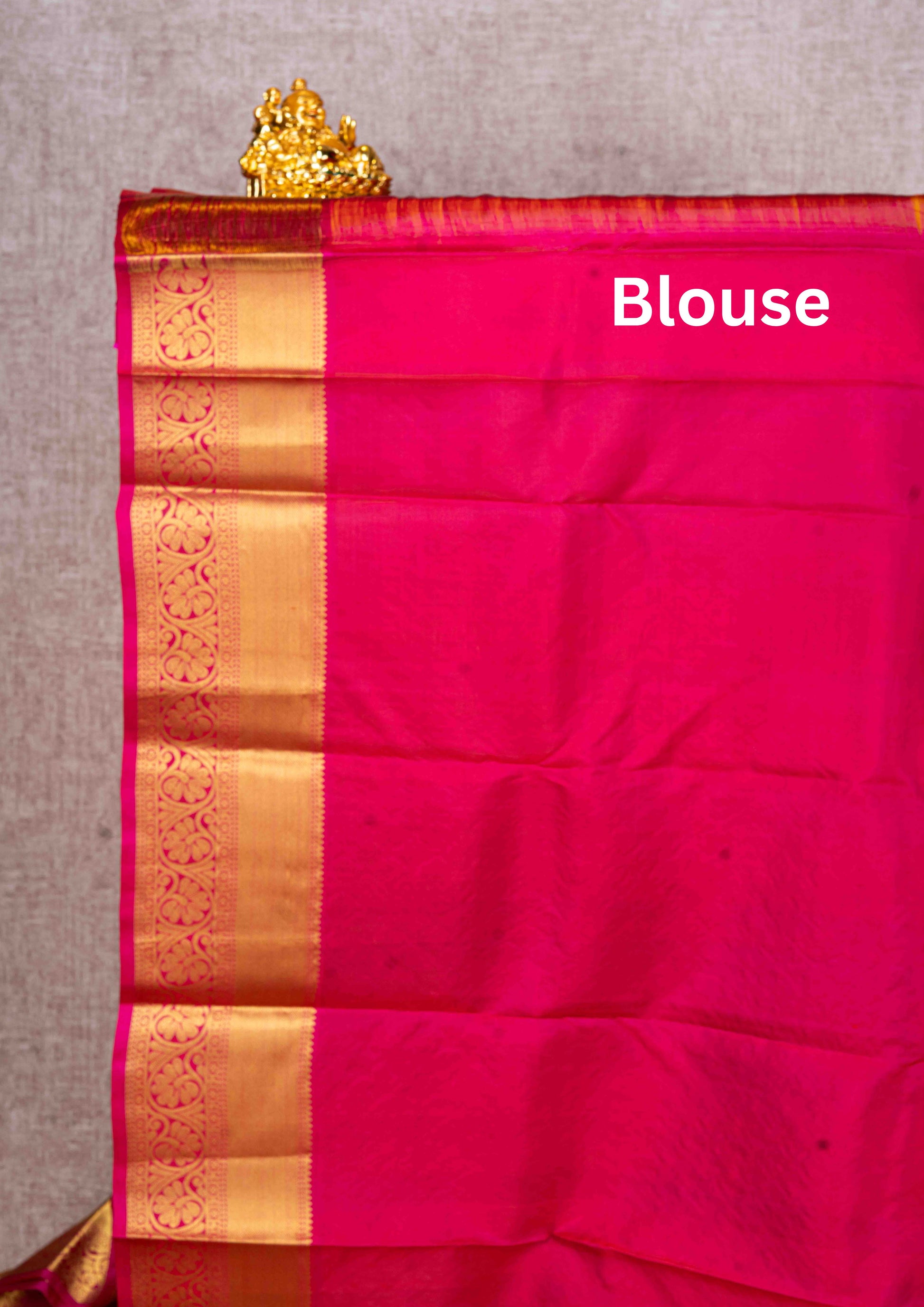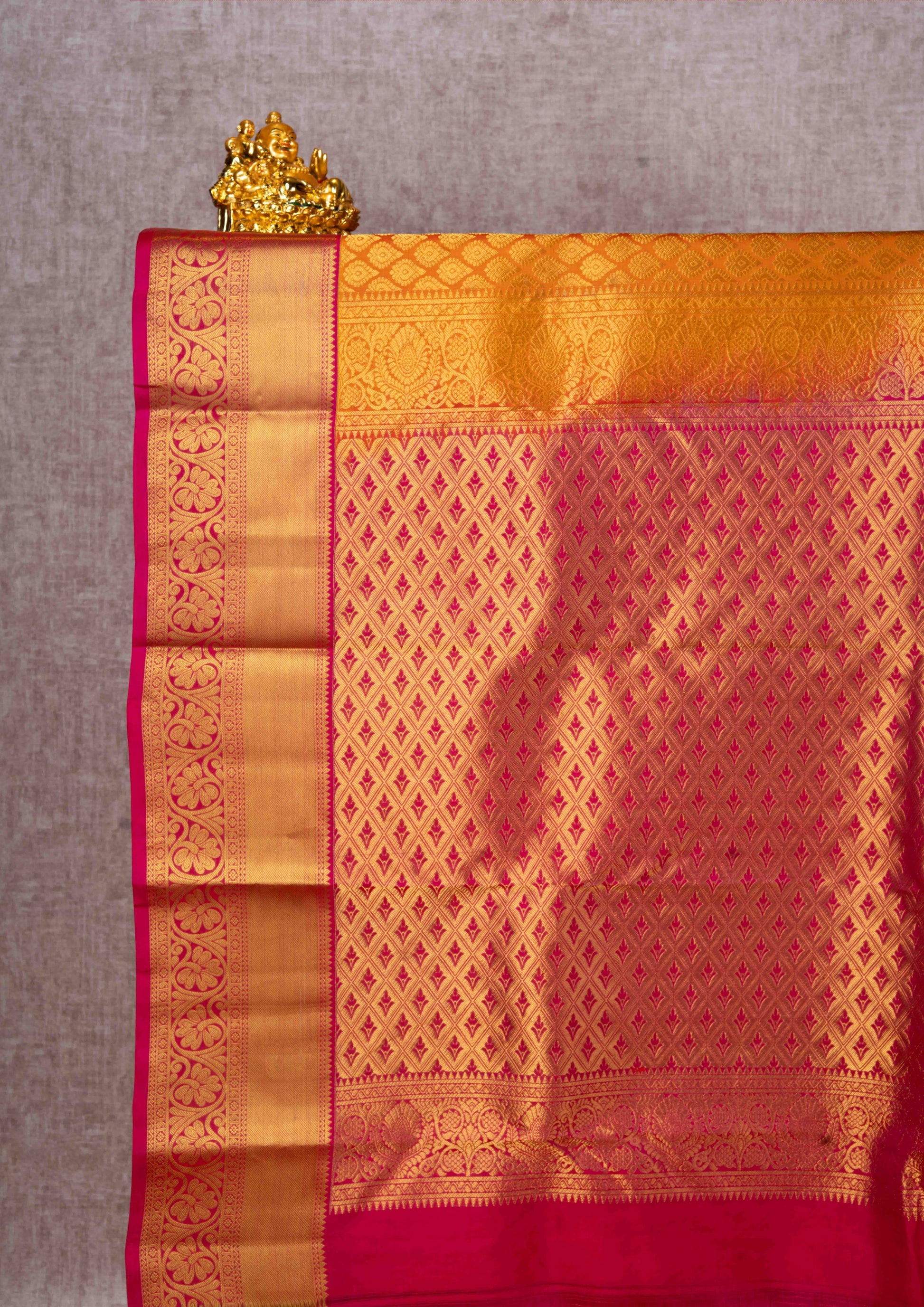 Kanjivaram Mustard Yellow Pure Silk Jacquard Saree With Pink Blouse