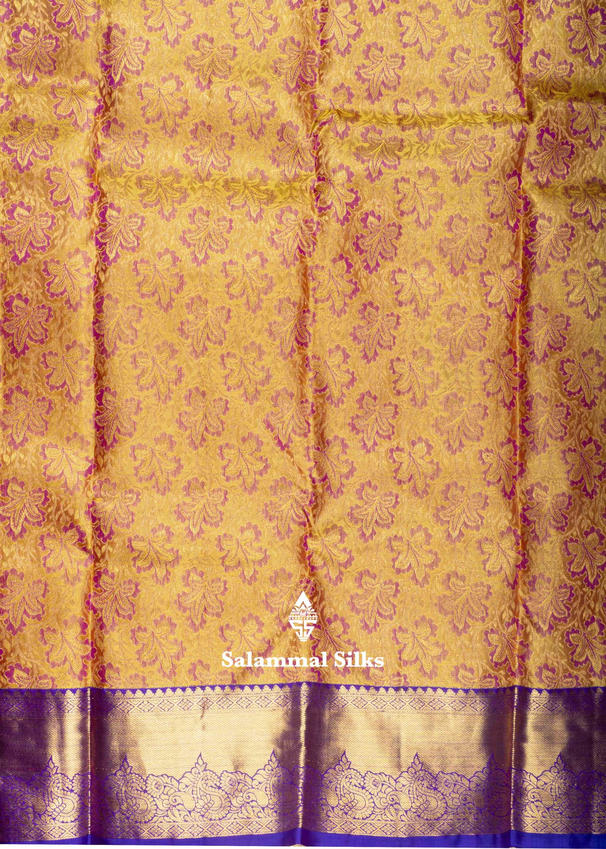 Kanjivaram Mustard Yellow Pure Silk Jacquard Saree With Violet Blouse