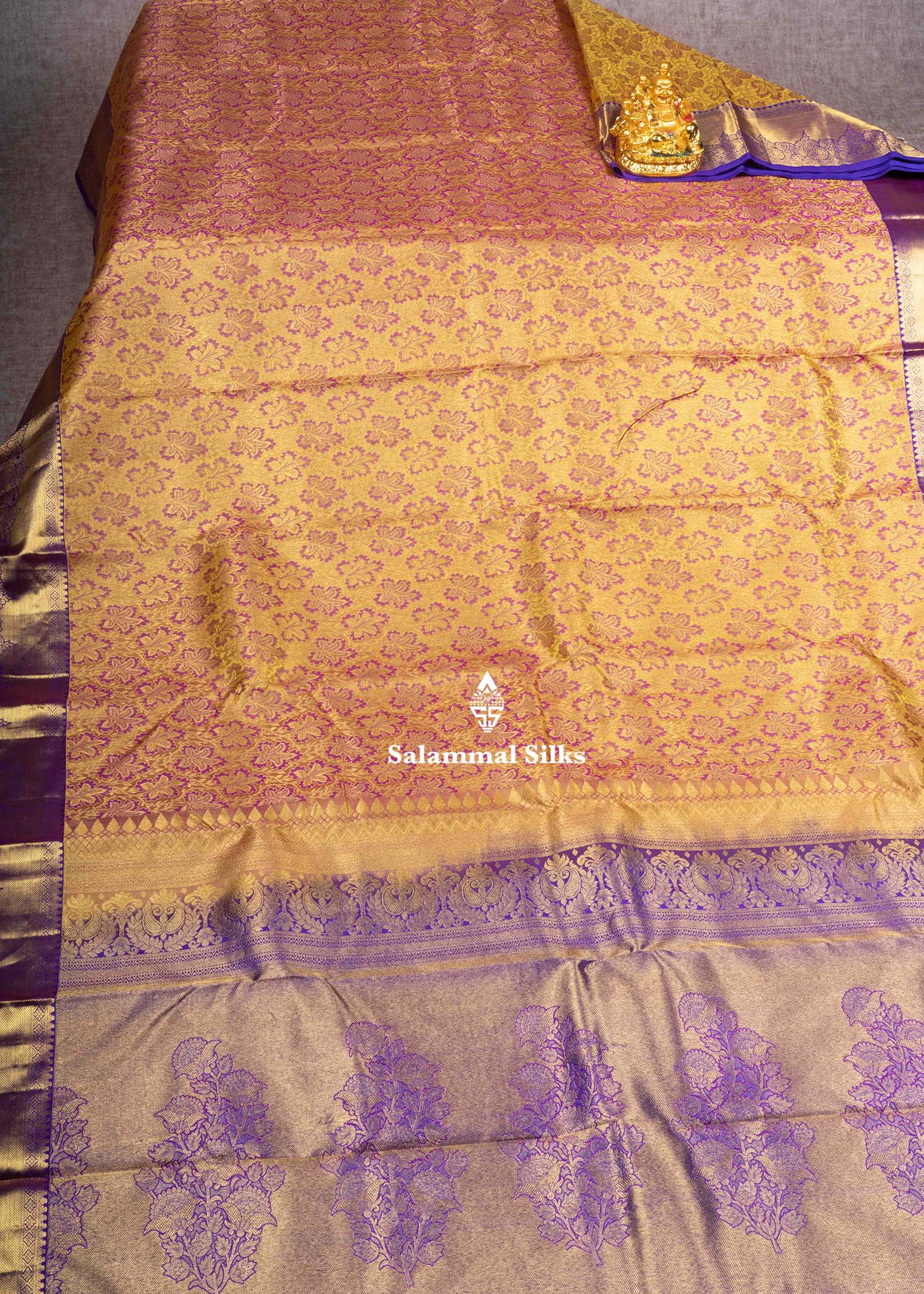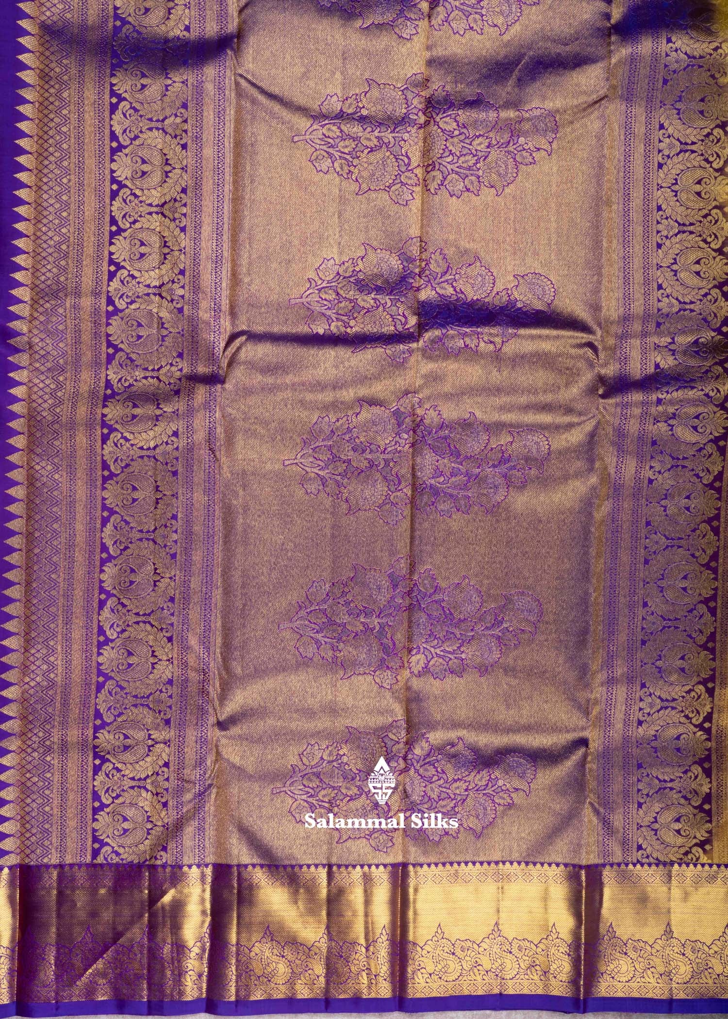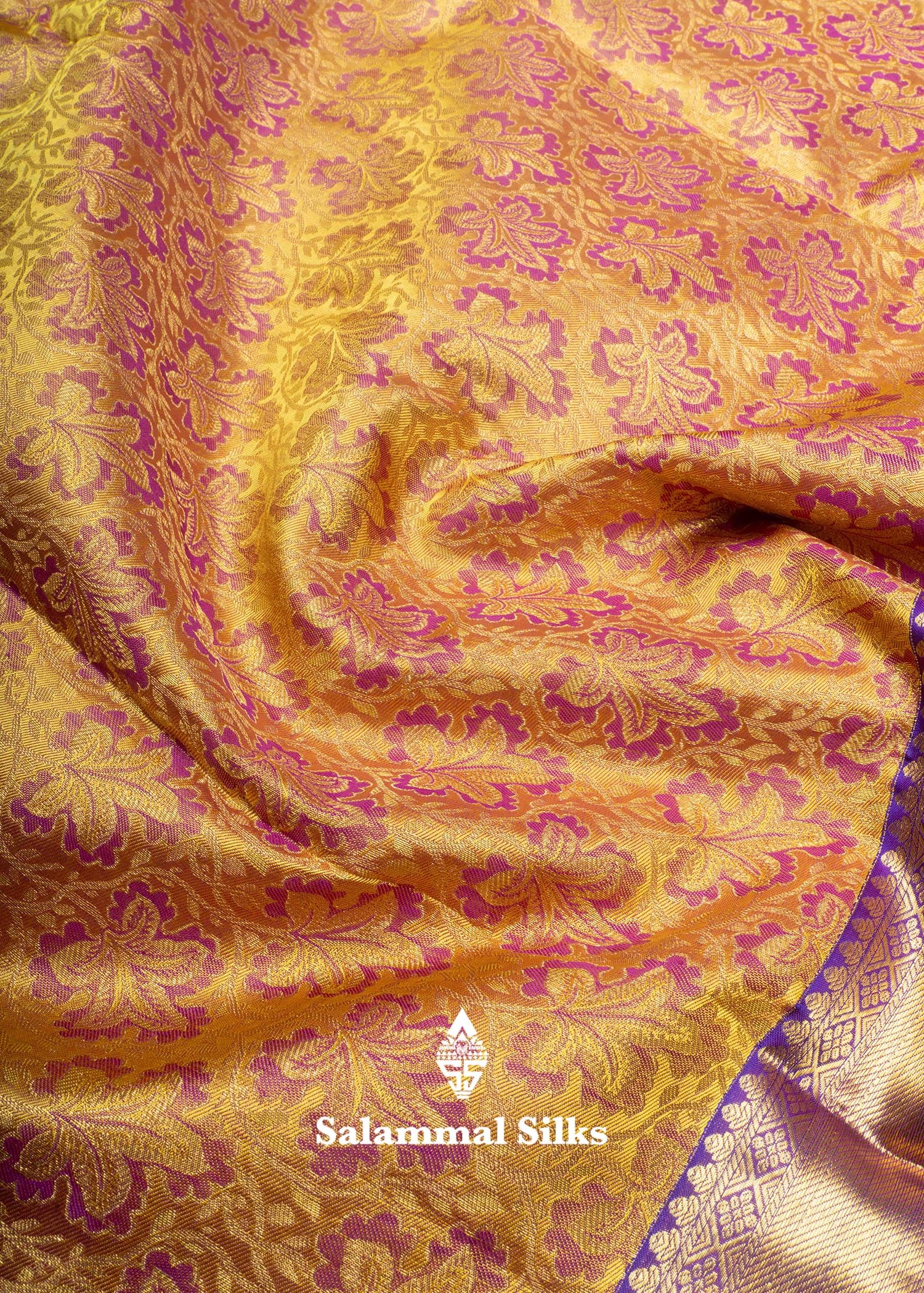 Salammal is known for its handloom sarees. In some sarees, there is cross-weaving between the body and the pallu, which is a sign of pure handloom sarees. This can be seen in Kanchipuram embossed sarees.