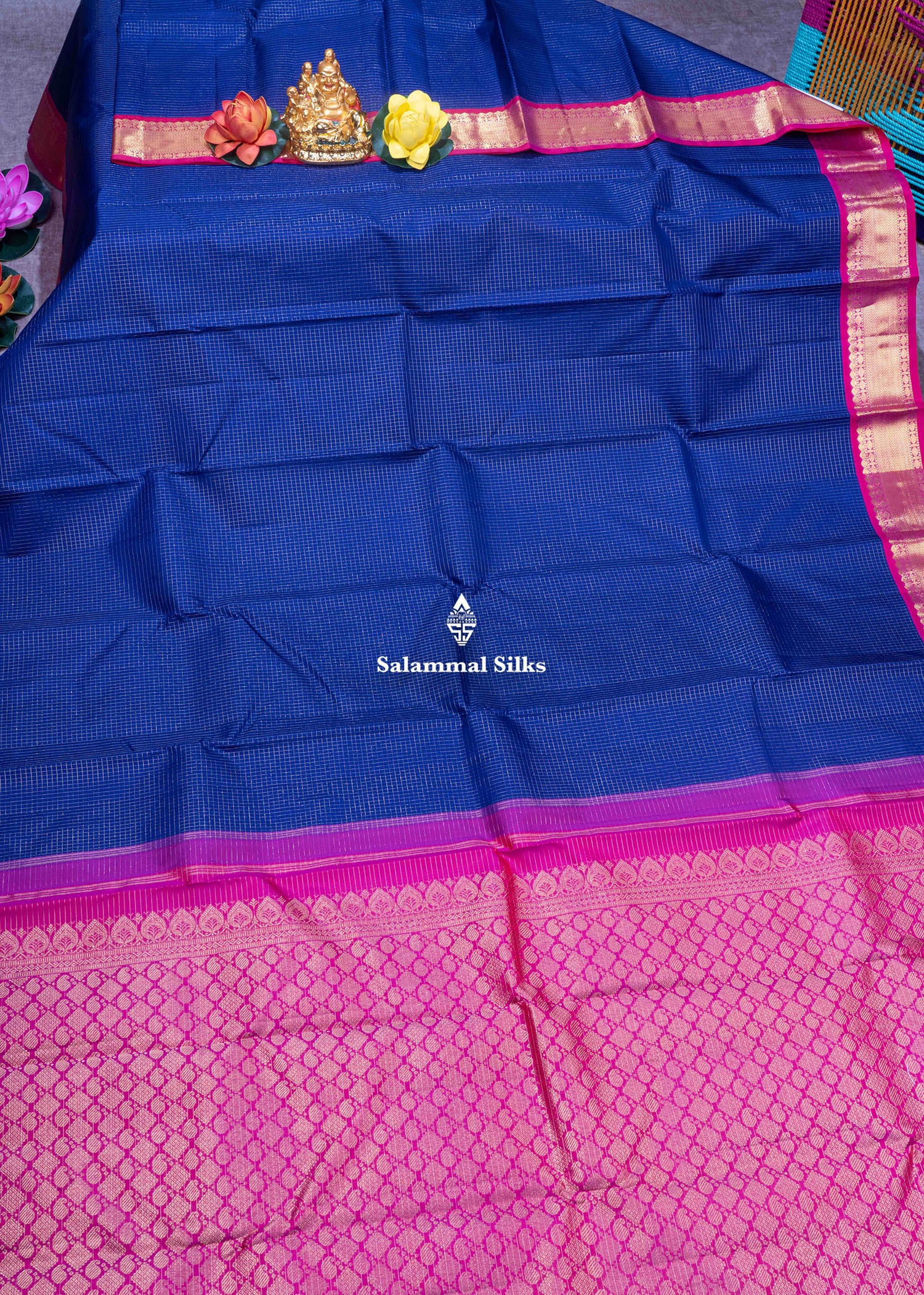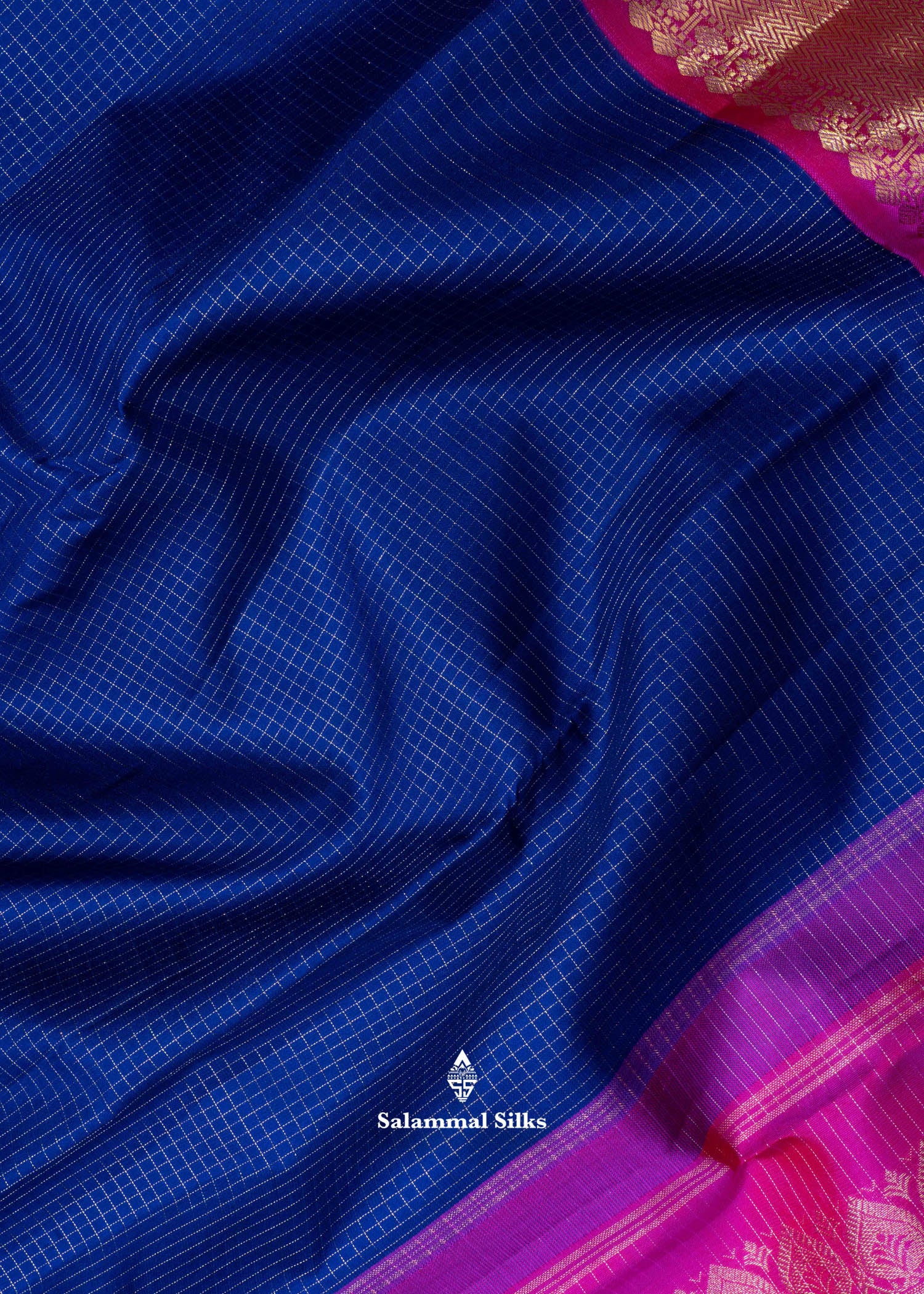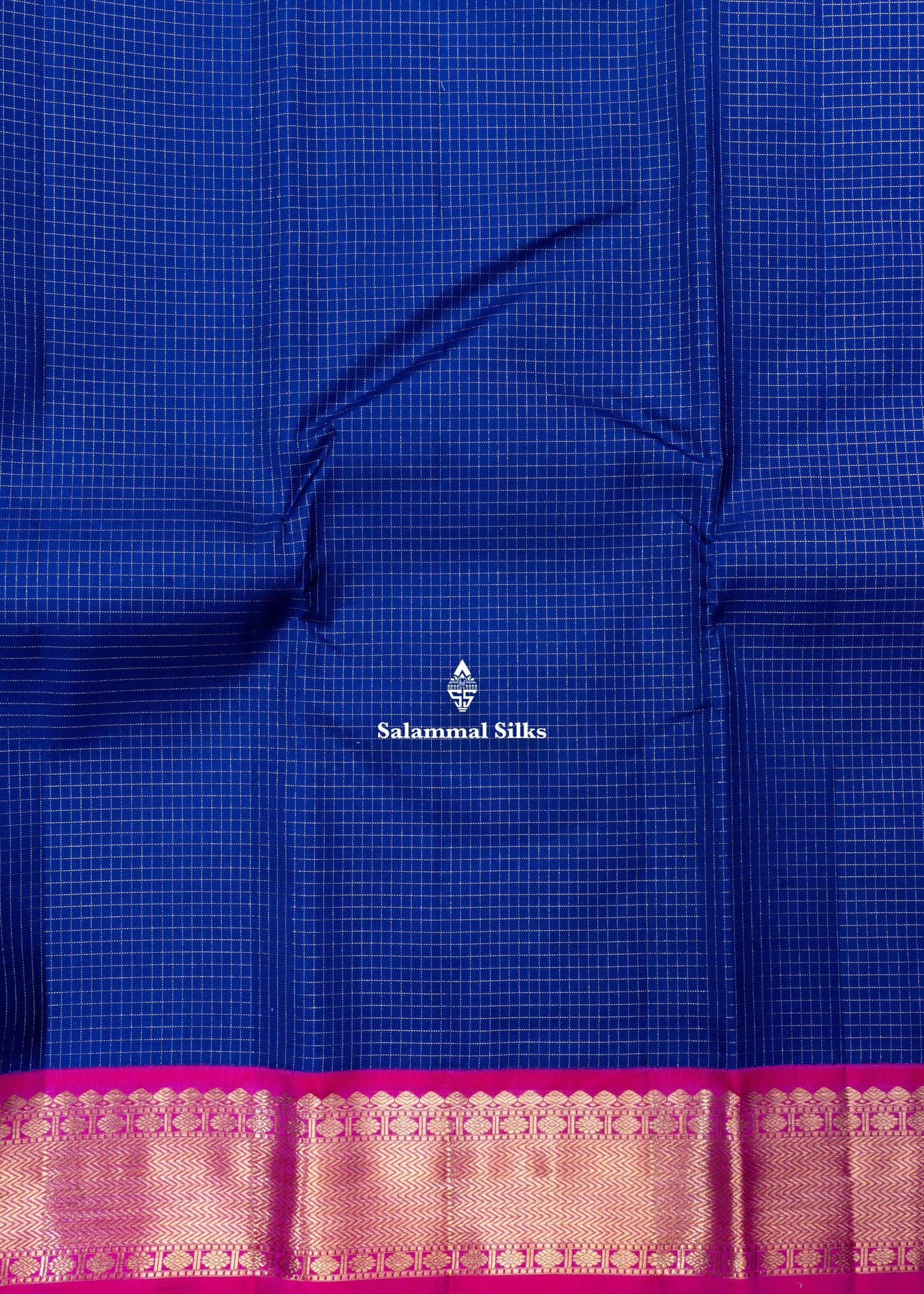 Kanjivaram Navy Blue Vaira Oosi Checks Pure Silk Saree With Pink Blouse