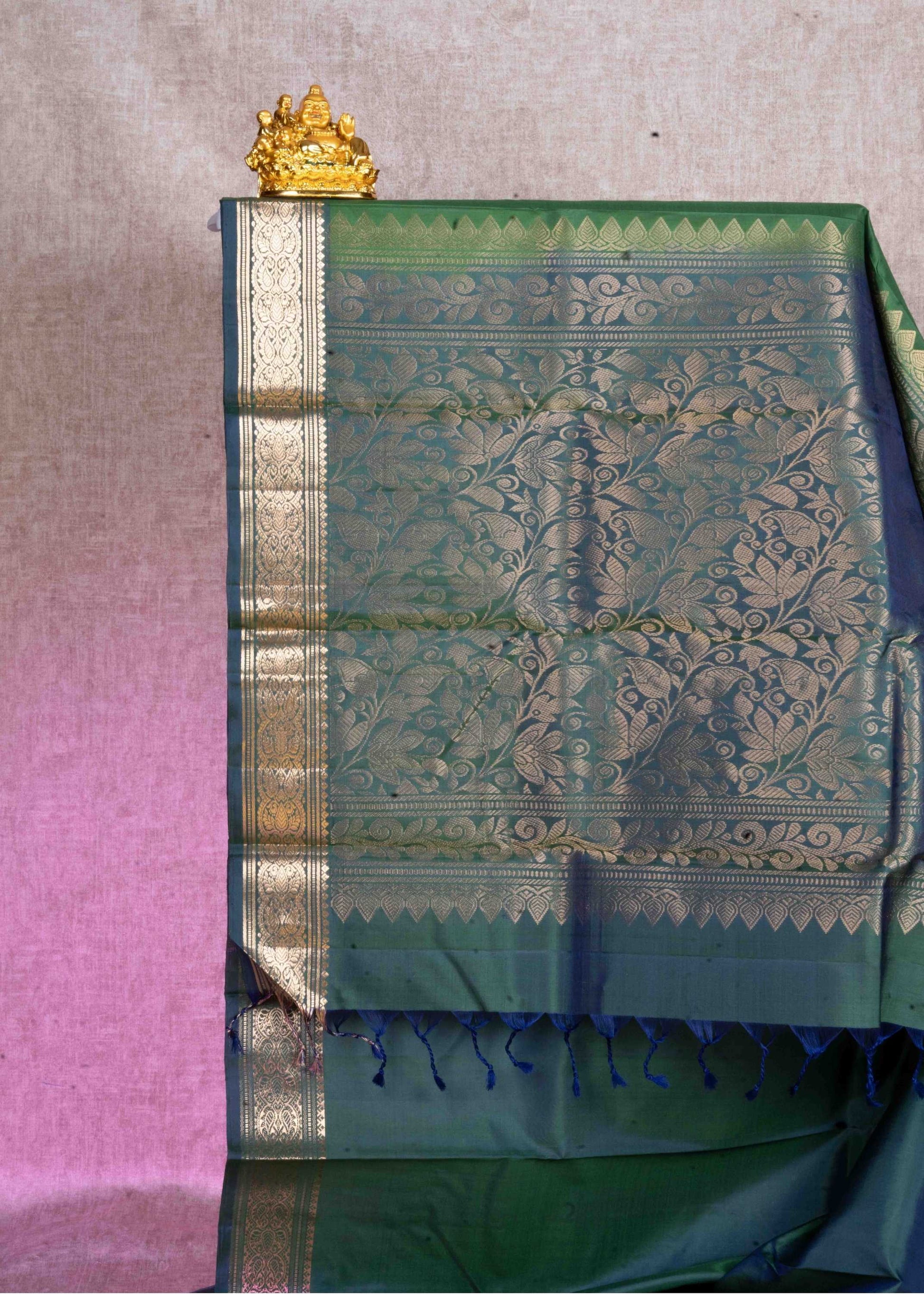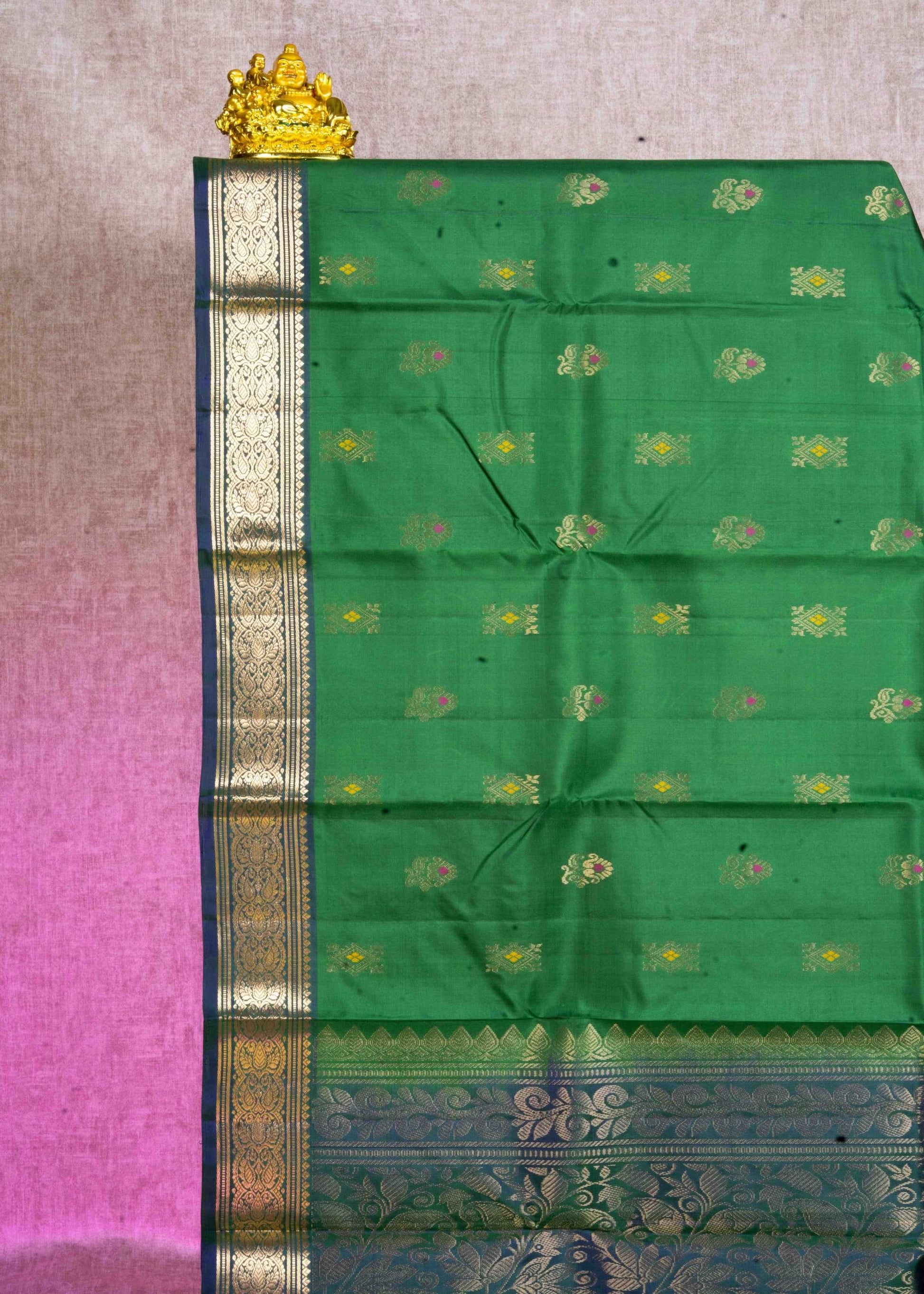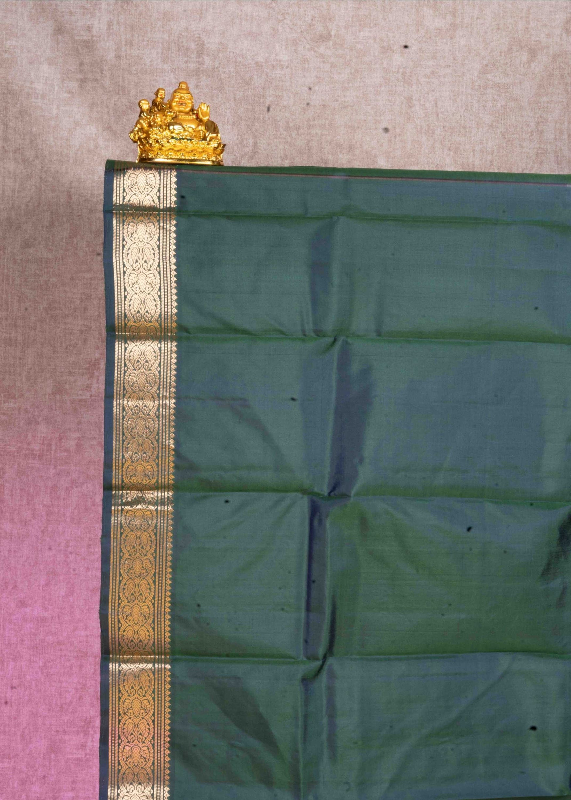 Kanjivaram Olive Green Pure Silk Saree With Green Blouse