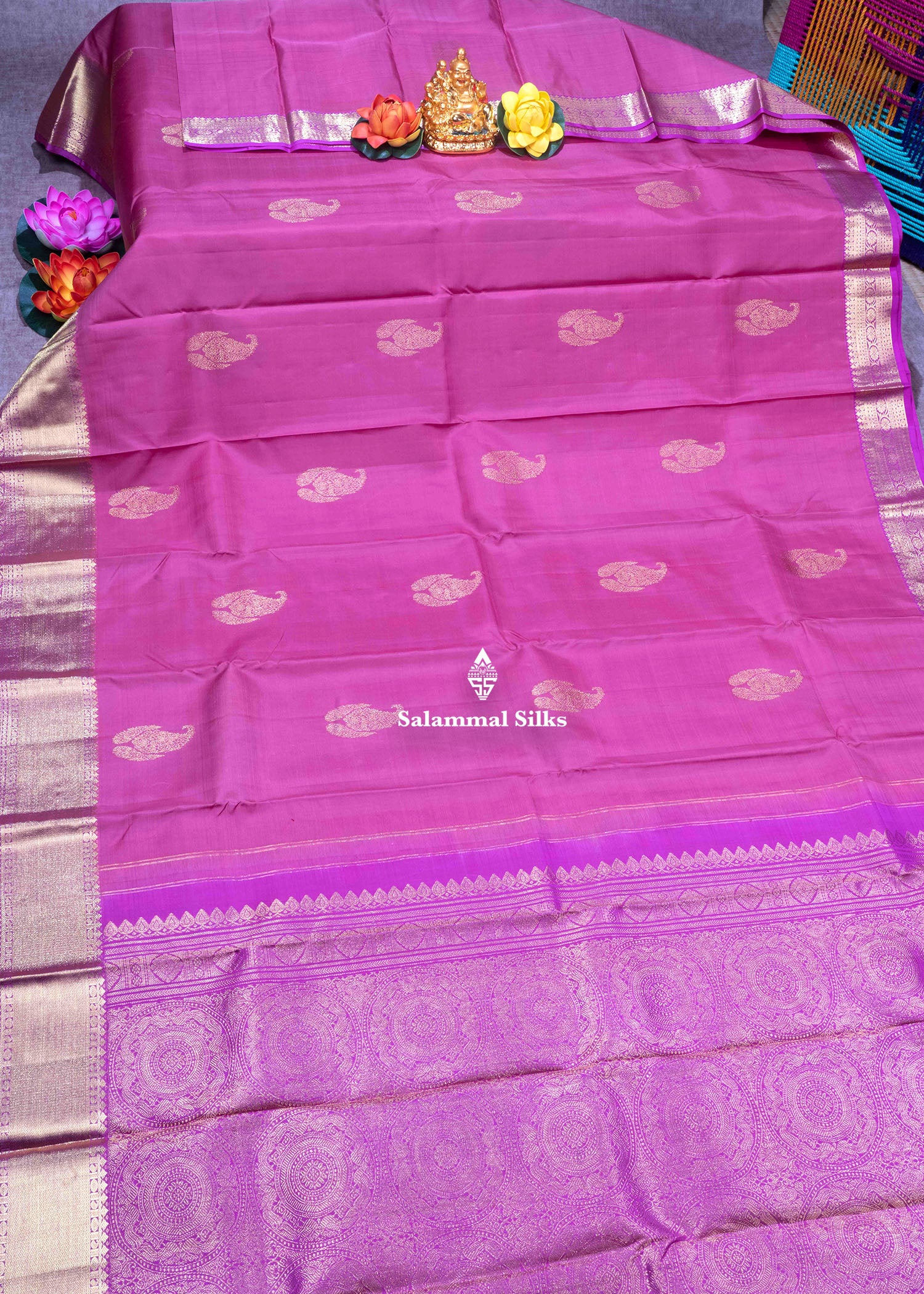 Kanjivaram Onion Pink Pure Silk Saree With Pink Blouse