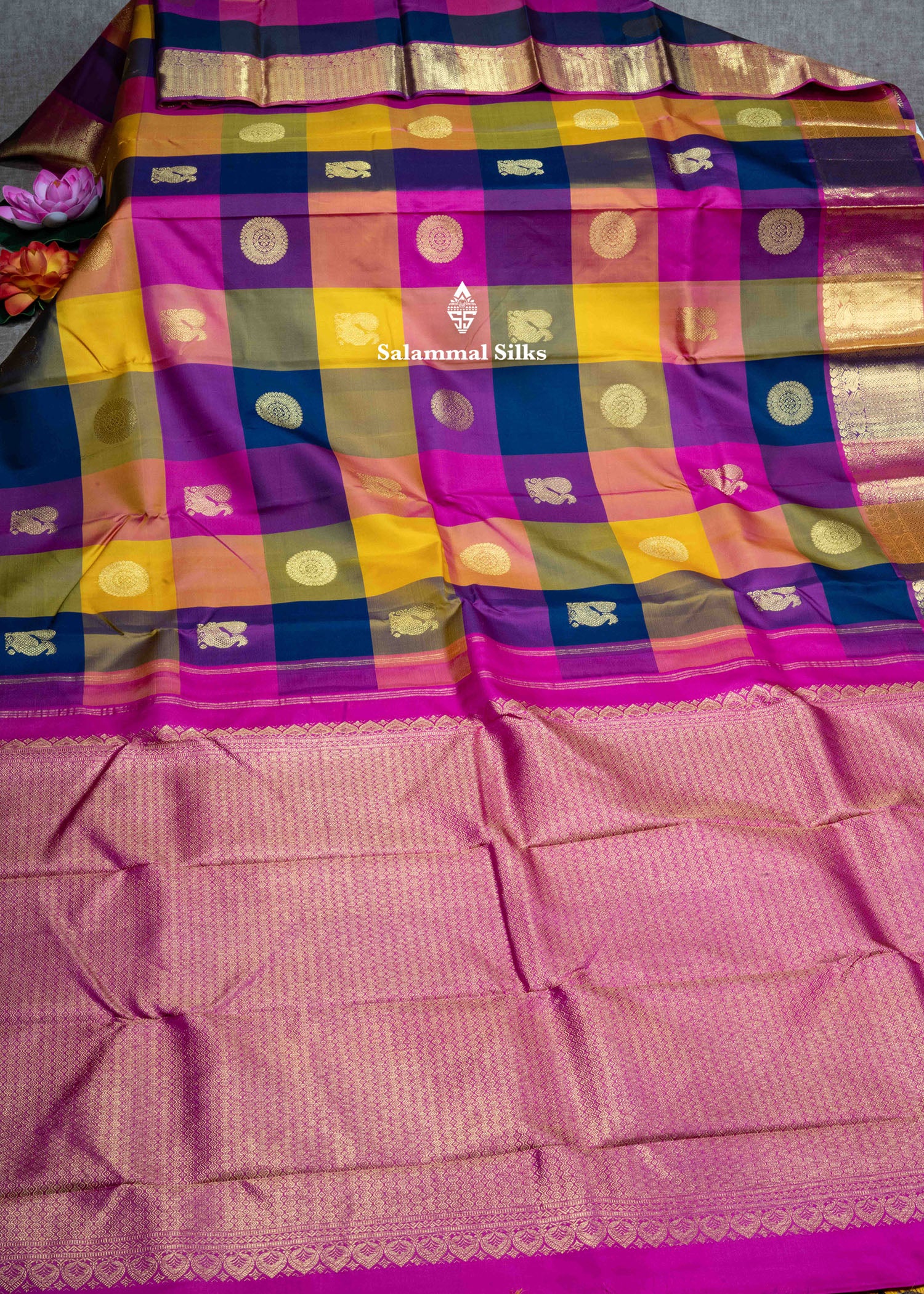 Kanjivaram Paalum Pazham Checks Pure Silk Saree With Gold Zari Border