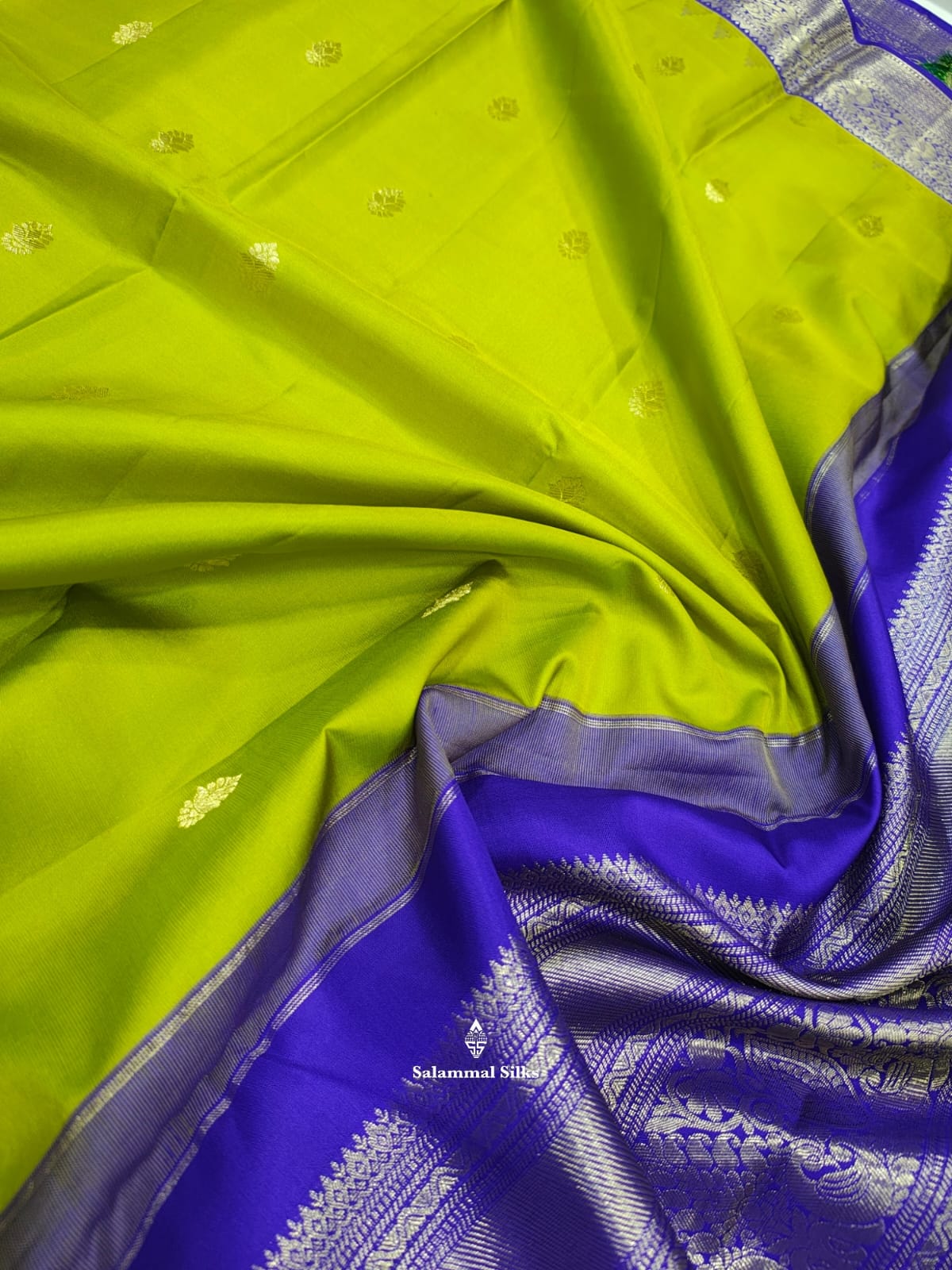 Kanjivaram Parrot Green Pure Silk Saree With Royal Blue Border
