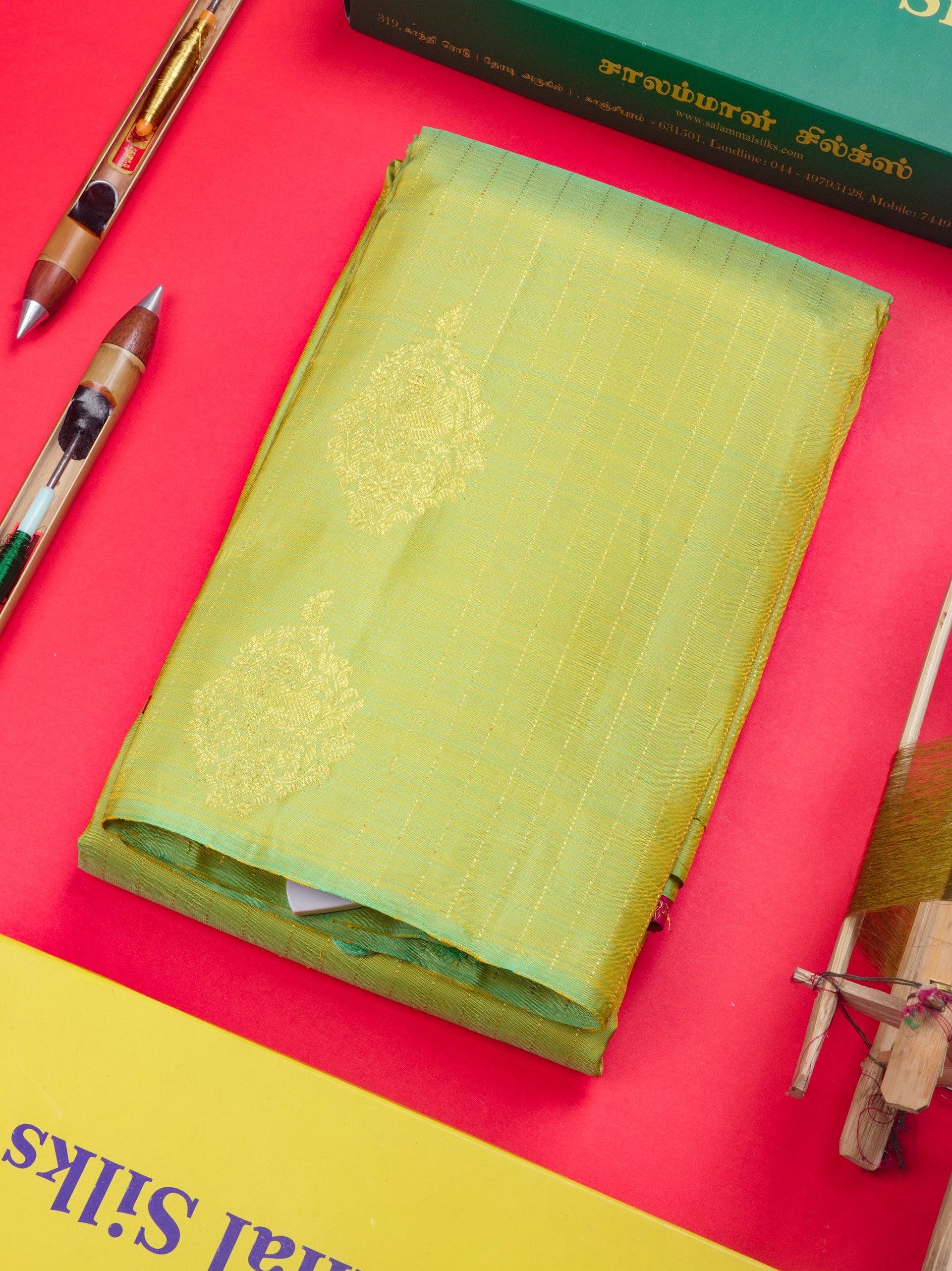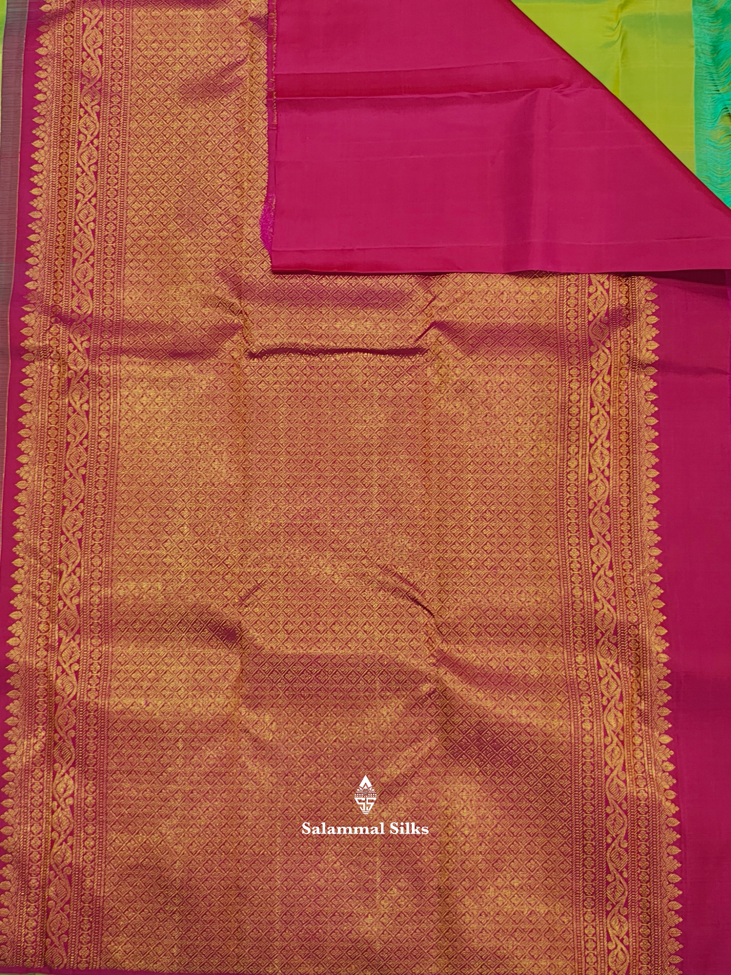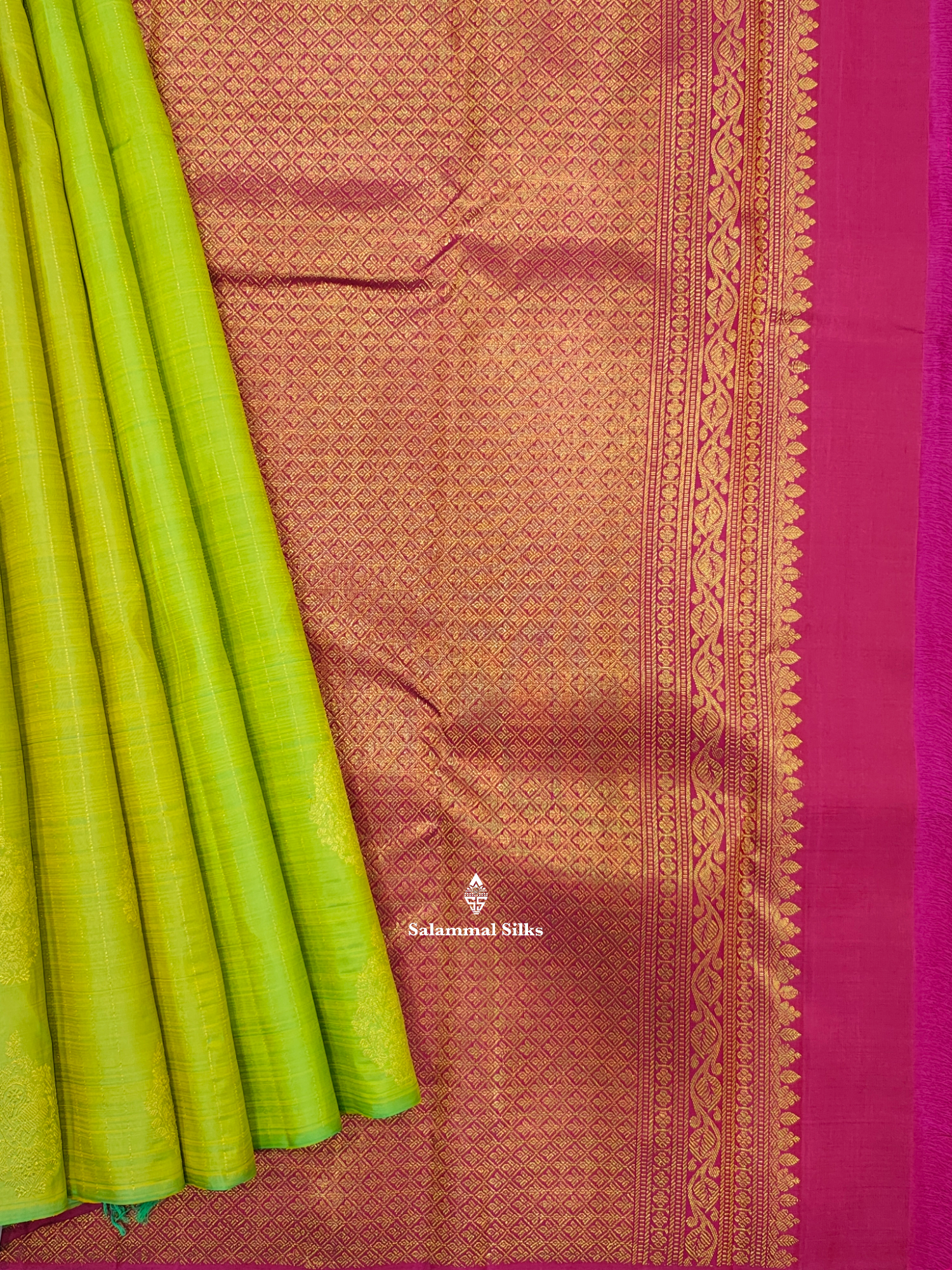 Kanjivaram Parrot Green Pure Silk Saree WithOut Border